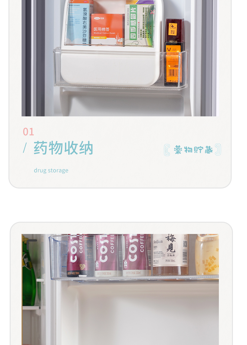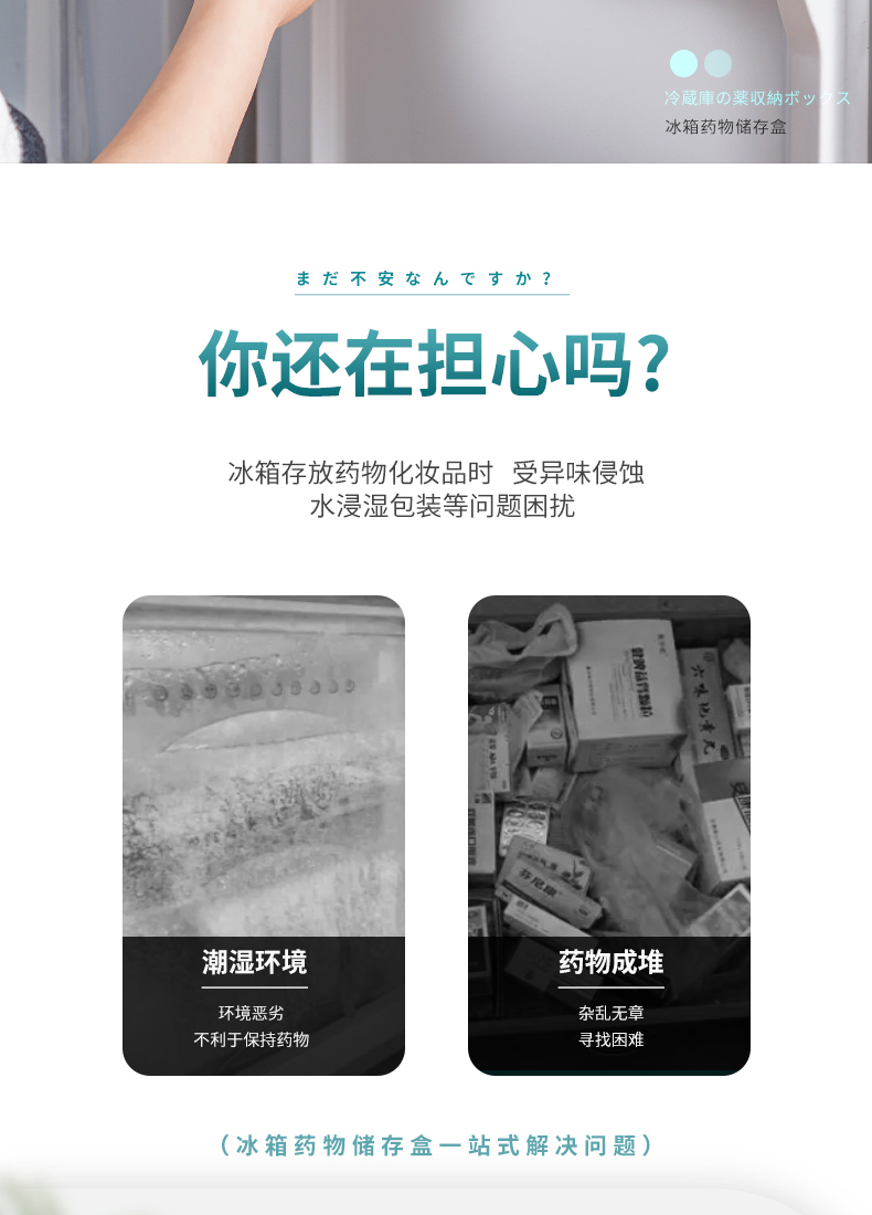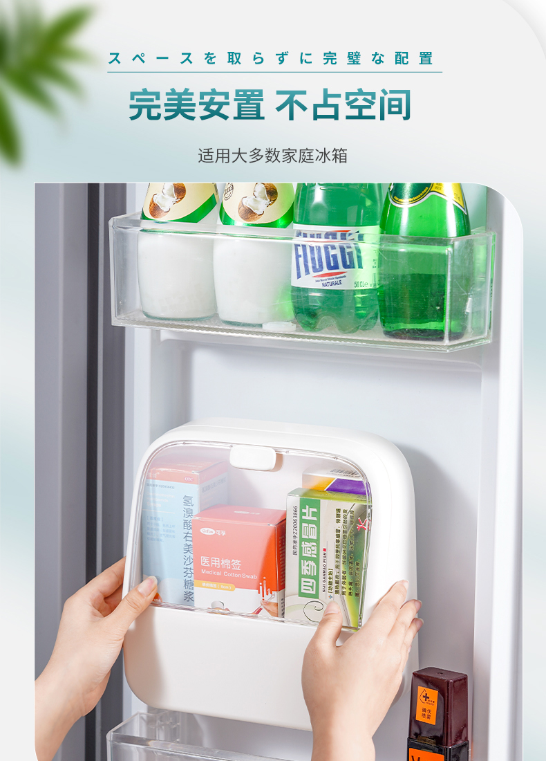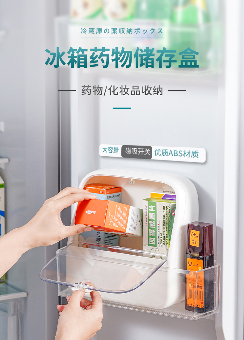 D 冰箱药物储存盒 冰箱侧门收纳盒塑料多功能化妆品药品冷藏保鲜盒桌面防水整理药盒