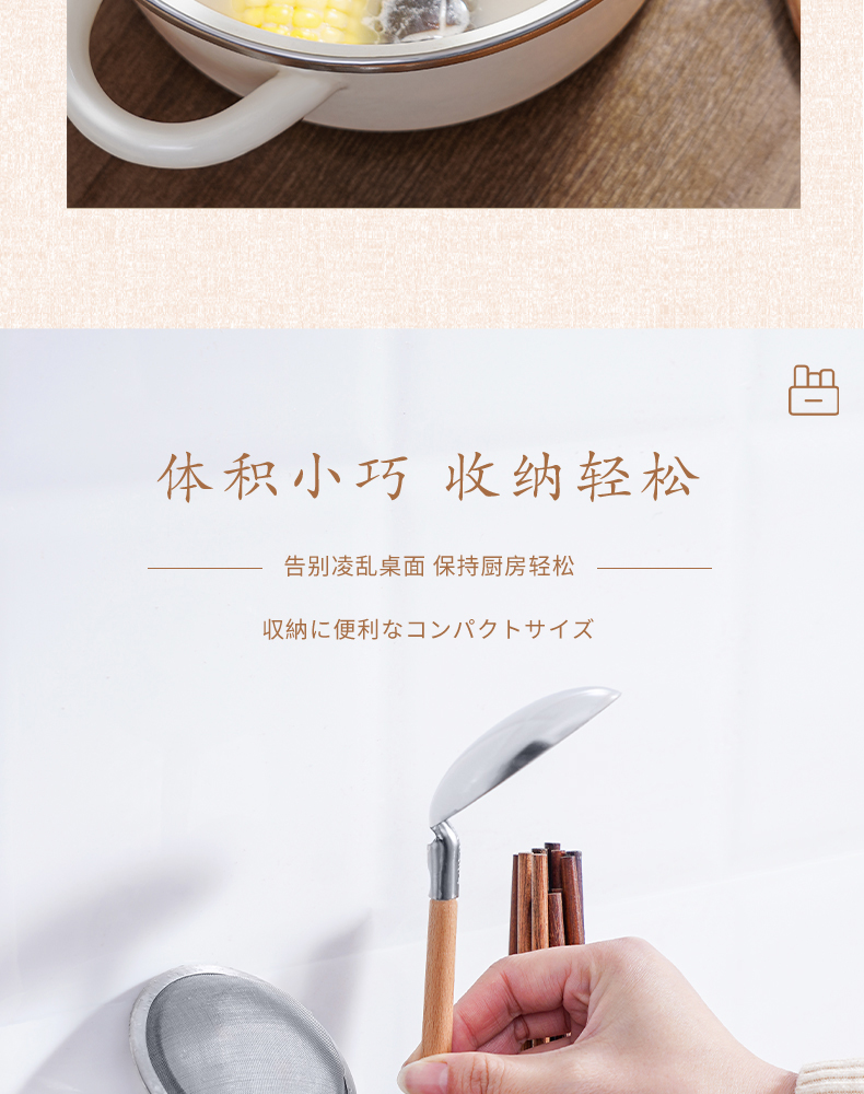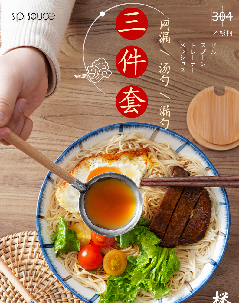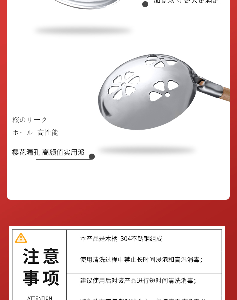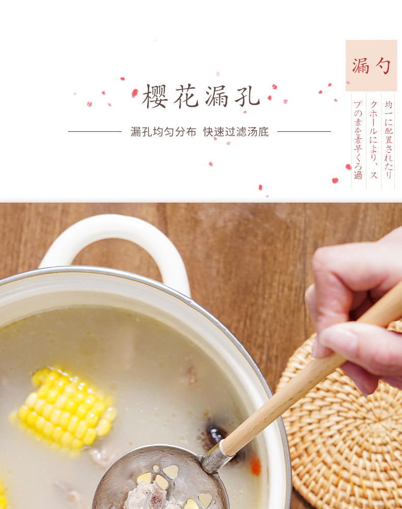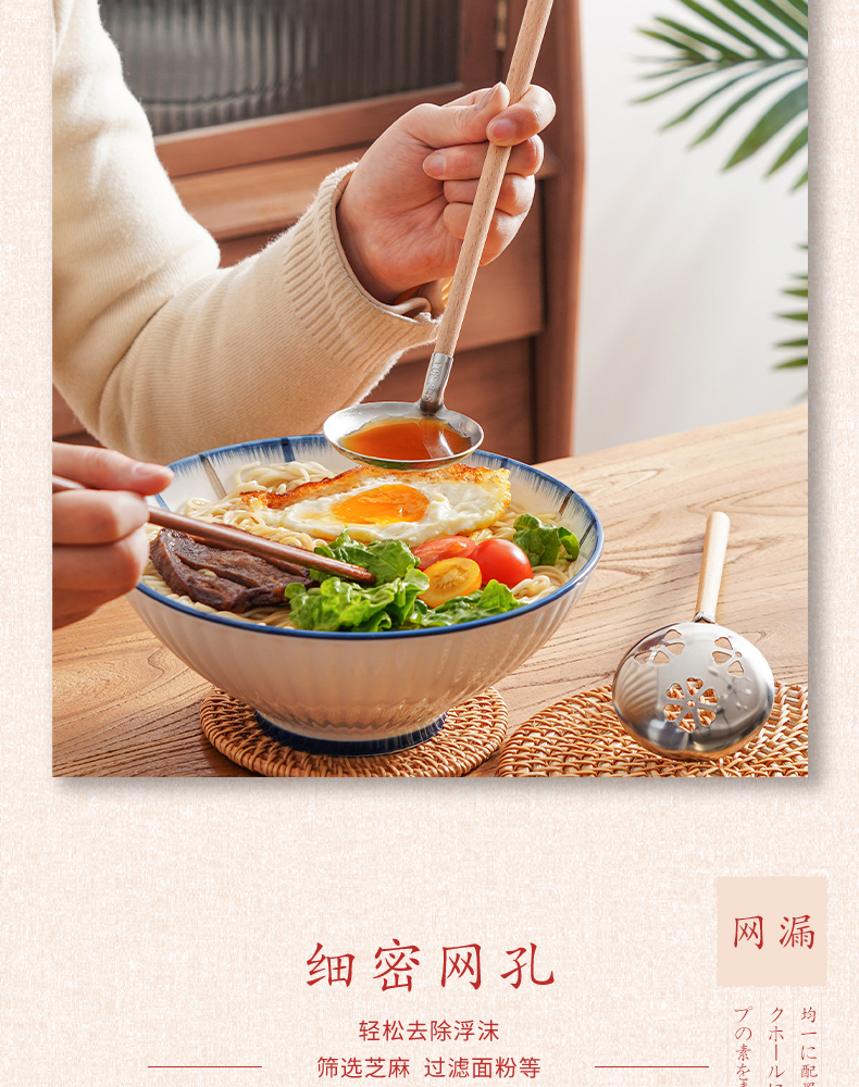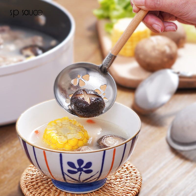 木柄漏勺/汤勺 汤勺漏勺304不锈钢火锅勺捞勺汤漏木柄防烫盛汤加长柄家用厨具
