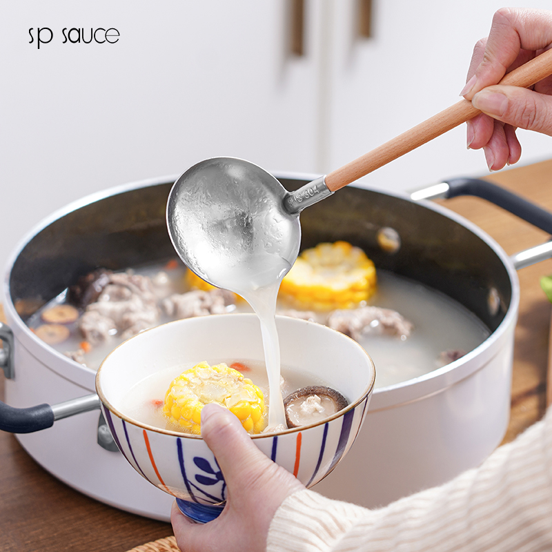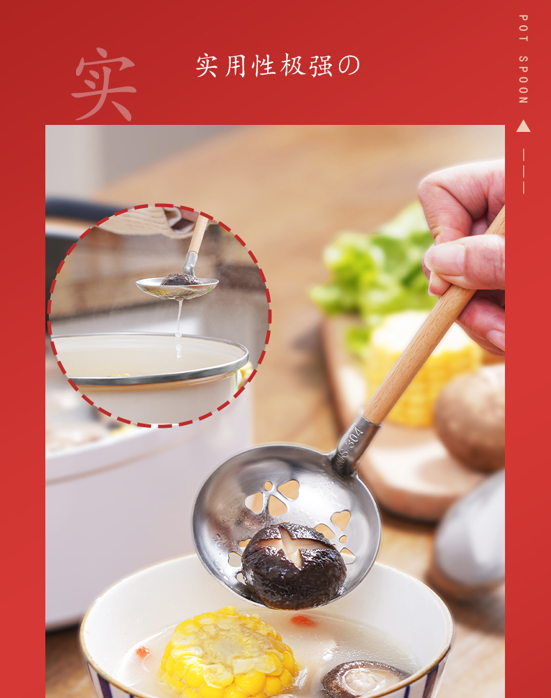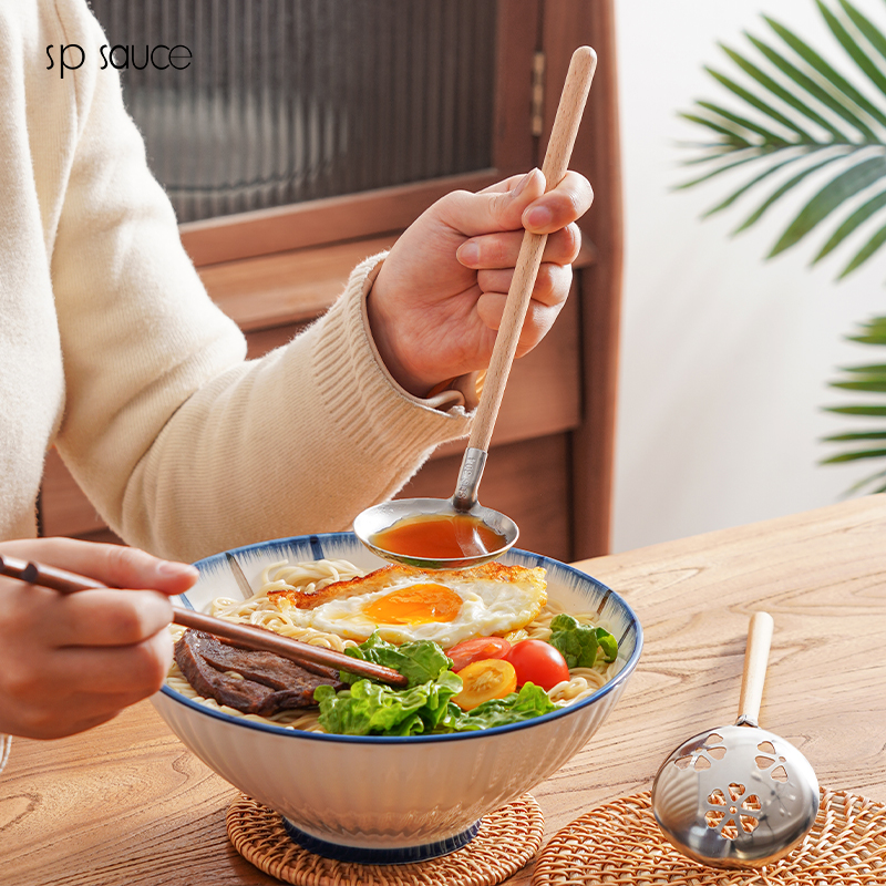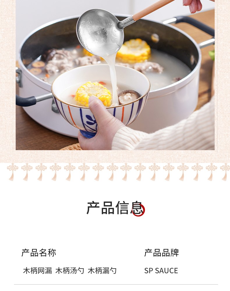 木柄网漏 不锈钢漏勺过滤撇油网勺滤油细网勺过滤网筛打沫勺撇油神器