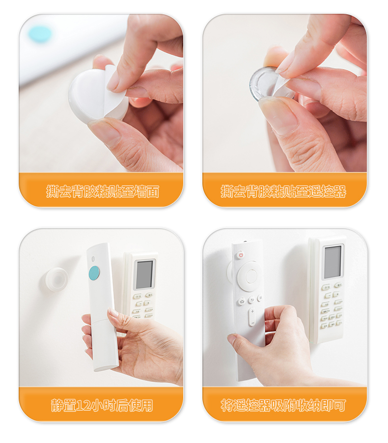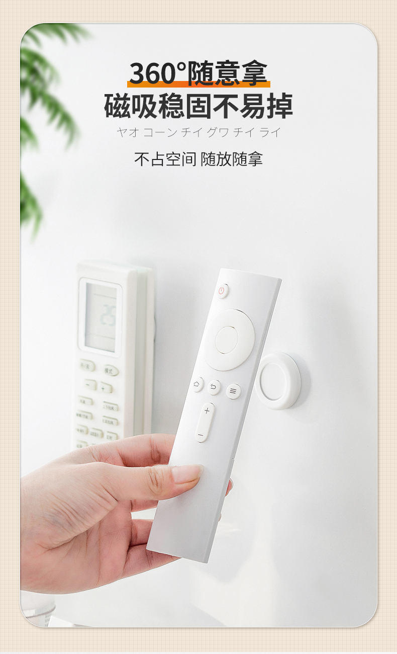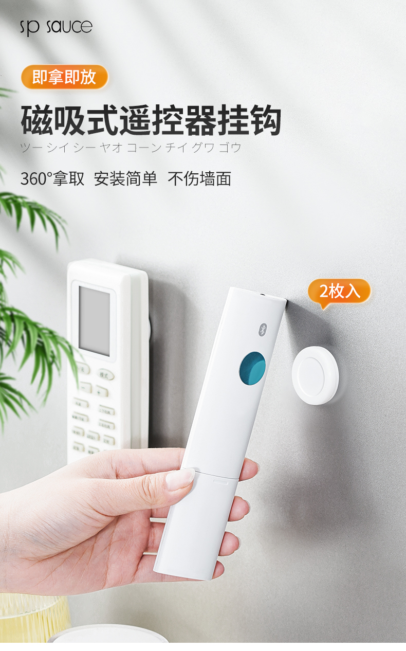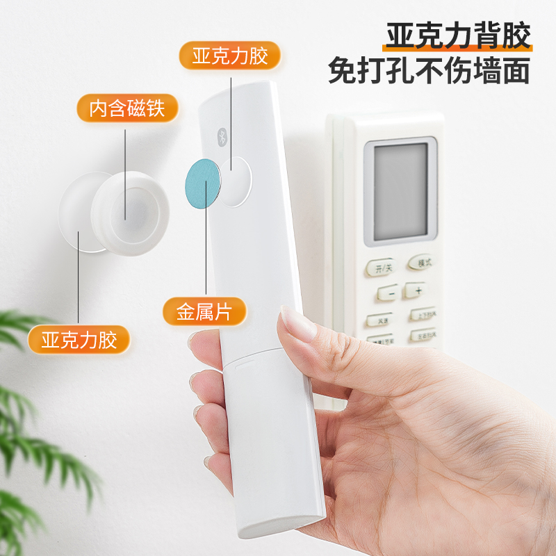 D磁吸遥控器挂钩(2枚入) 遥控器磁吸挂钩强力粘贴无痕挂钩电视空调遥控器插排收纳免打孔壁挂架