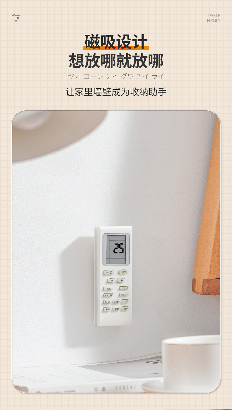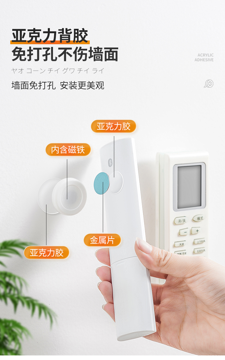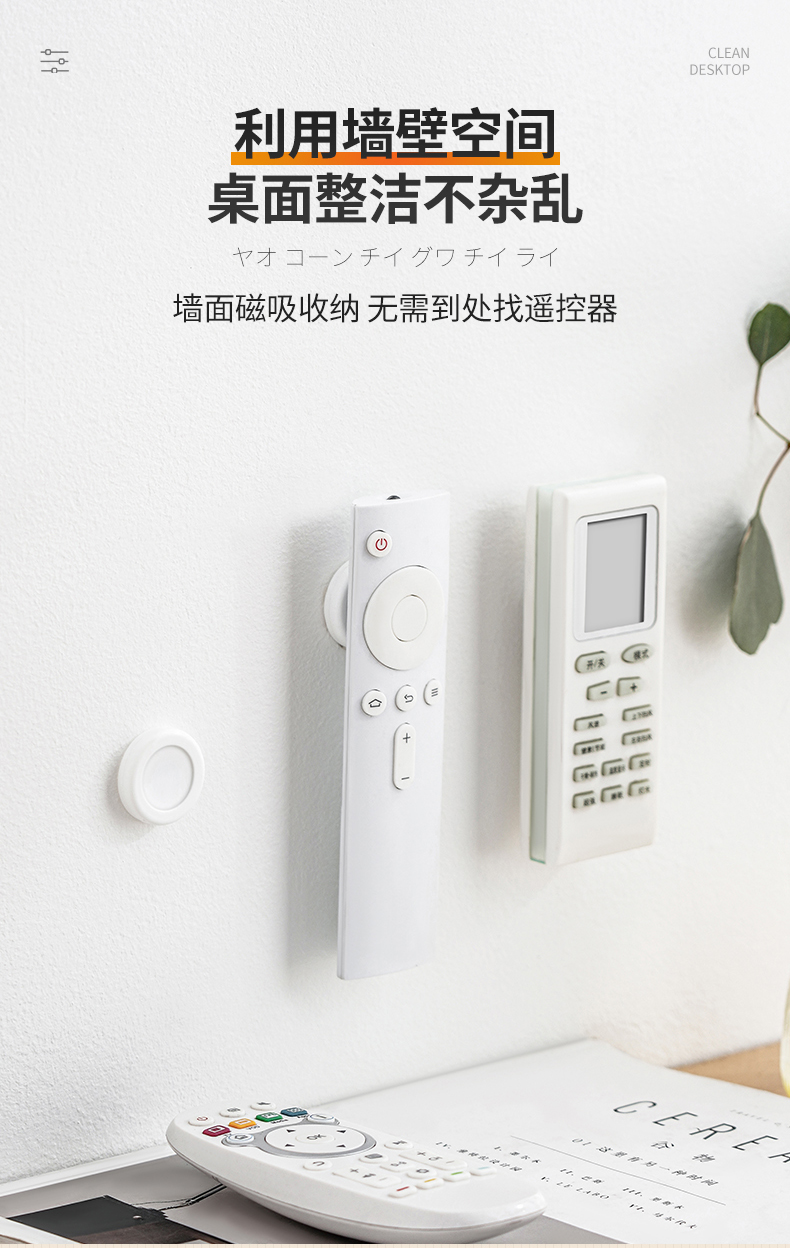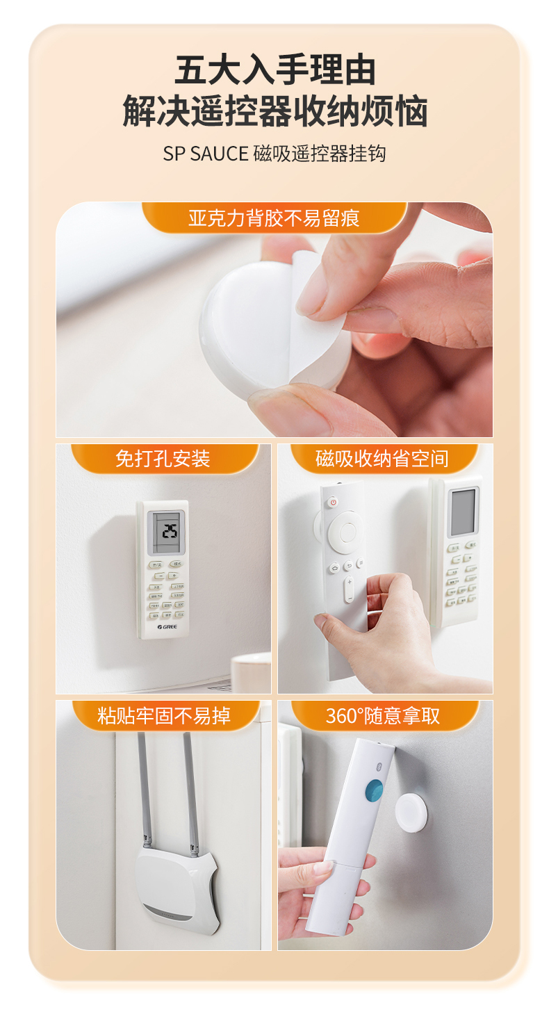 D磁吸遥控器挂钩(2枚入) 遥控器磁吸挂钩强力粘贴无痕挂钩电视空调遥控器插排收纳免打孔壁挂架