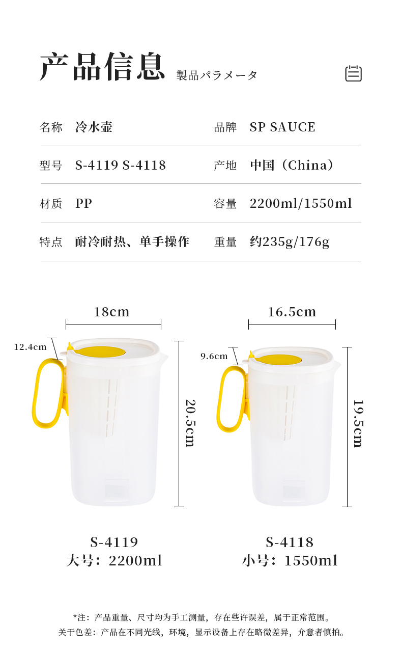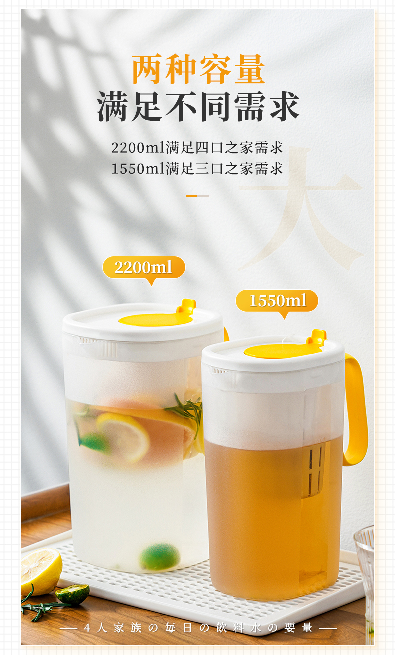 冷水壶 小号 冰箱凉水壶冷水壶家用耐热塑料泡茶壶凉白开柠檬水果汁杯扎壶冰水壶