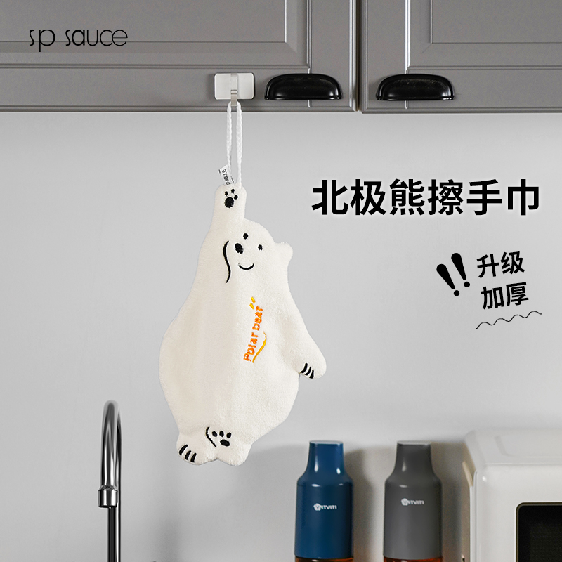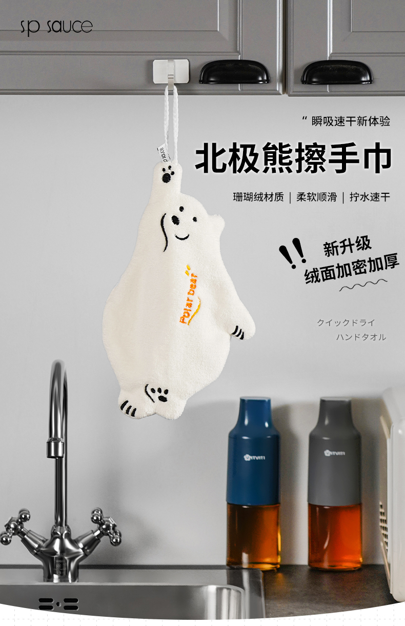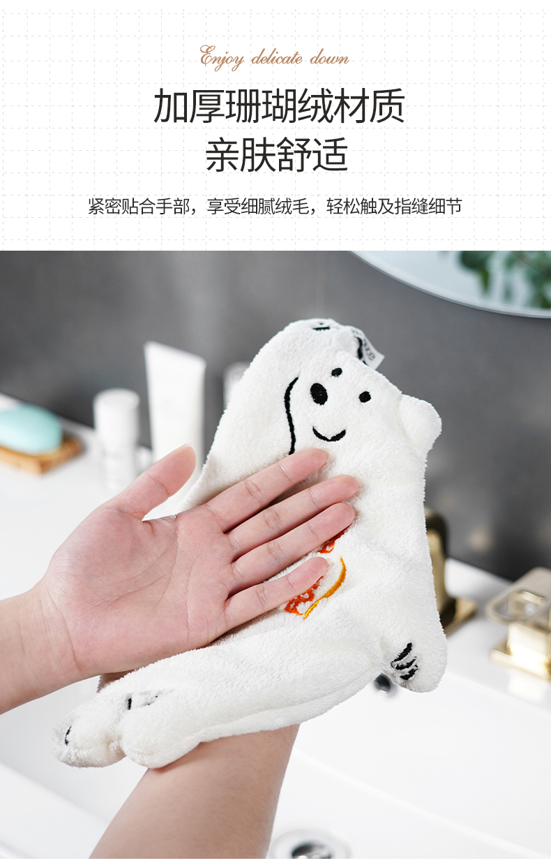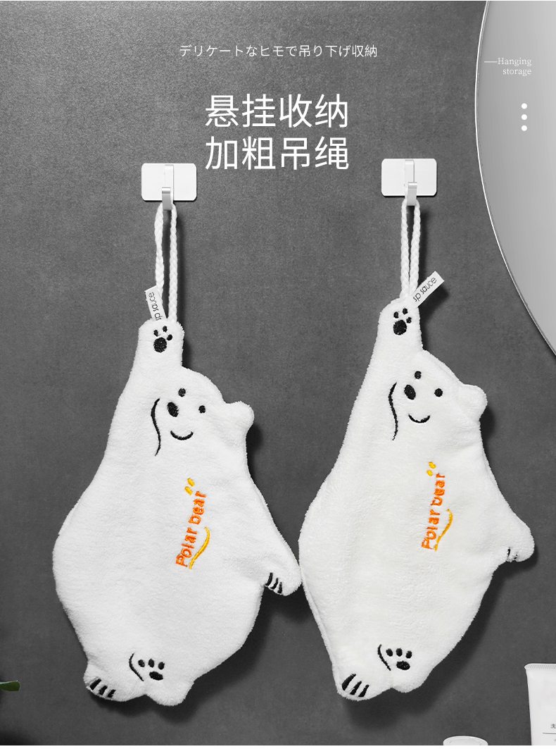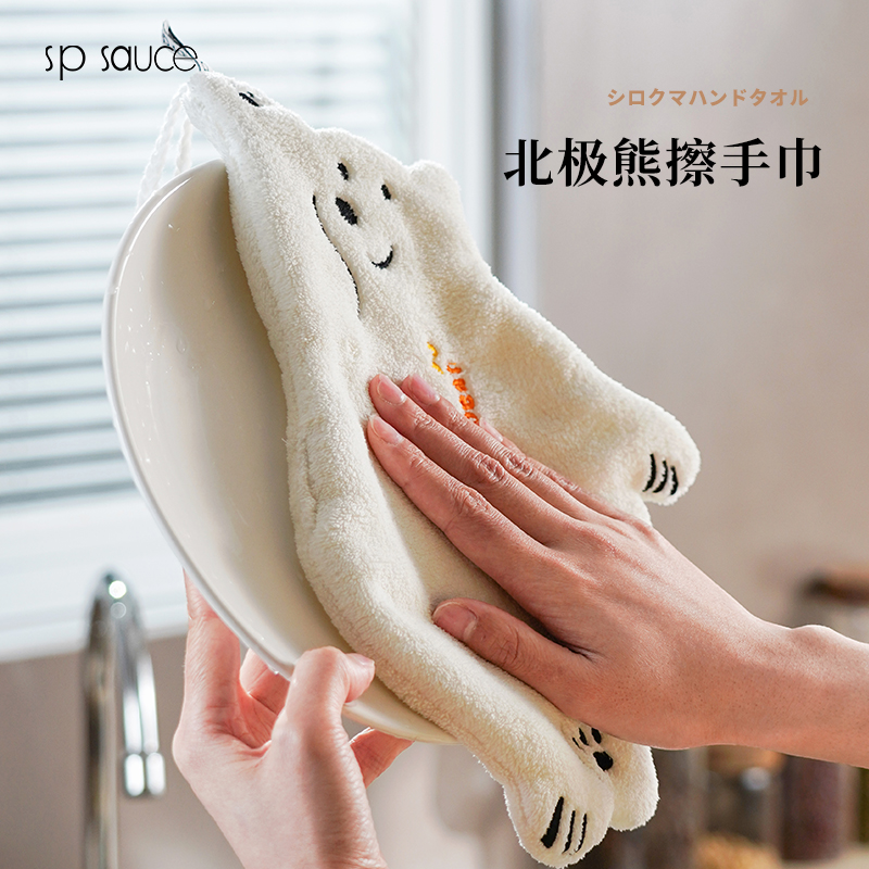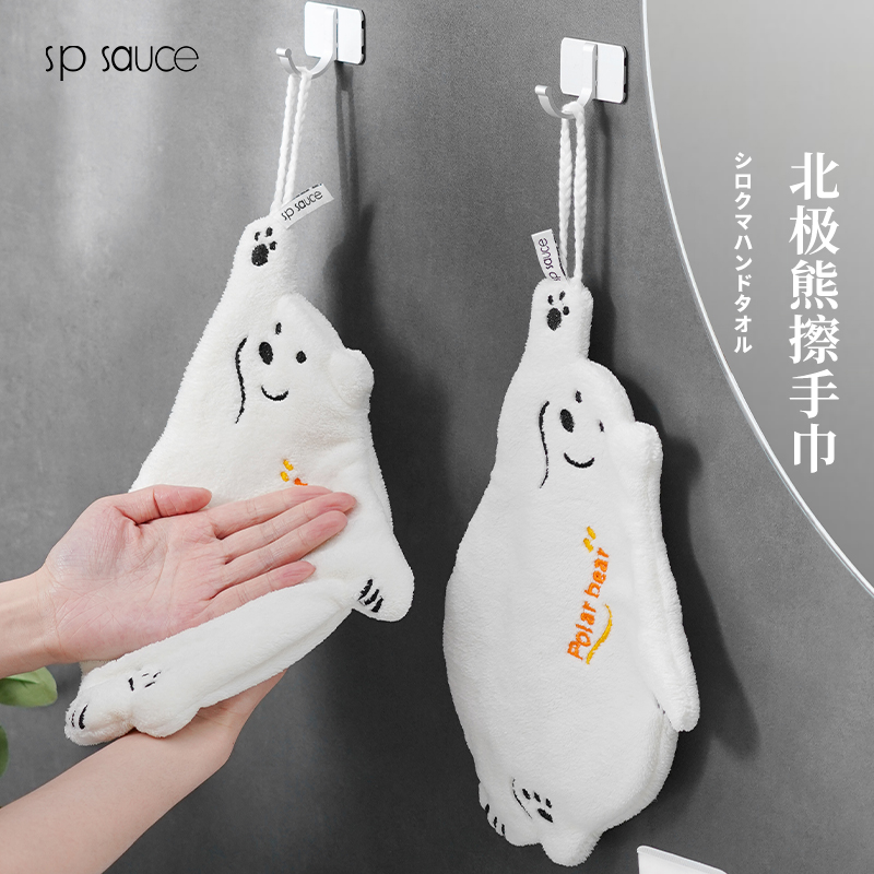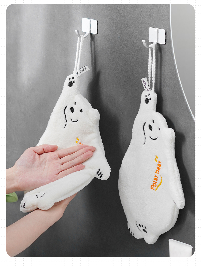 北极熊擦手巾(有版权) 擦手巾挂式厨房卫生间加厚擦手小毛巾珊瑚绒吸水速干