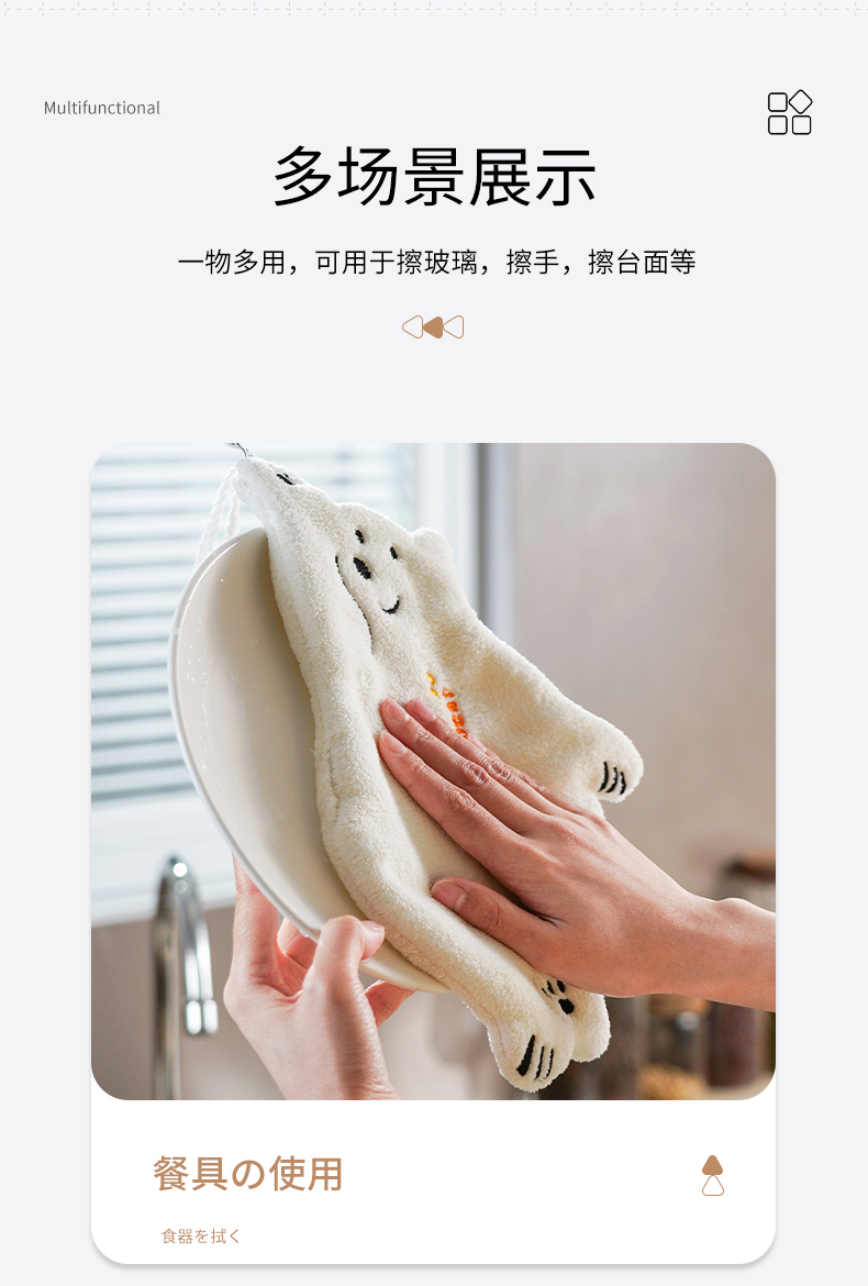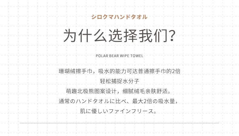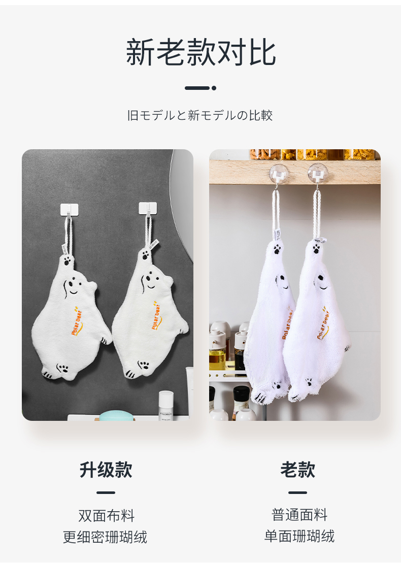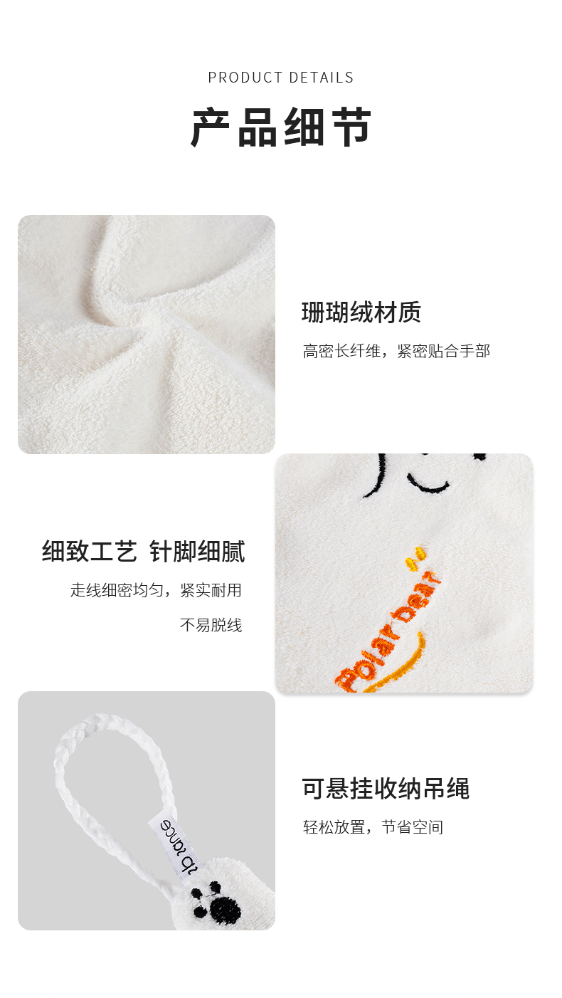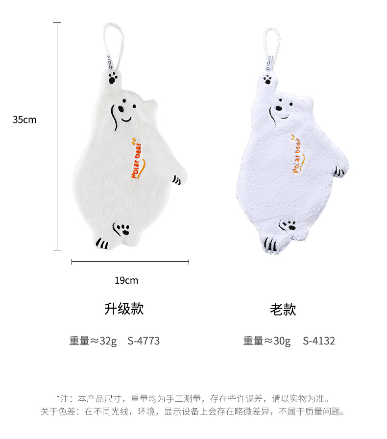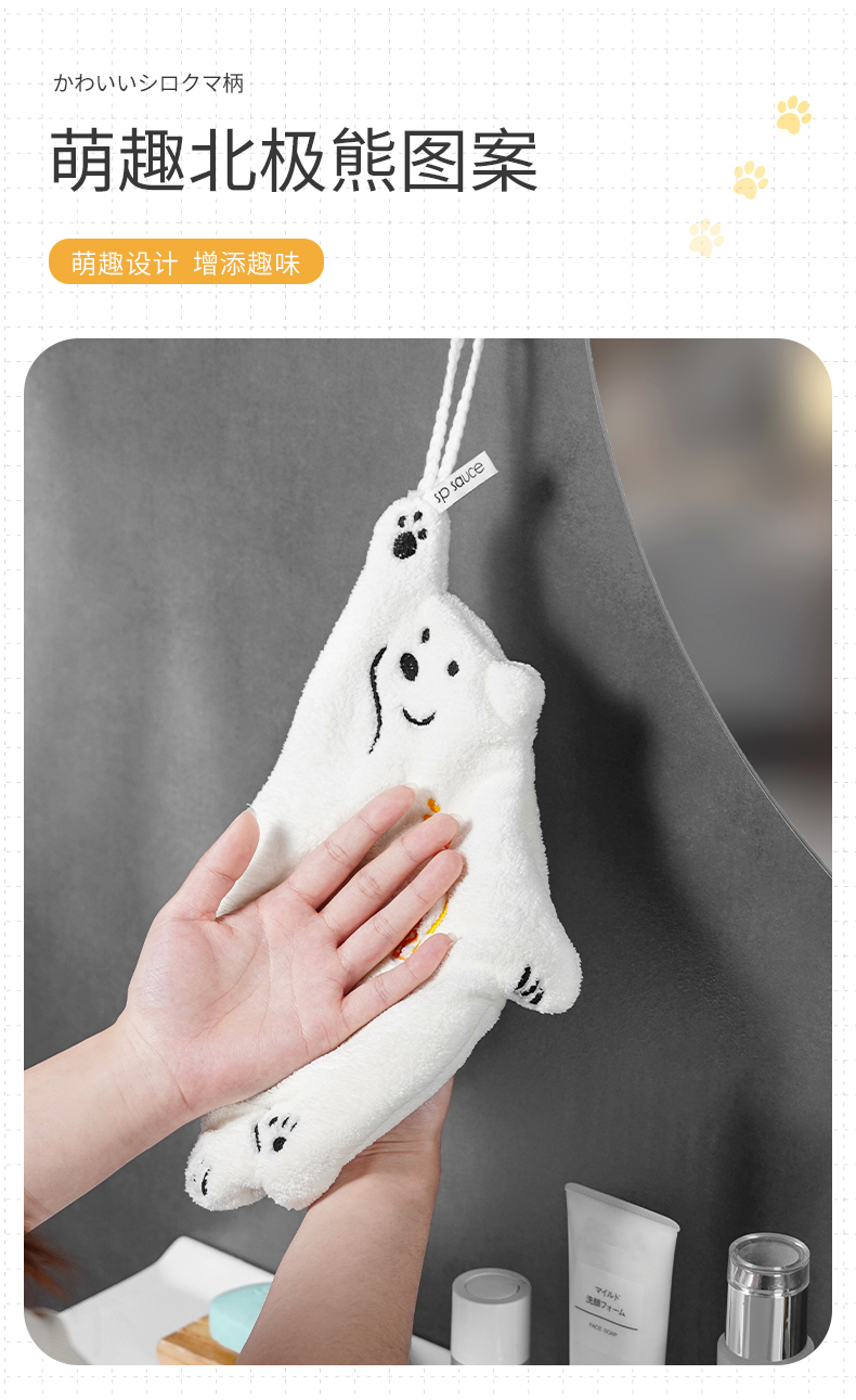 北极熊擦手巾(有版权) 擦手巾挂式厨房卫生间加厚擦手小毛巾珊瑚绒吸水速干