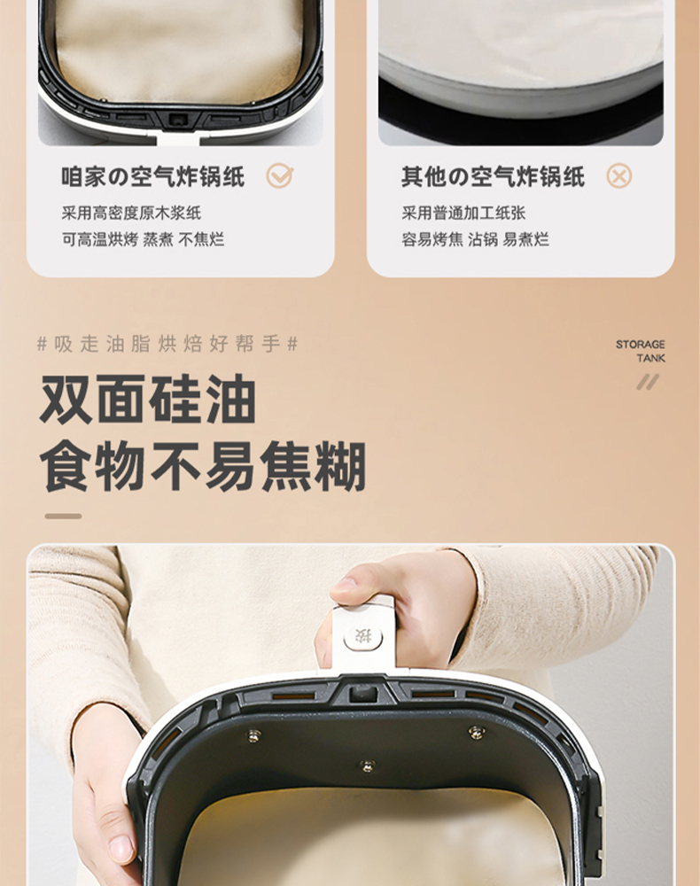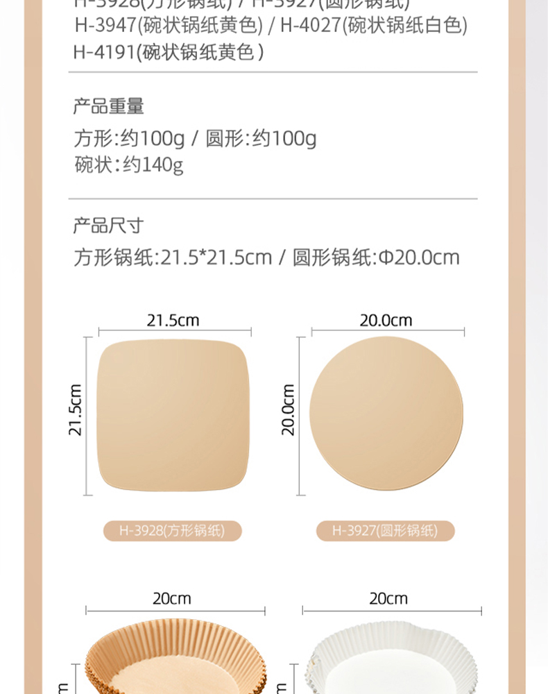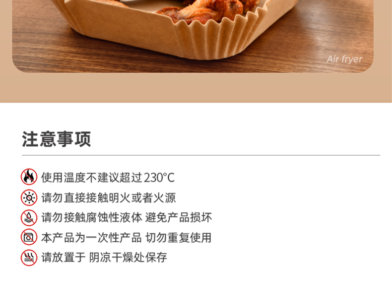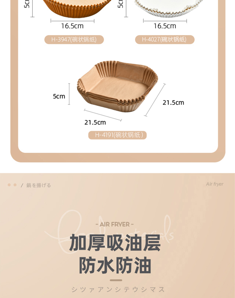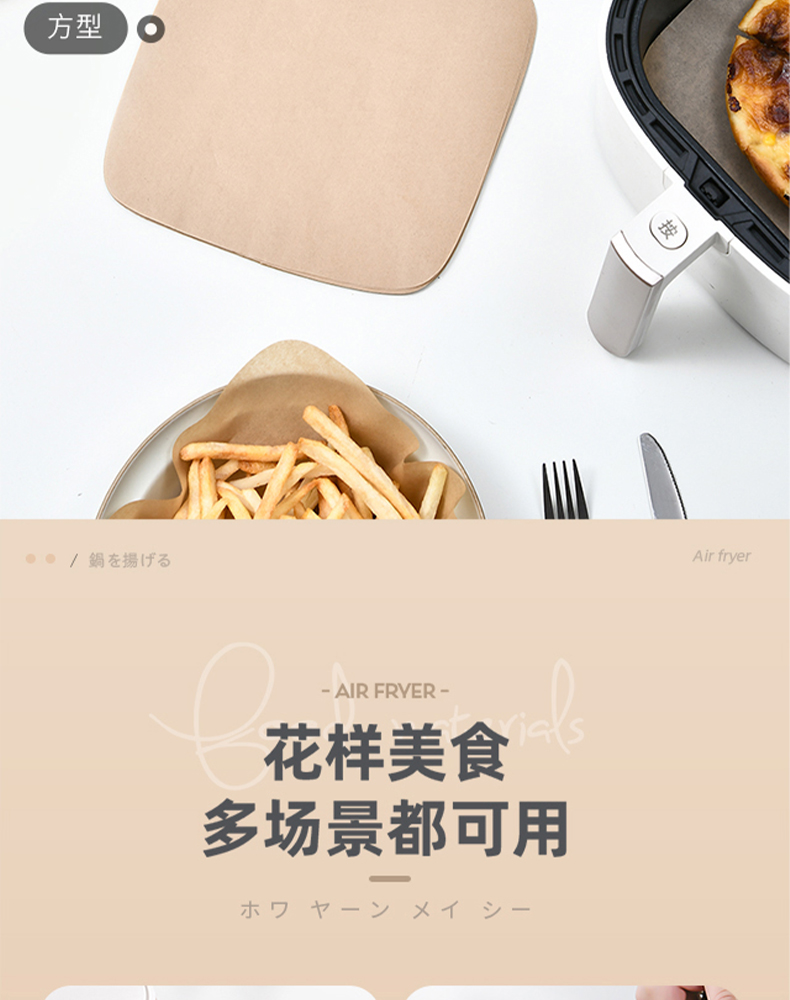 空气炸锅纸(50枚)碗状方形 烧烤烤肉纸烤盘吸油纸家用烘焙硅油纸空气炸锅纸垫