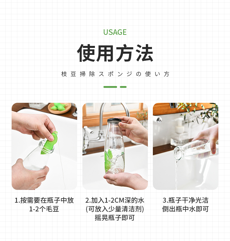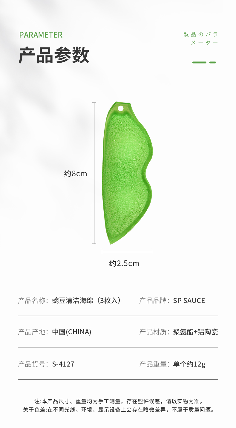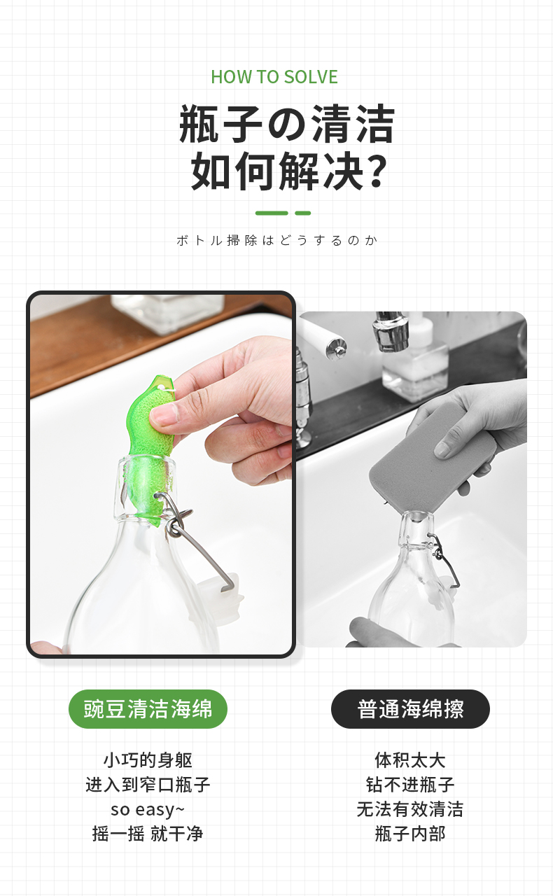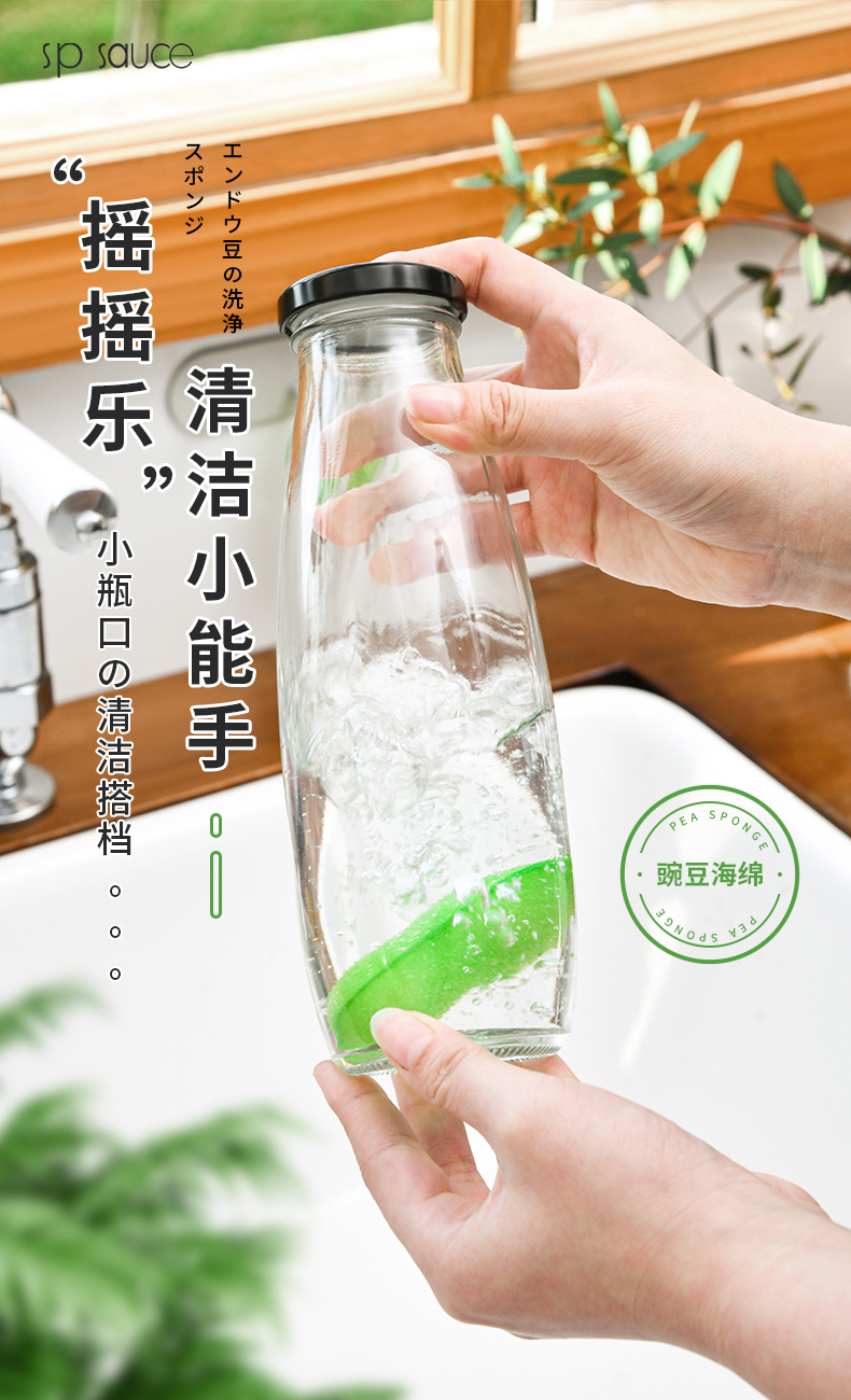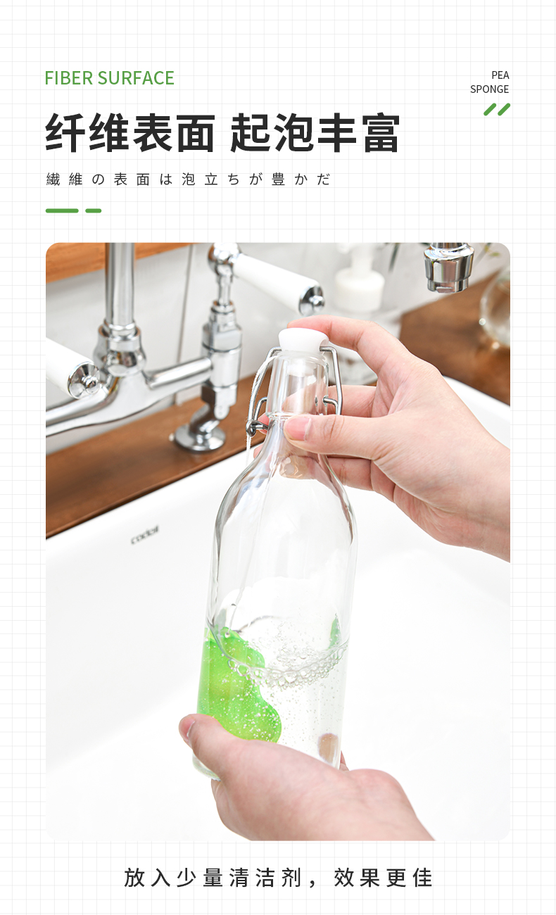 D豌豆清洁擦(3枚入) 豌豆清洁擦玻璃瓶奶瓶魔力海绵擦豌豆刷毛豆清洗海绵