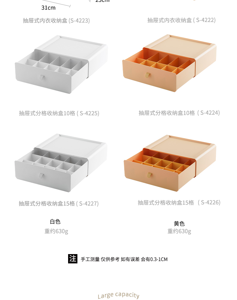 抽屉式分格收纳盒15格 内衣收纳盒内裤袜子分格抽屉式塑料格子多功能文胸整理箱