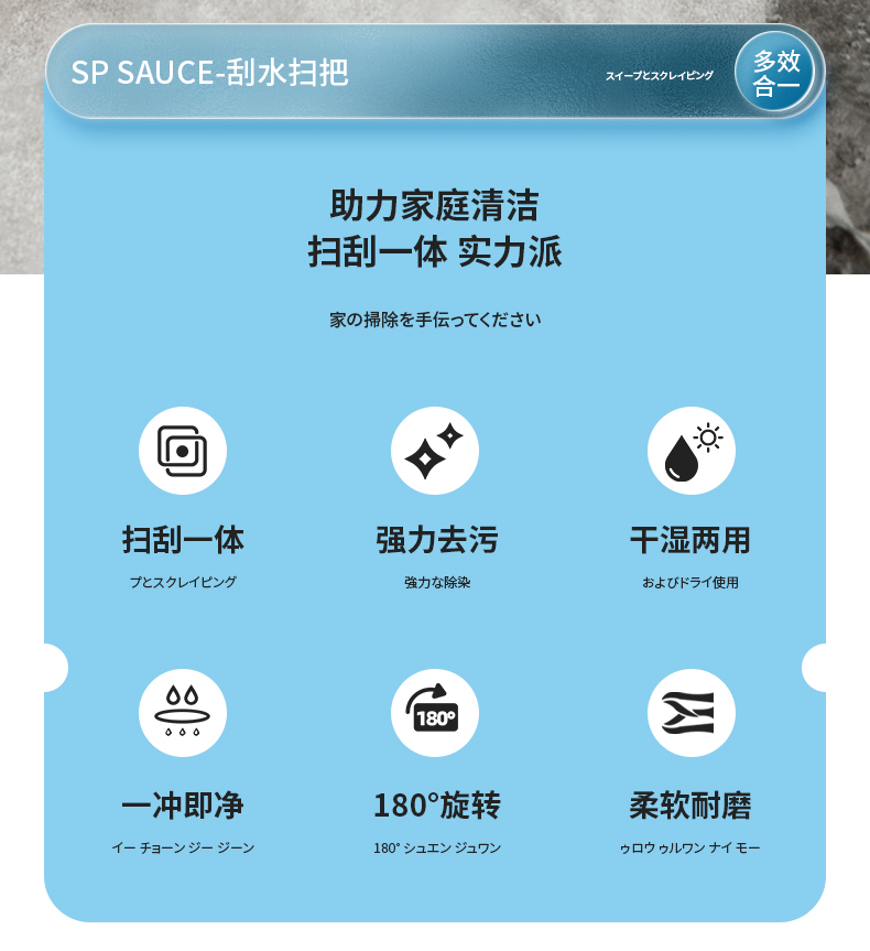 D 刮水扫把 家用多功能扫把地板玻璃刮水扫地两用除尘扫头发魔术扫把