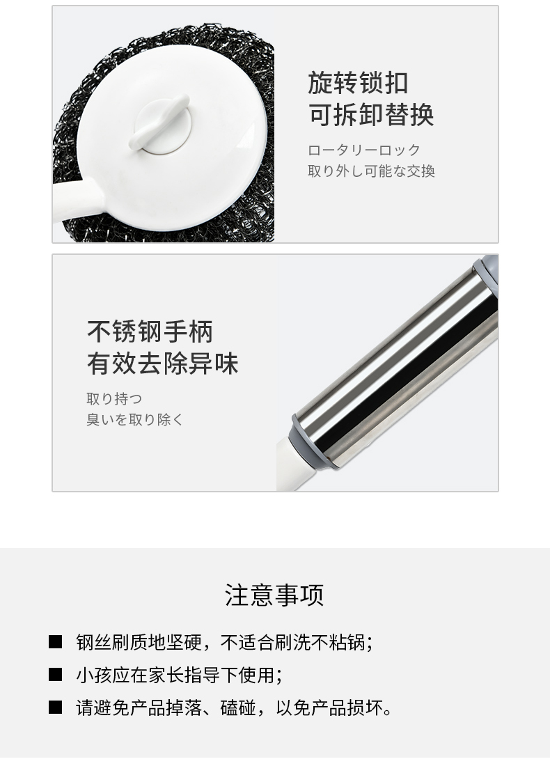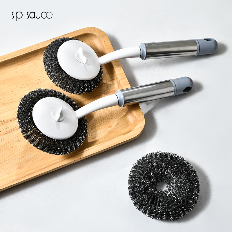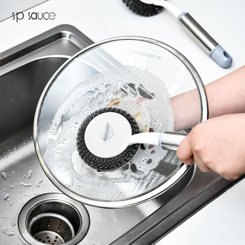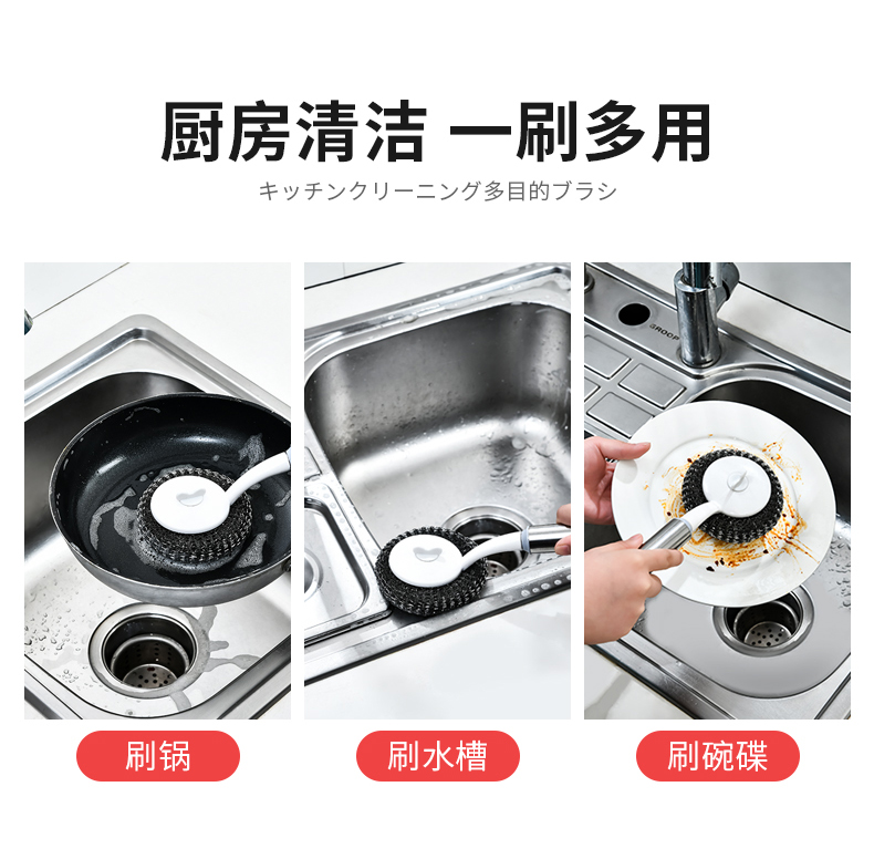 D 不锈钢锅刷 钢丝球刷洗碗刷锅刷带手柄刷锅球厨房不锈钢家用清洁球洗锅刷