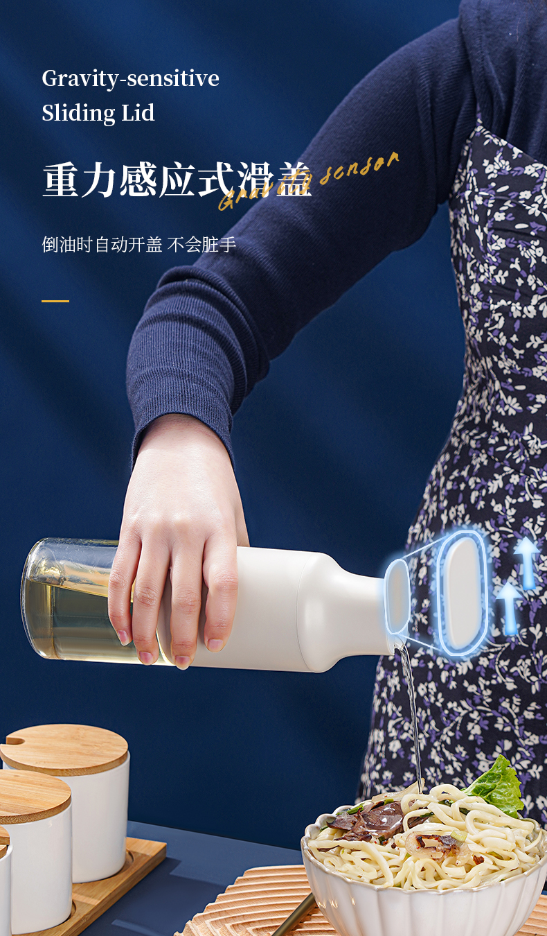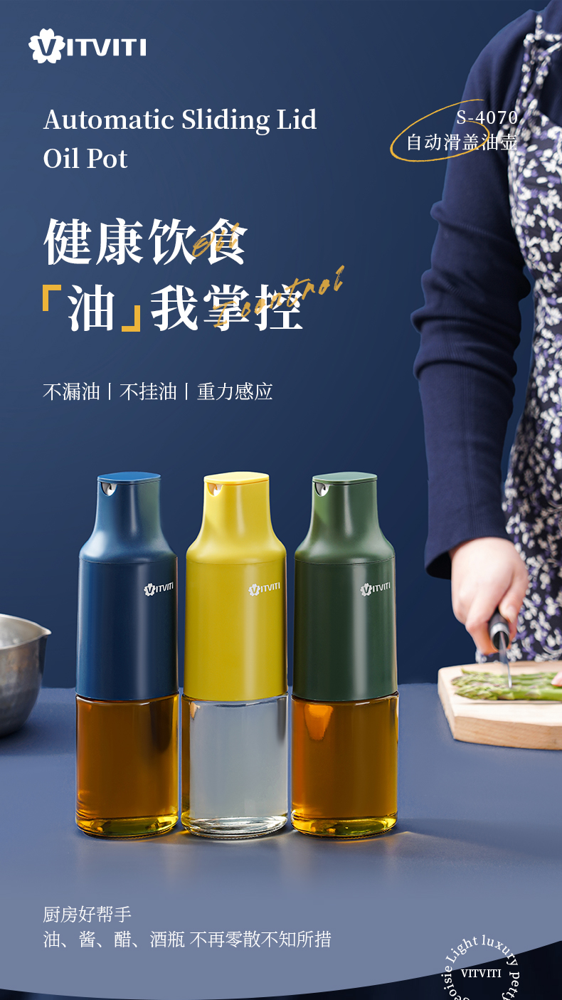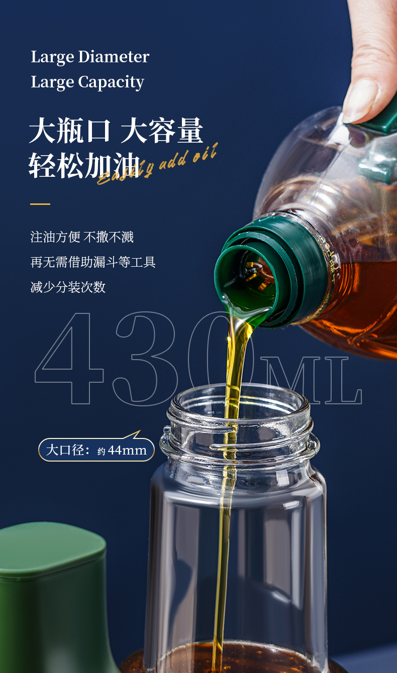自动滑盖油壶 430ML 钠钙玻璃(有专利) 玻璃自动滑盖油壶重力油瓶家用厨房装油罐壶酱油醋调料瓶