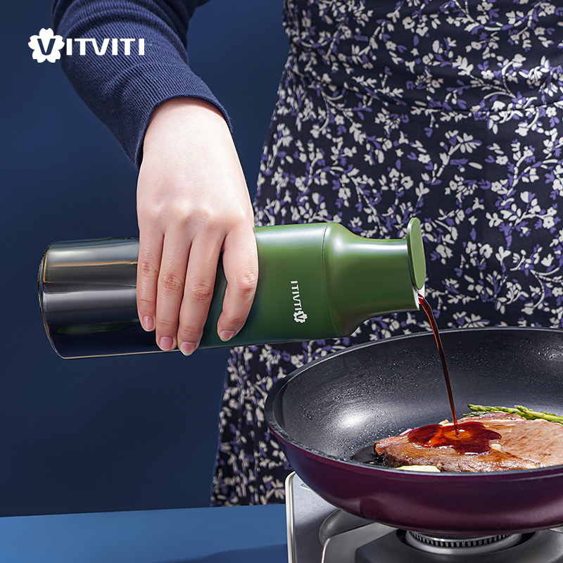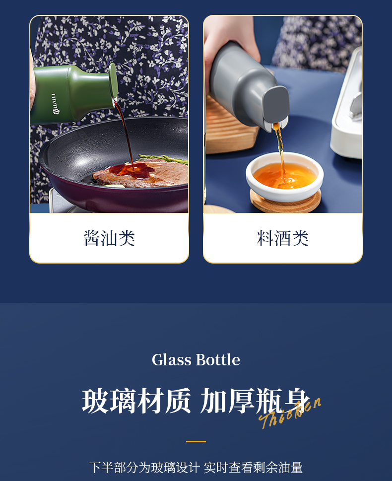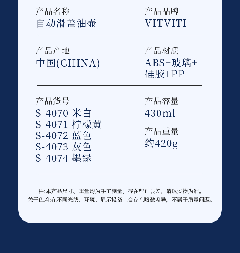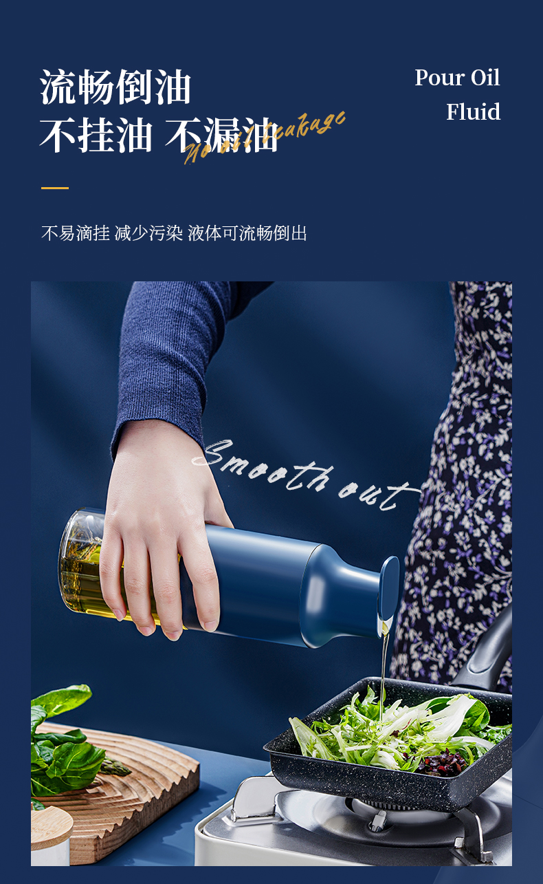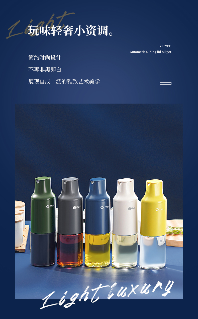 自动滑盖油壶 430ML 钠钙玻璃(有专利) 玻璃自动滑盖油壶重力油瓶家用厨房装油罐壶酱油醋调料瓶