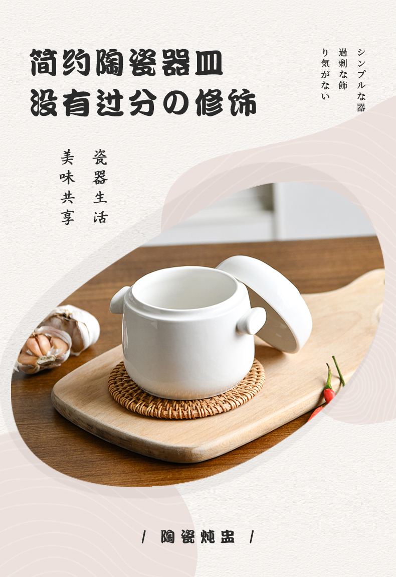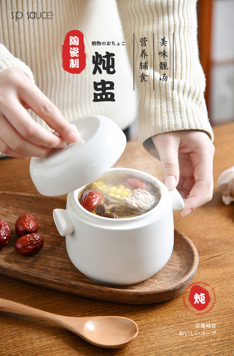 D 陶瓷炖盅 陶瓷小炖盅一人份隔水炖家用单人炖蛋蒸盅汤盅罐燕窝专用碗