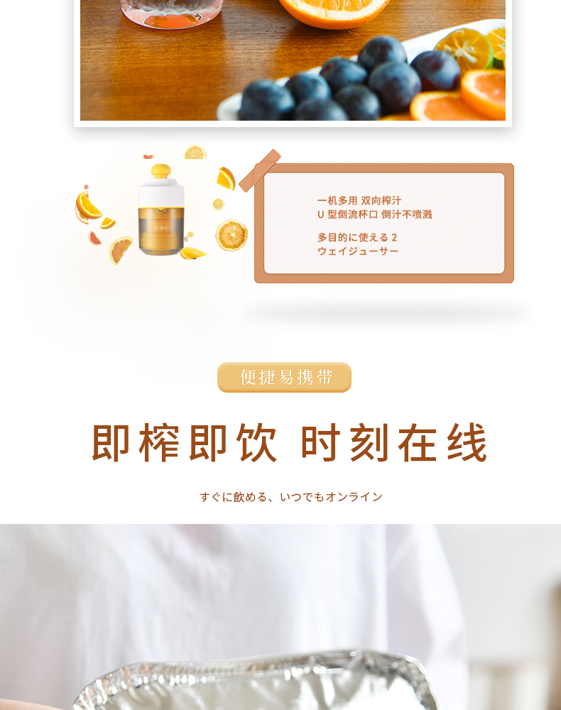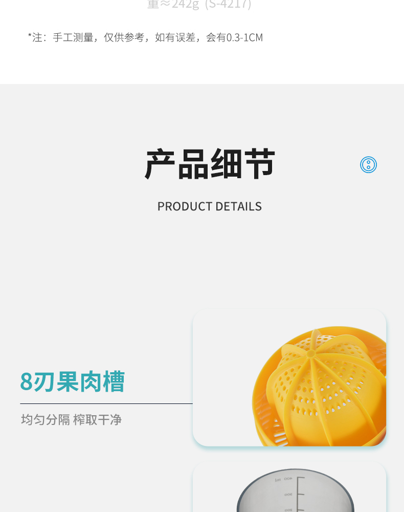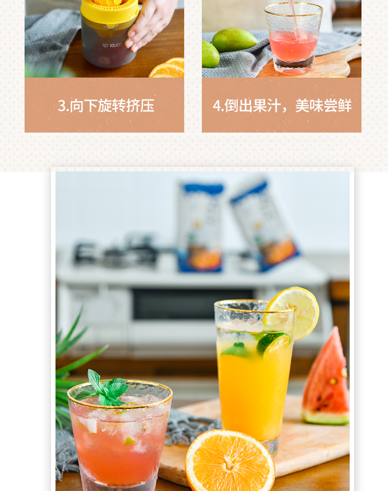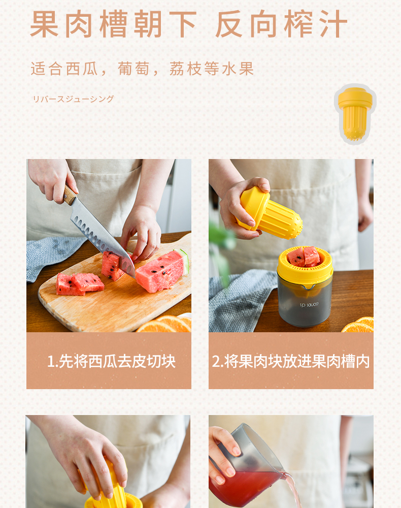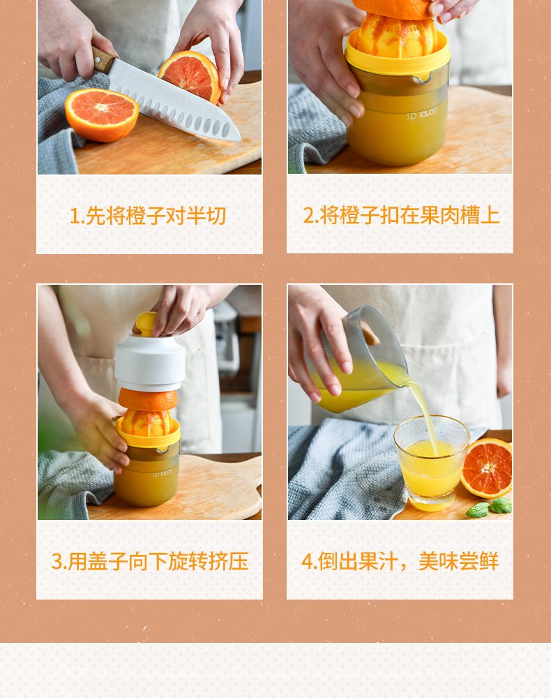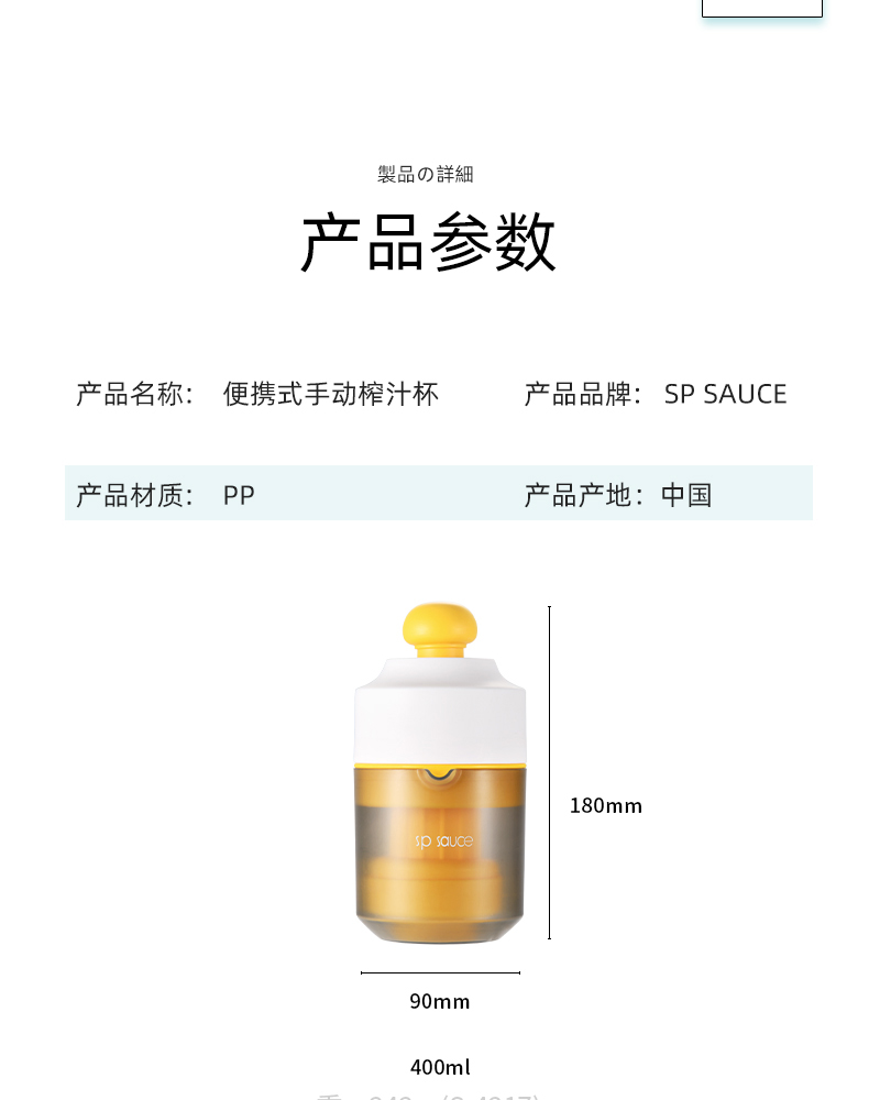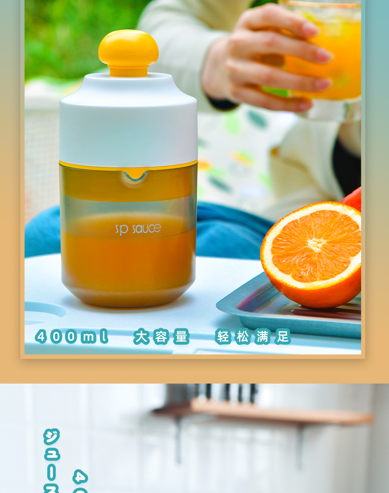 便携式手动榨汁机 400ML 简易手动榨汁机小型便携式橙汁杯家用压榨器水果橙子柠檬榨汁器