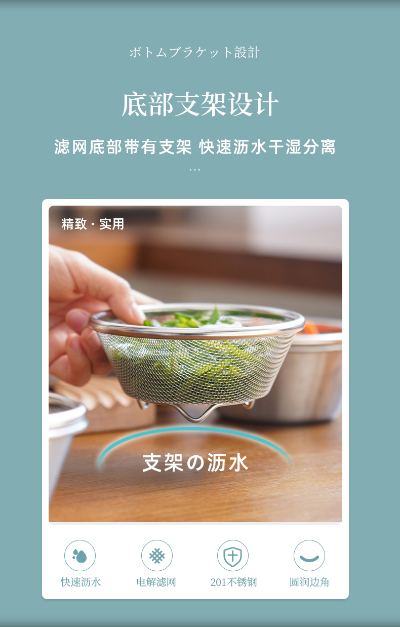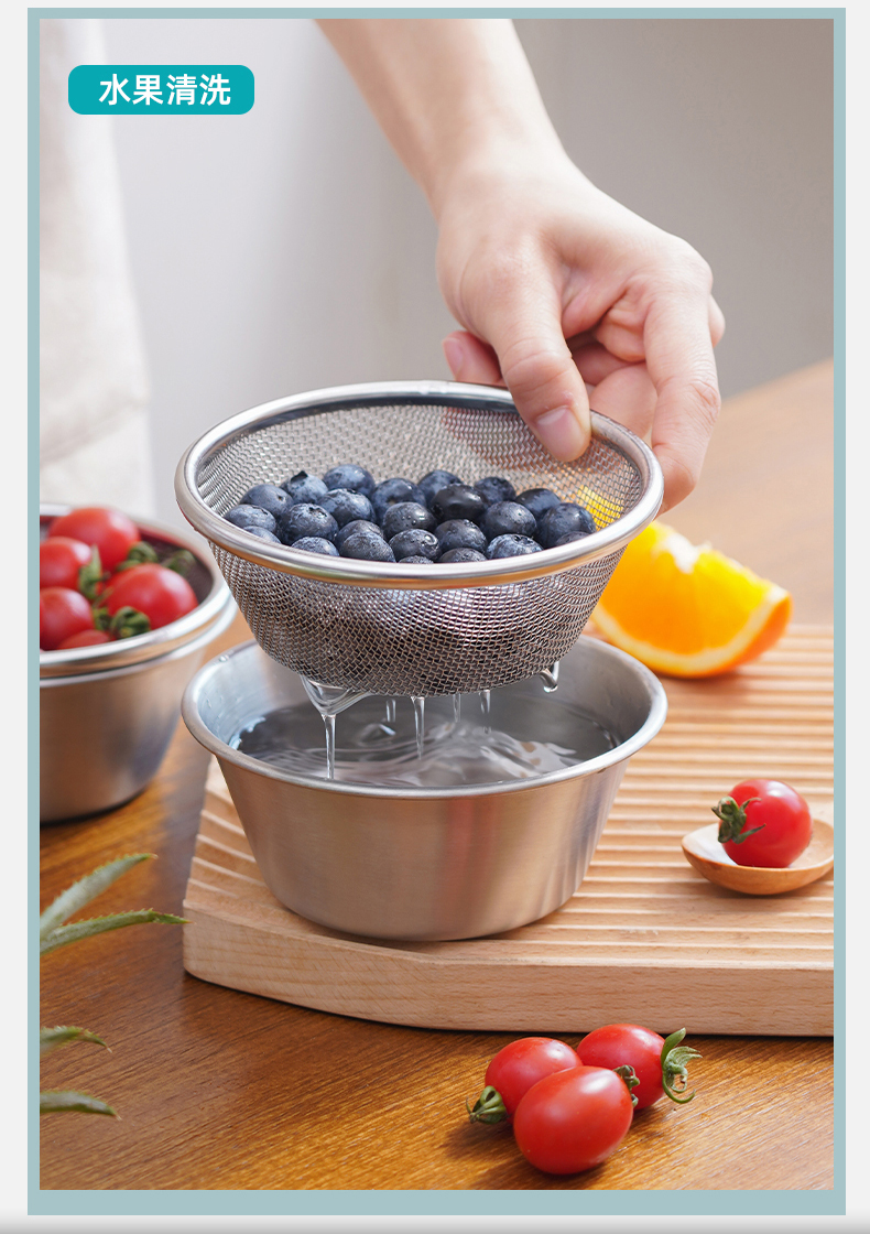 锥形沥水篮套装(小号) 不锈钢小盆厨房料理碗沥水篮水果沥水盆