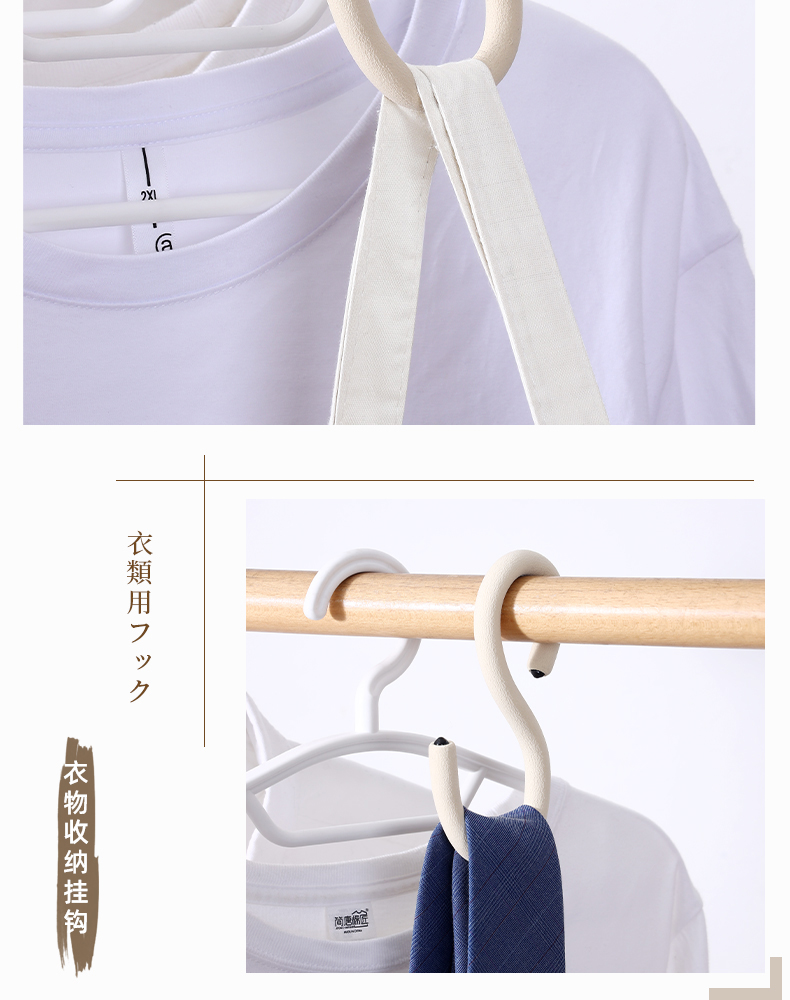 D 多用途自由锁(2枚入) 任意S型挂钩多功能弯曲免打孔橱柜随意锁钩子门后衣帽杂物收纳架