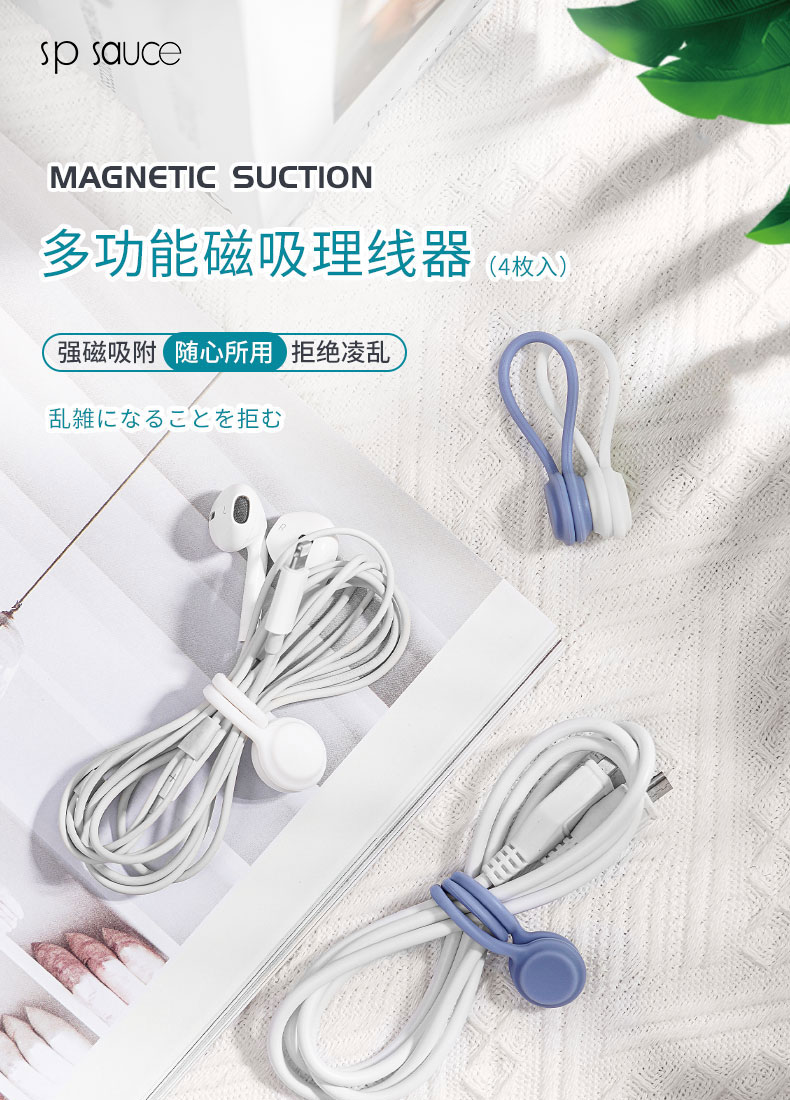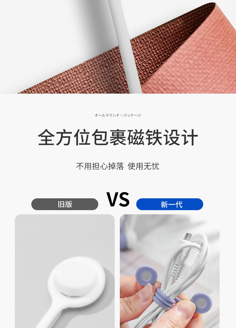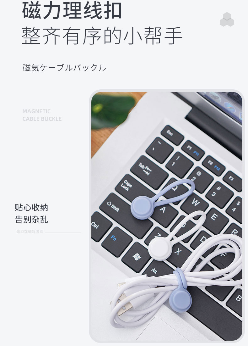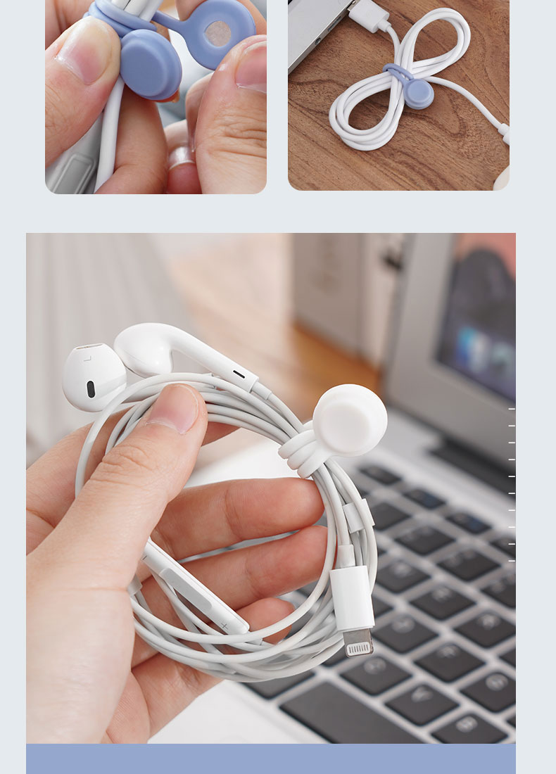 D多功能磁吸理线器(4枚入) 通用耳机理线器磁吸硅胶数据线收纳扣网线捆线绑带电线扎带绕线器