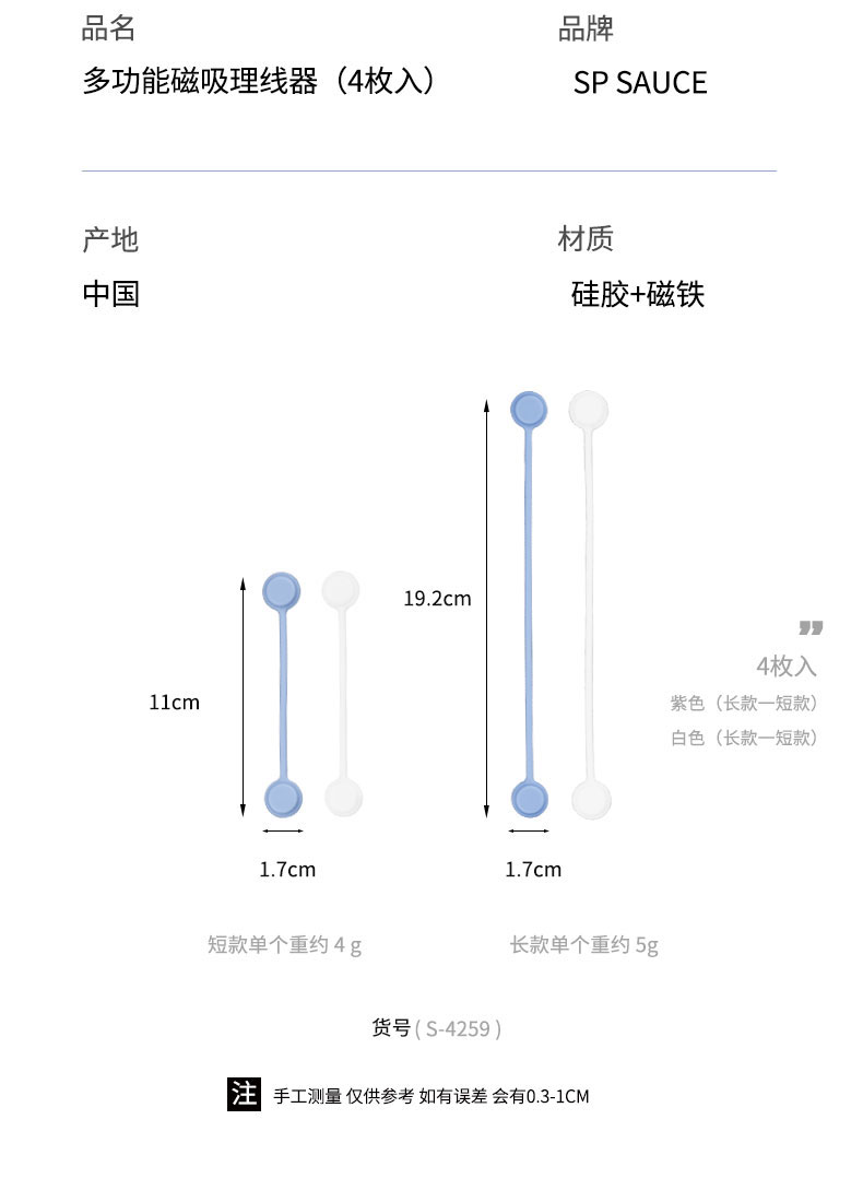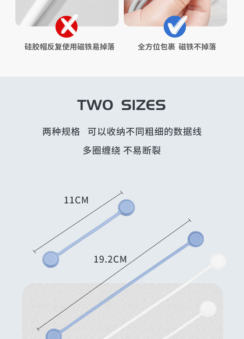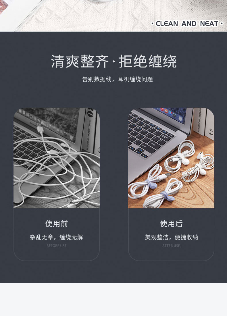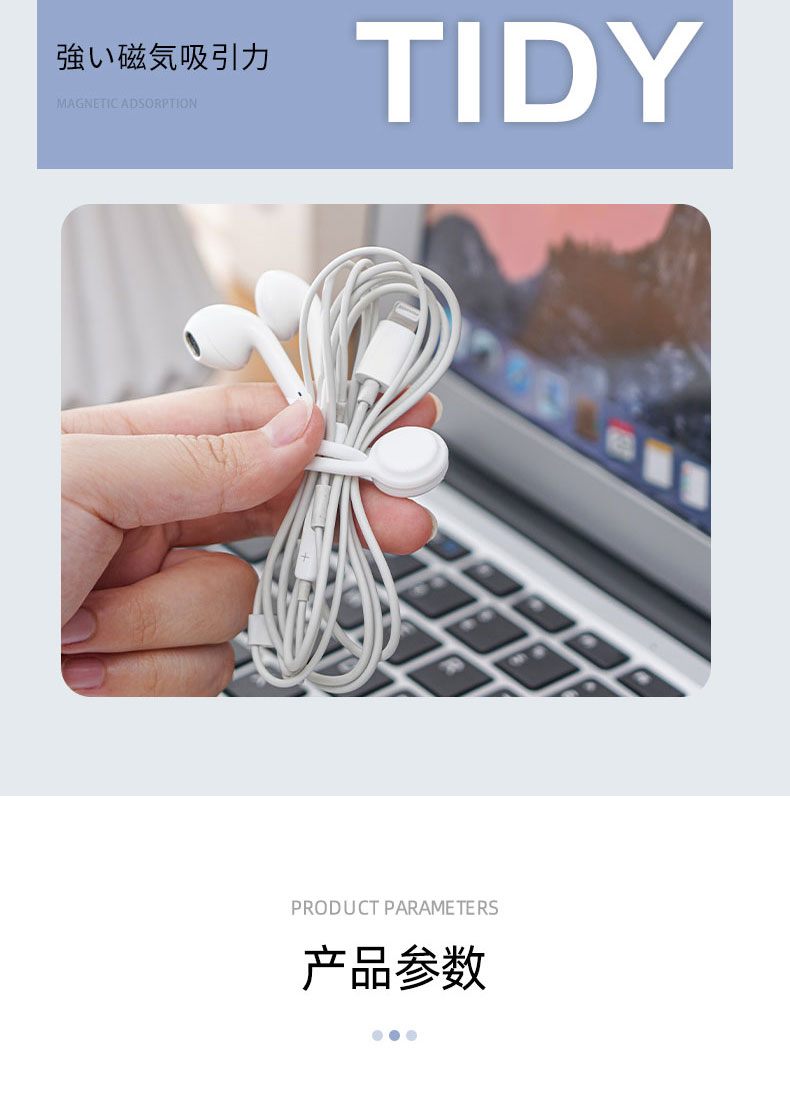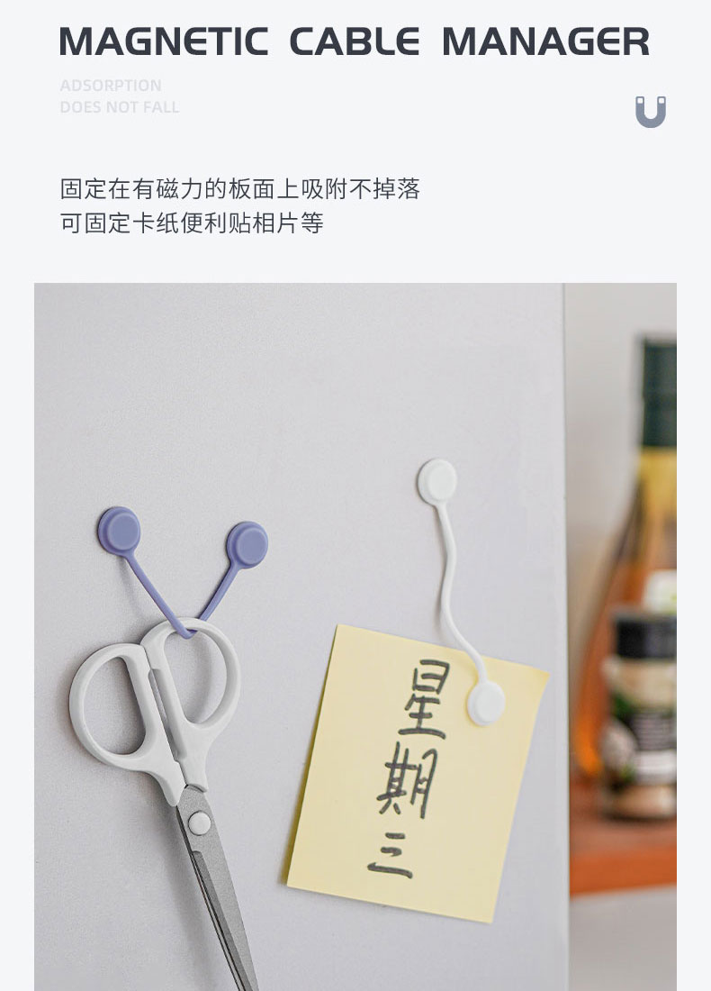 D多功能磁吸理线器(4枚入) 通用耳机理线器磁吸硅胶数据线收纳扣网线捆线绑带电线扎带绕线器