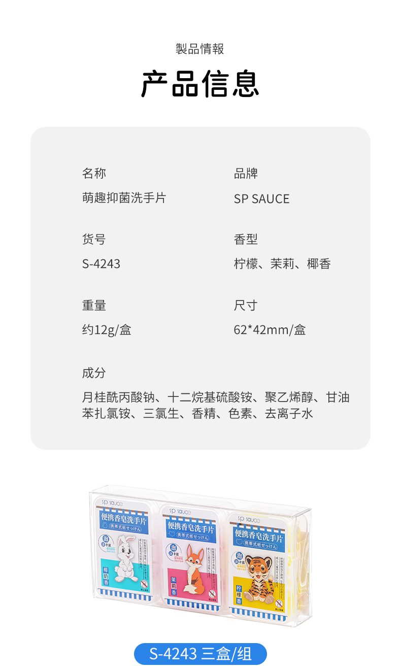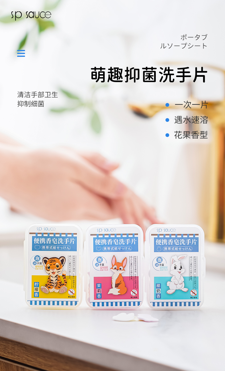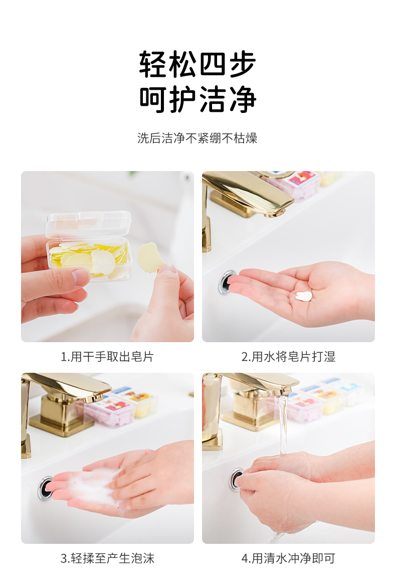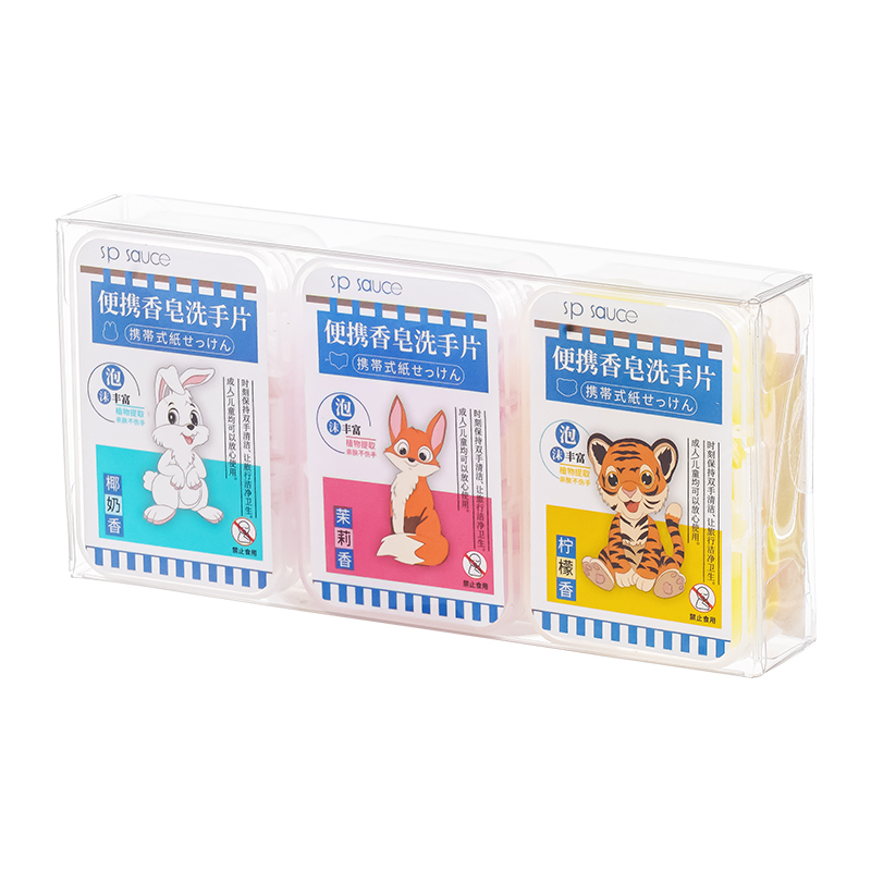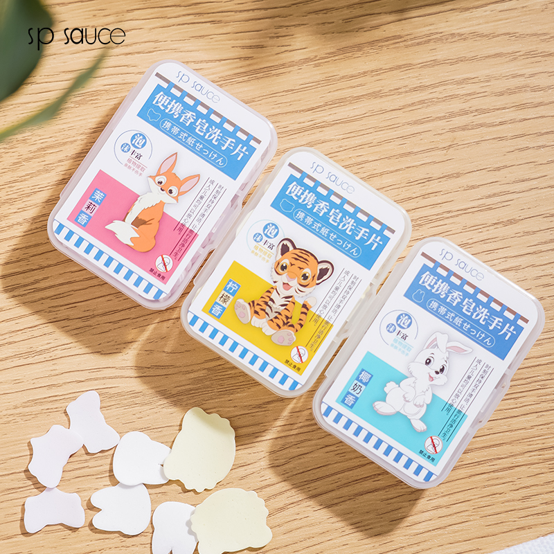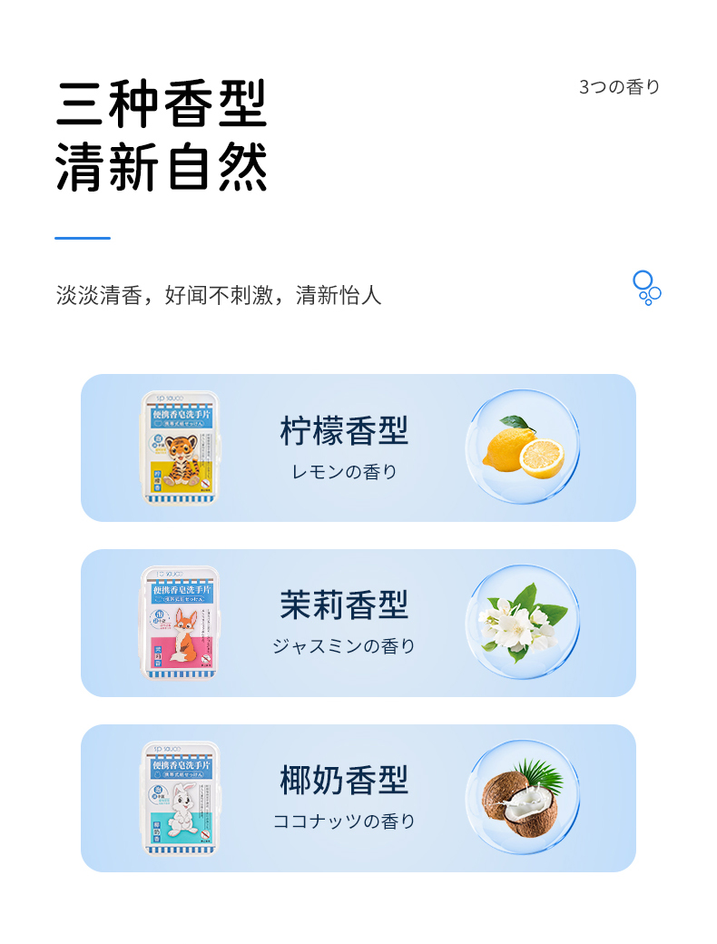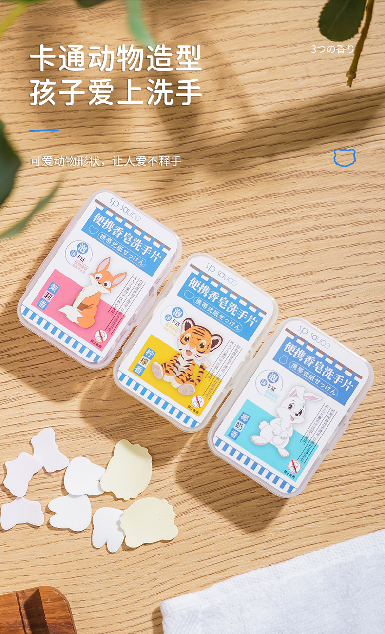 D 萌趣抑菌洗手片 三盒入 一次性香皂纸旅行便携式肥皂片盒装肥皂纸出差旅游随身抑菌洗手片