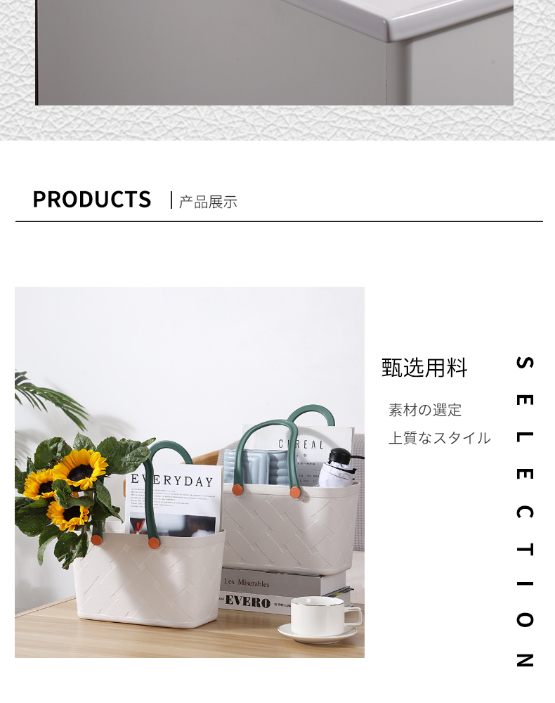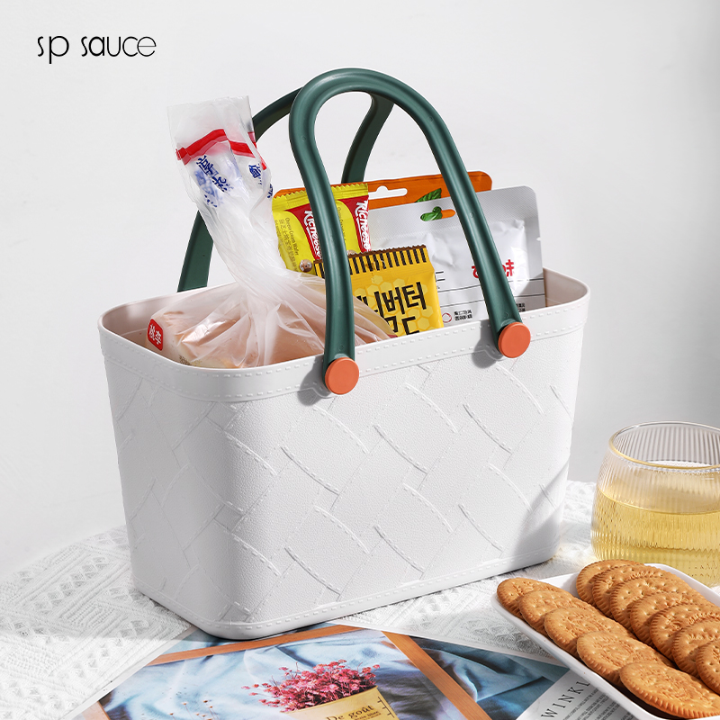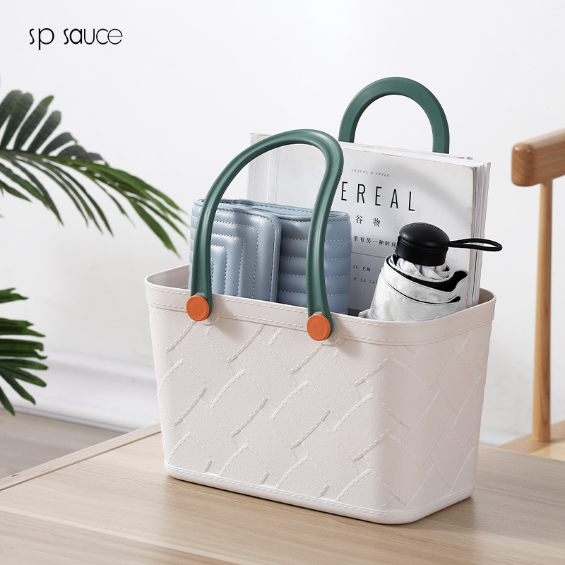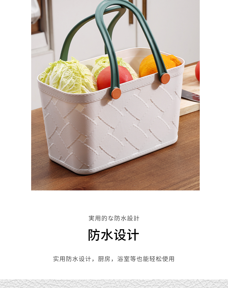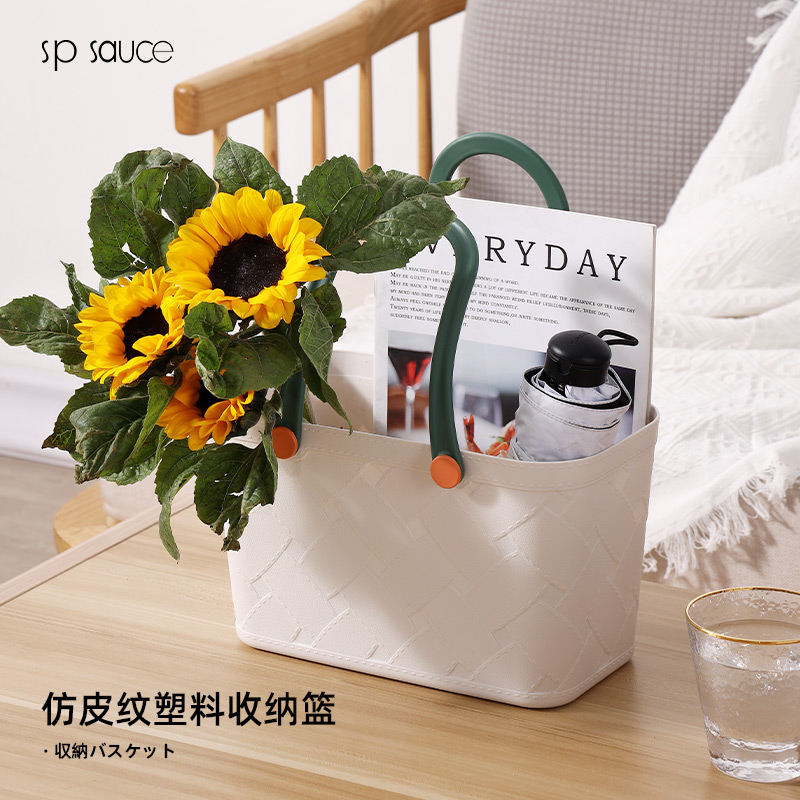 D 仿皮纹塑料收纳篮 手提式洗澡篮洗漱框收纳篮子卫生间洗浴沐浴室家用杂物野餐筐