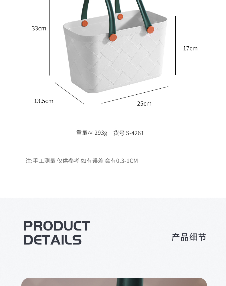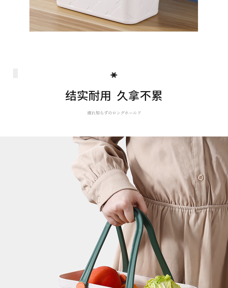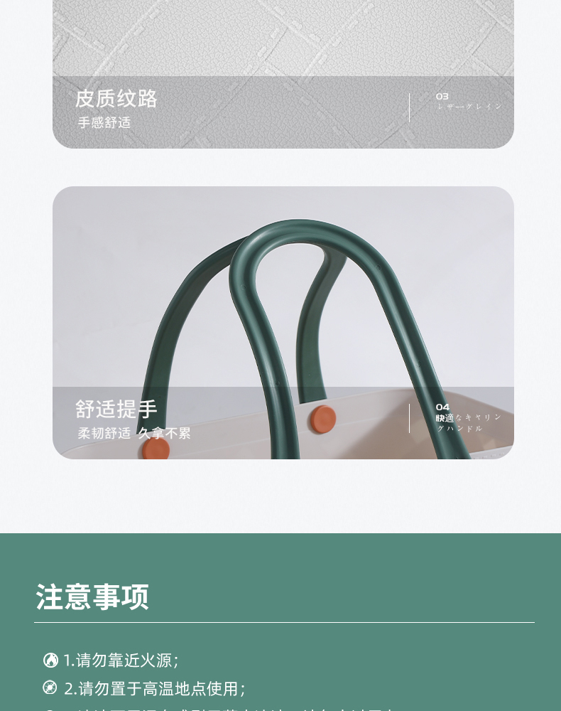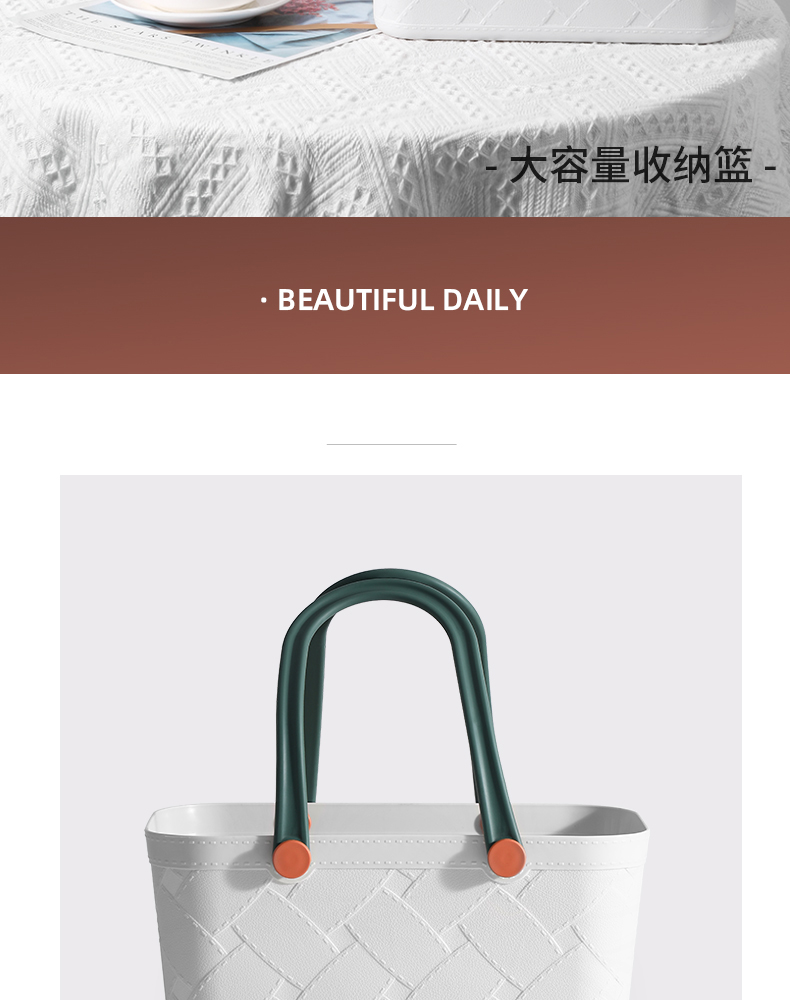 D 仿皮纹塑料收纳篮 手提式洗澡篮洗漱框收纳篮子卫生间洗浴沐浴室家用杂物野餐筐