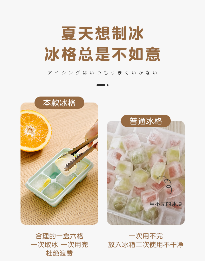 冰格(3枚入) 夏天家用冰块模具冰箱自制冰块盒食品级硅胶冰格网红迷你冰格模具