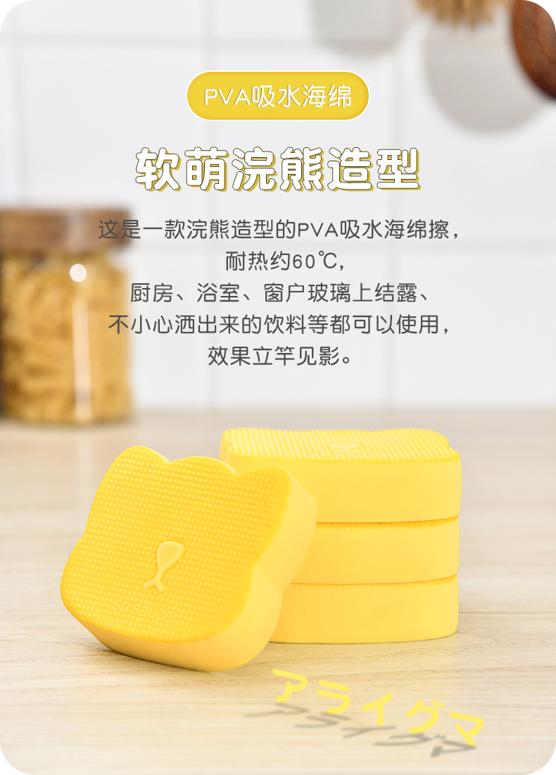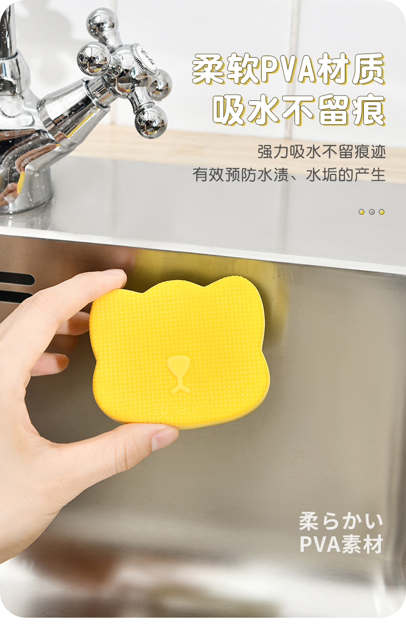 D 浣熊款吸水海绵 浣熊吸水海绵擦预防水垢清洁刷厨房浴室洗脸盆去水滴擦
