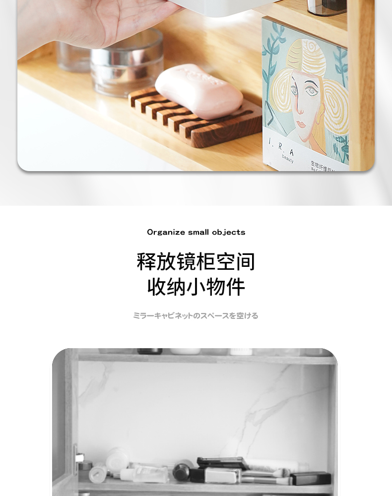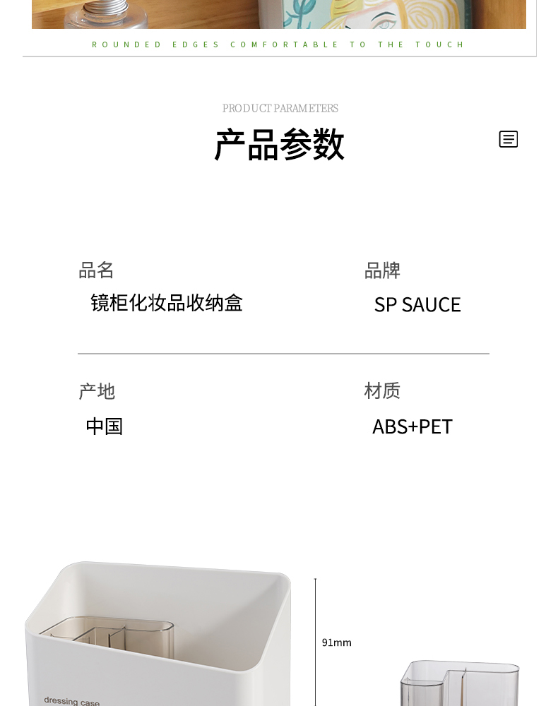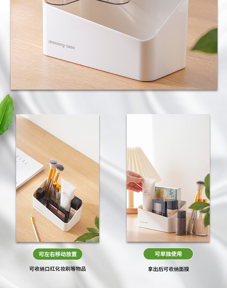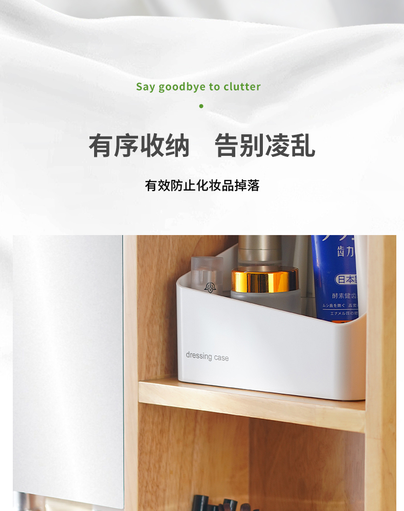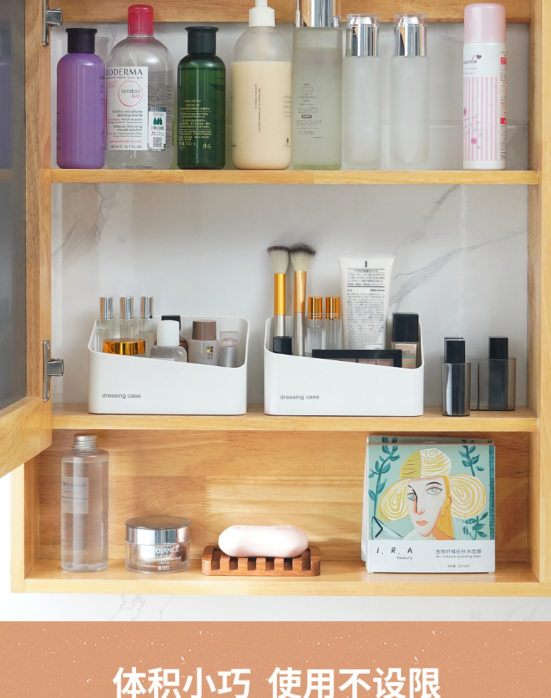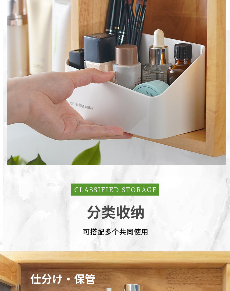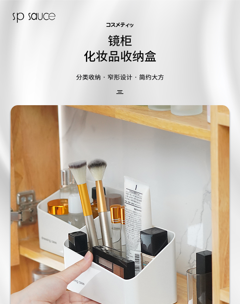 D 镜柜化妆品收纳盒 镜柜化妆品桌面整理收纳盒口红护肤品面膜抽屉内多格储物框