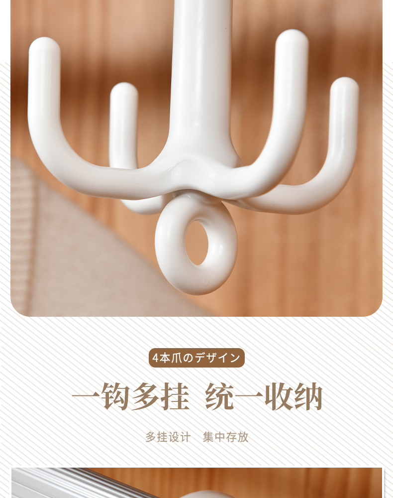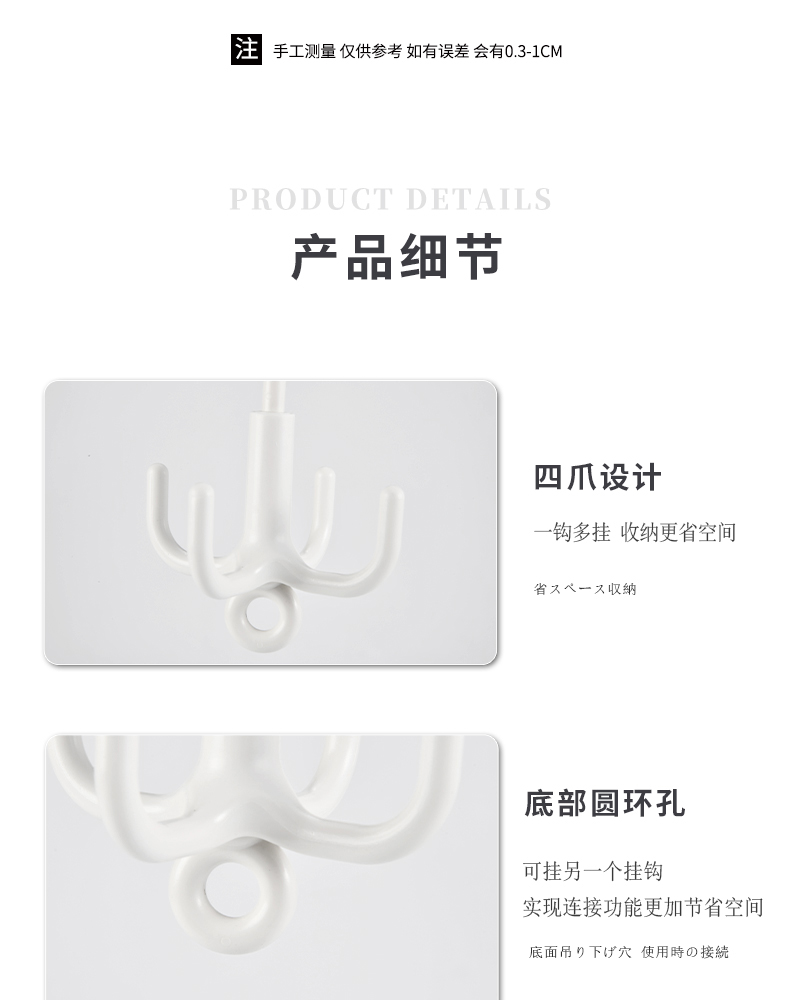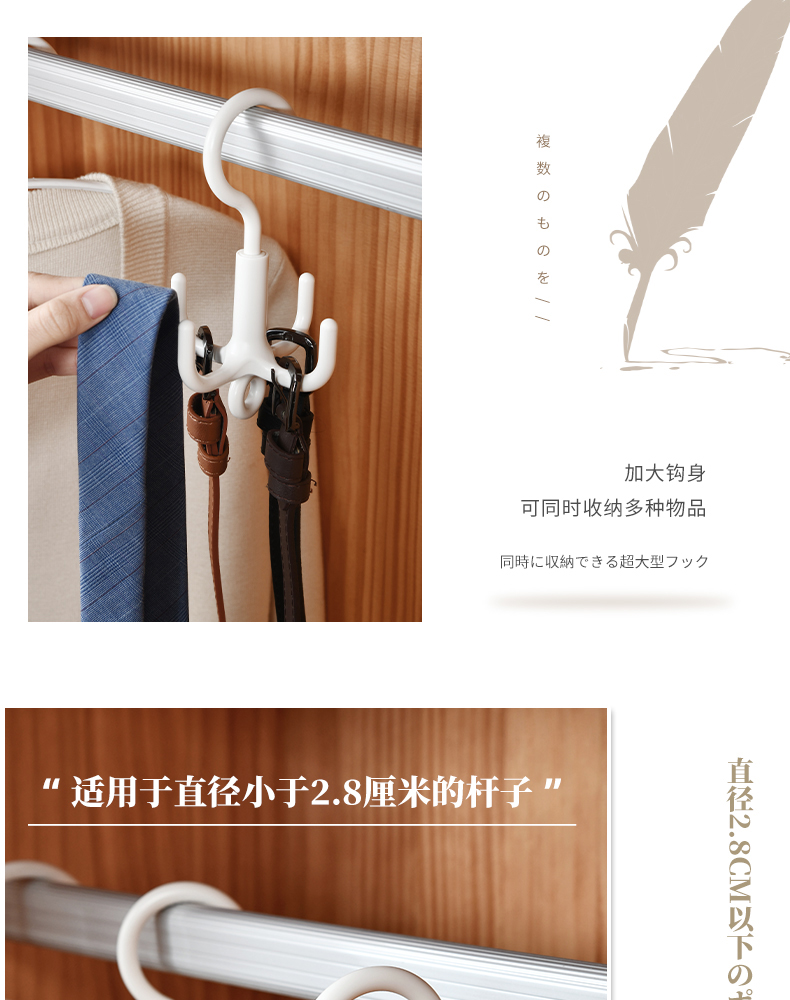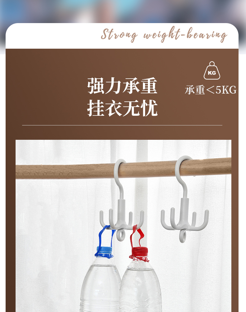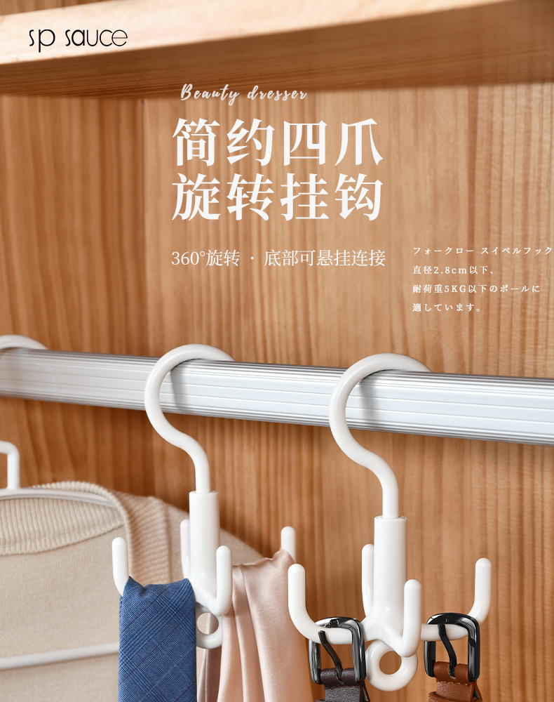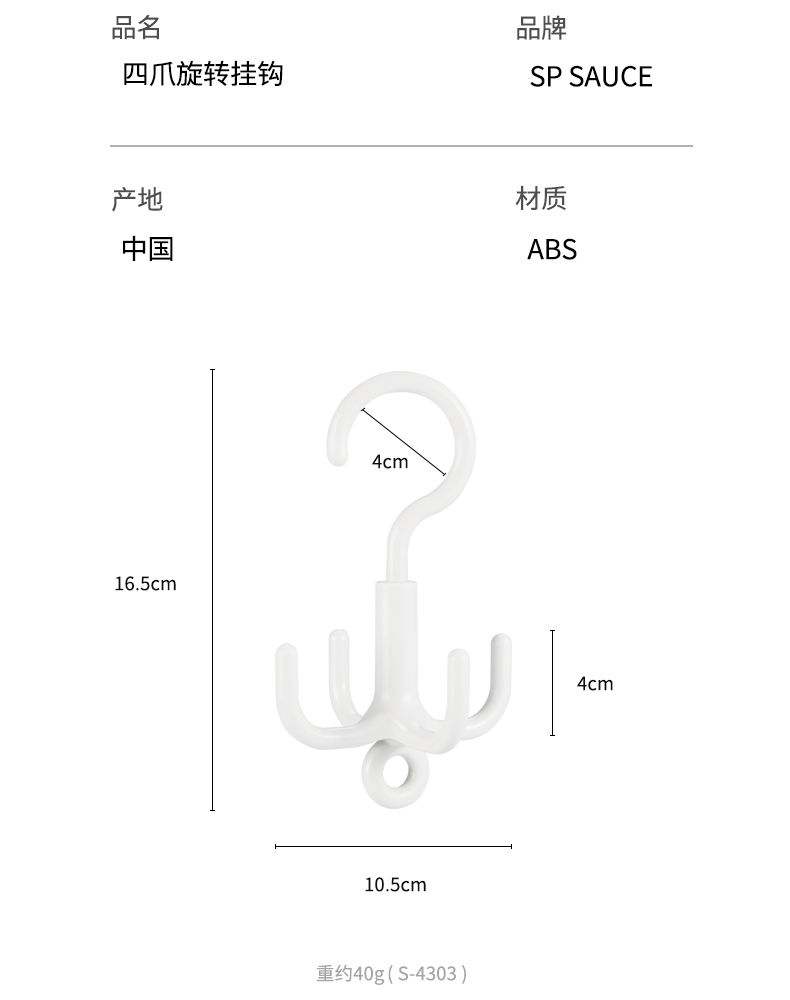 D四爪旋转挂钩 旋转挂钩免打孔四爪衣帽钩包包收纳钩子创意衣服挂架