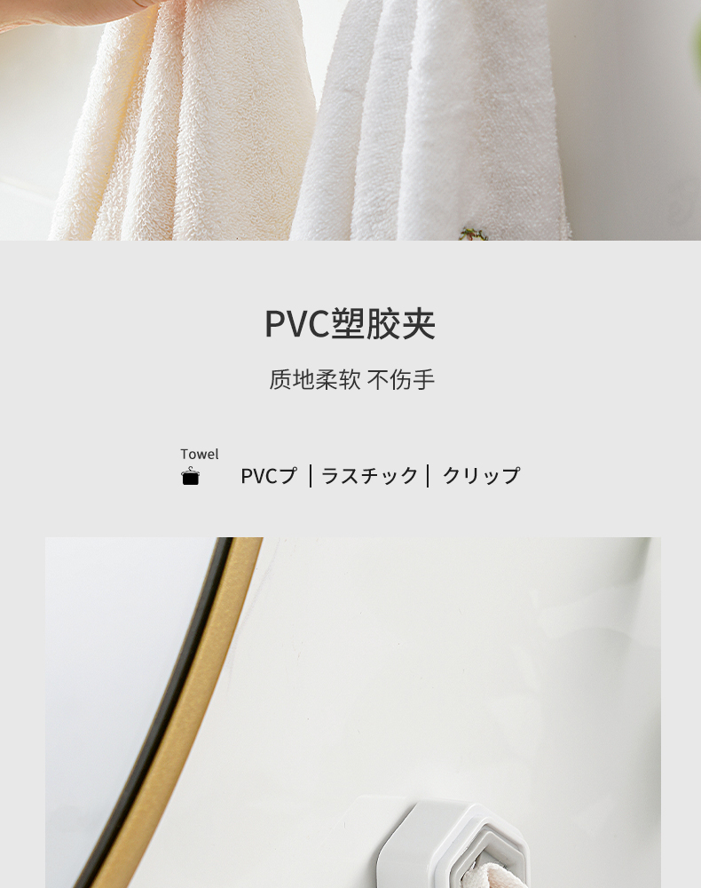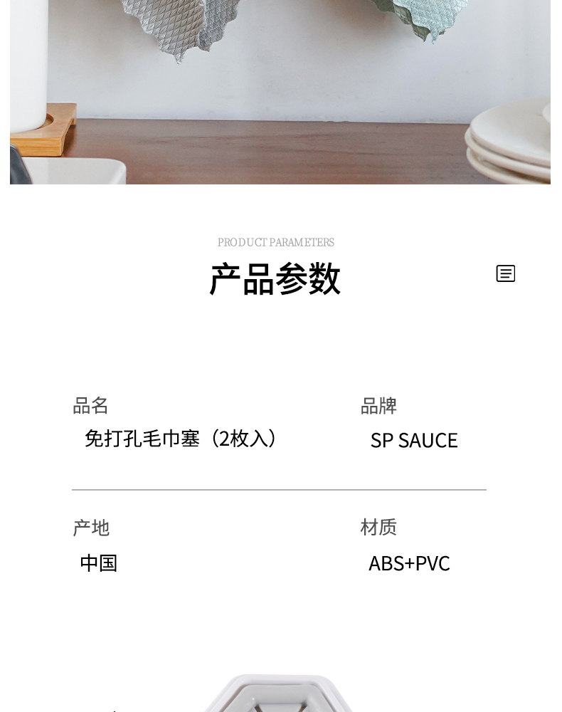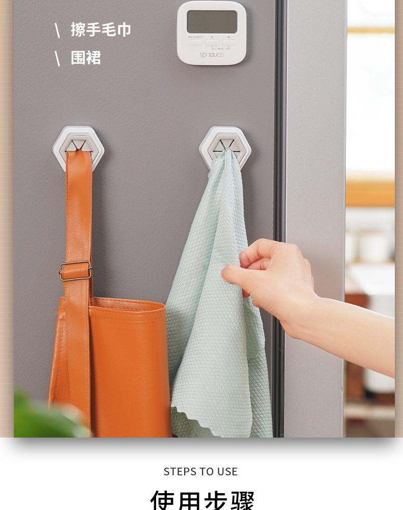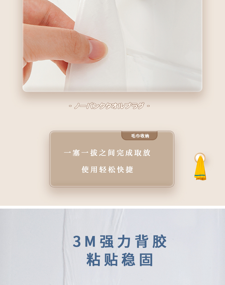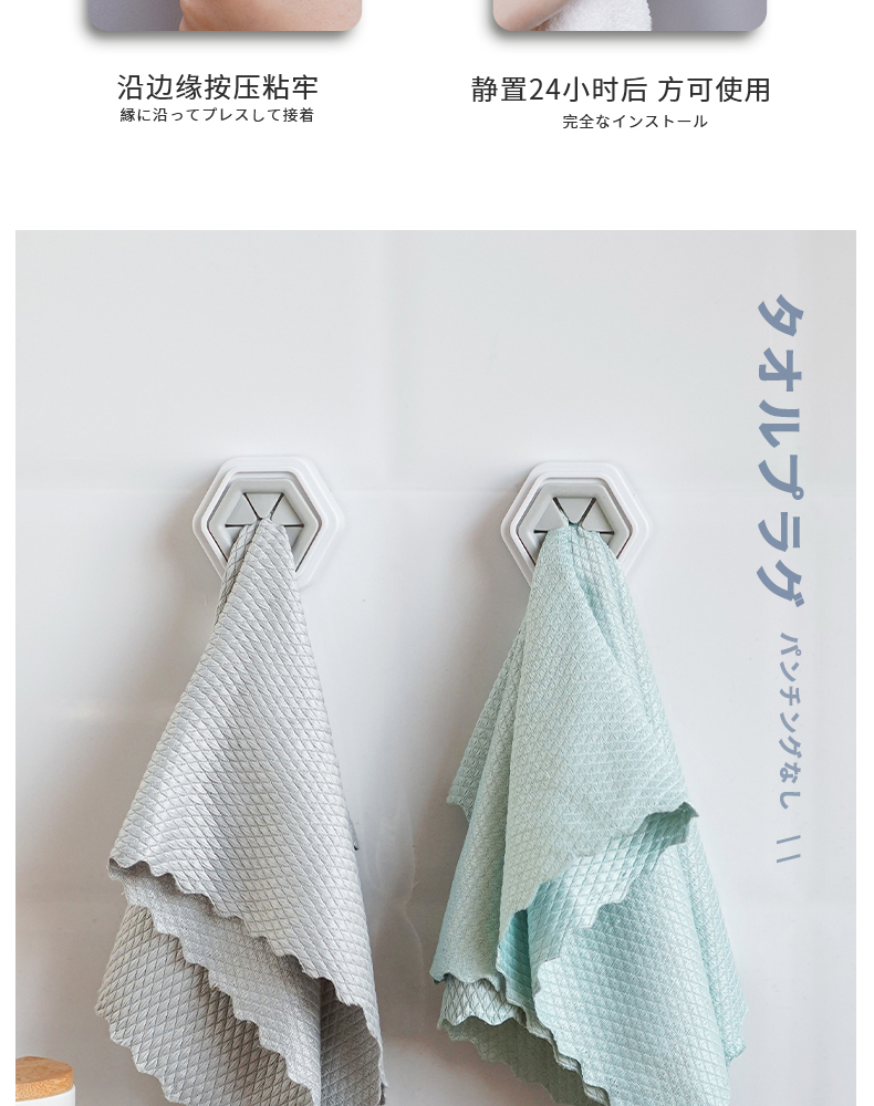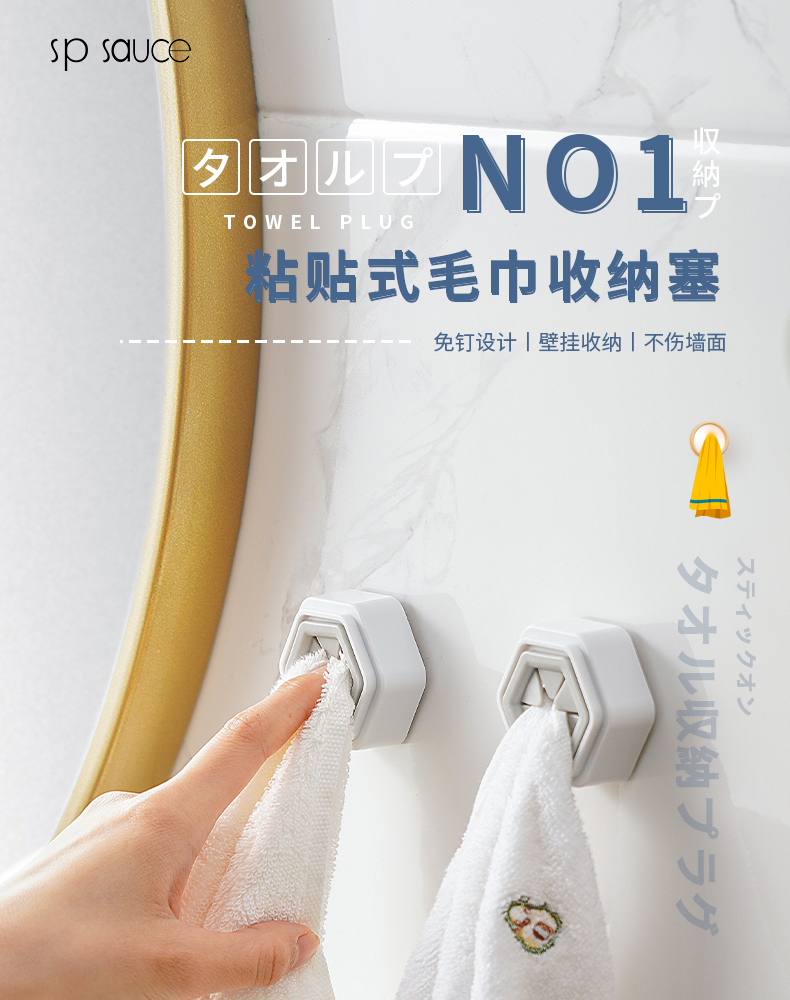 D免打孔毛巾塞(2枚入) 创意毛巾架免打孔收纳挂钩厨房抹布塞挂架擦手巾洗碗巾置物架
