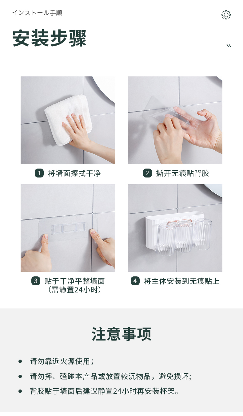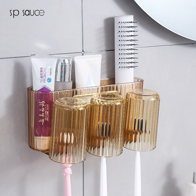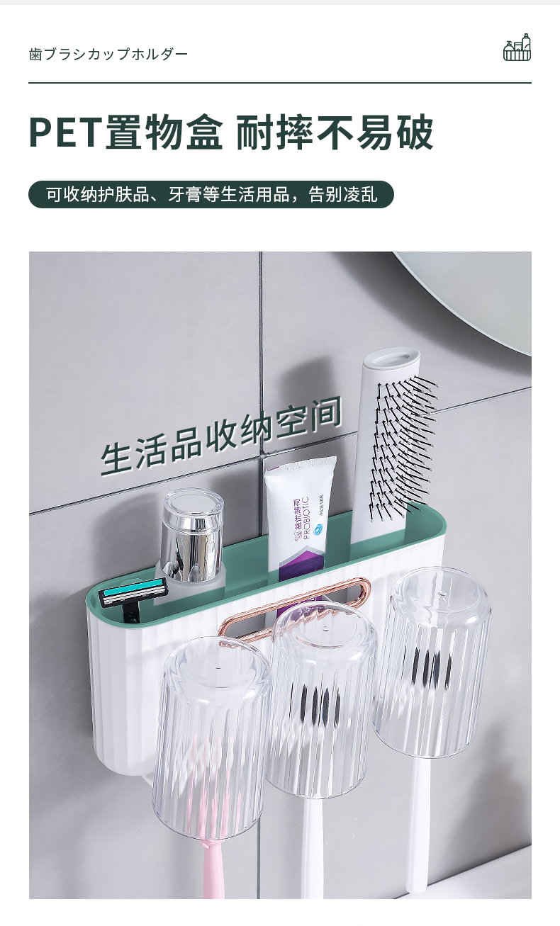 牙刷杯架二人组 牙刷置物架免打孔卫生间刷牙杯壁挂式漱口杯架子轻奢牙杯家庭套装