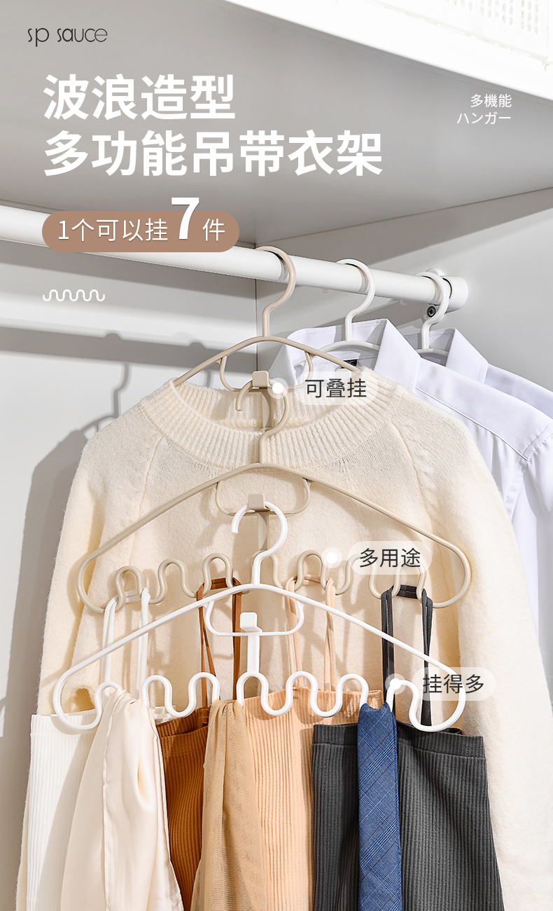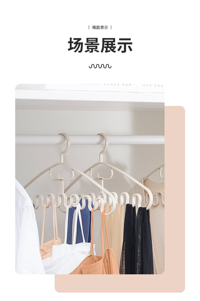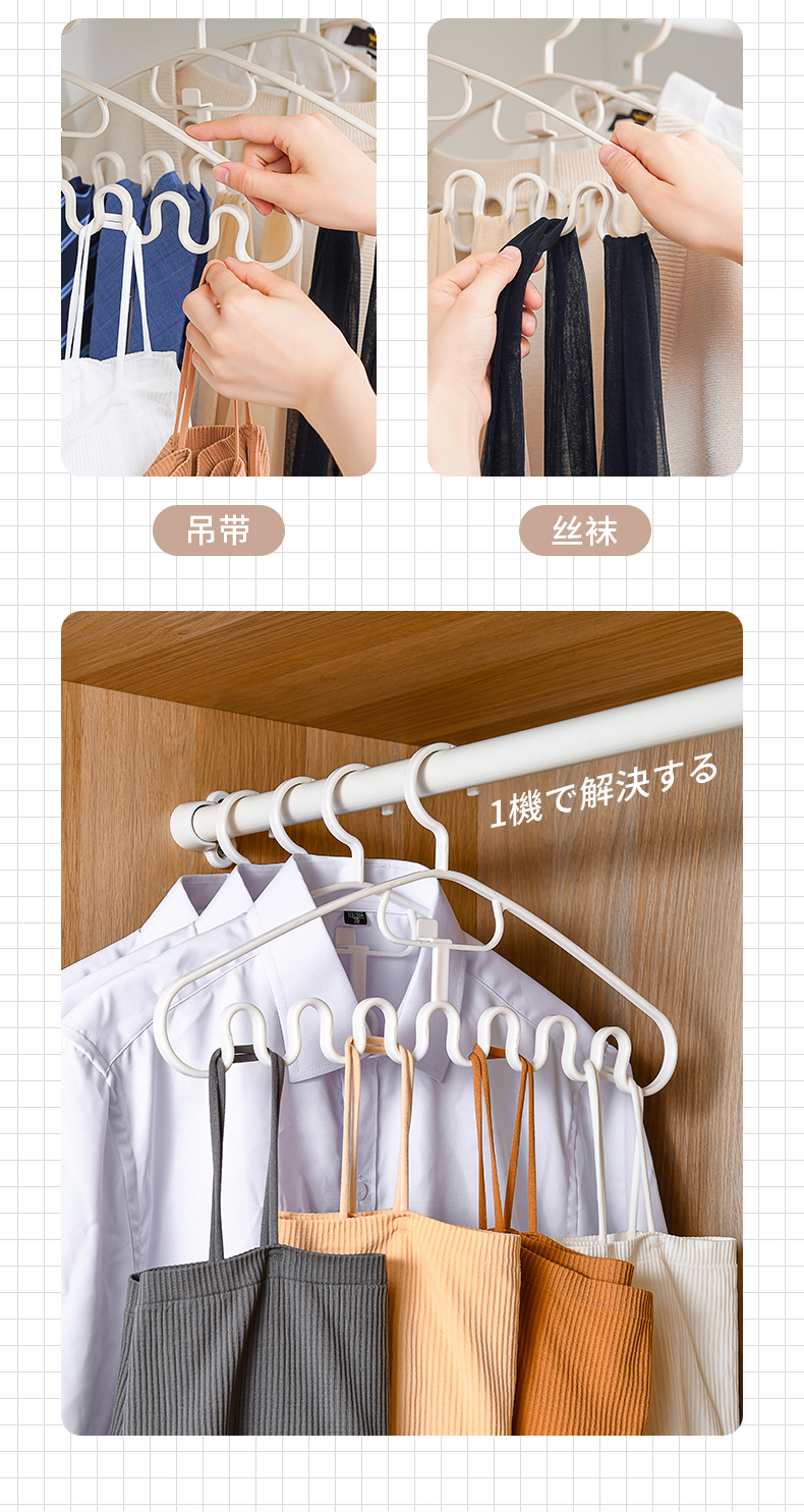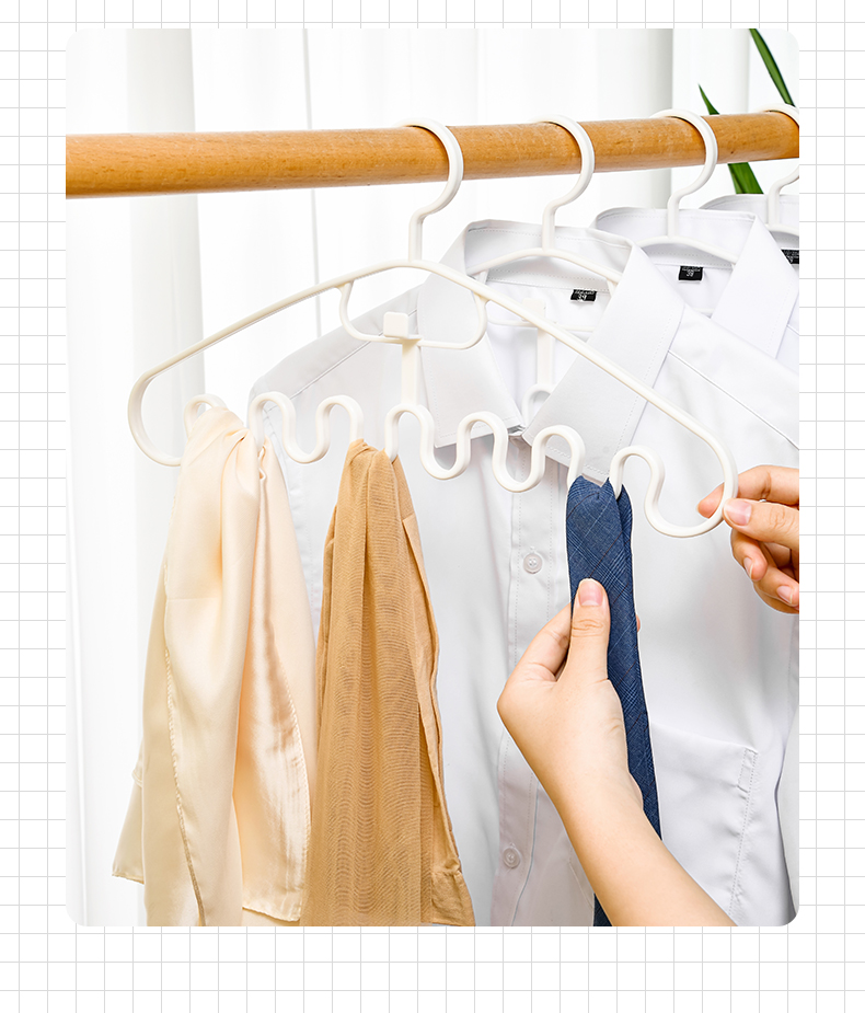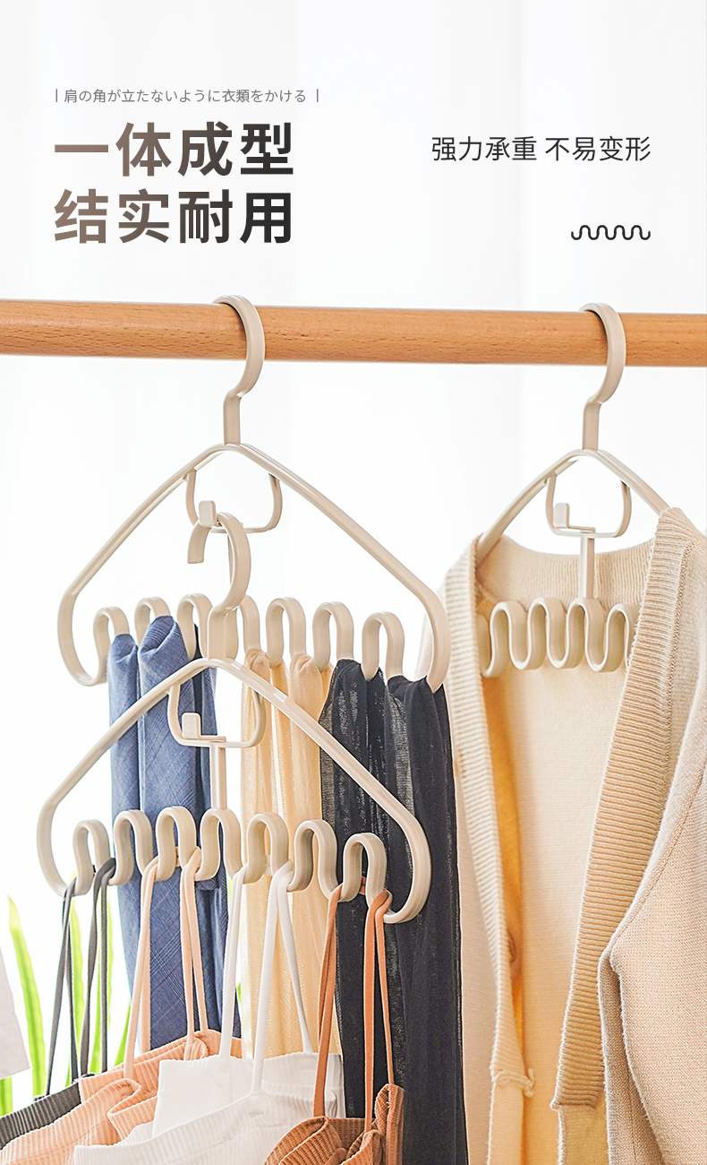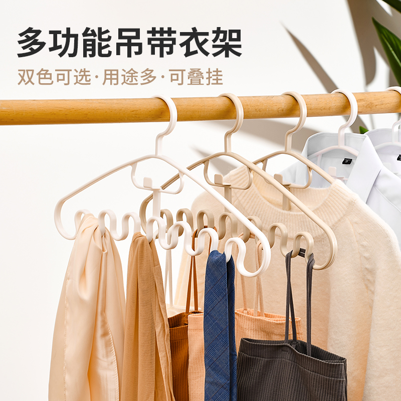 多功能衣架(2枚入) 波浪吊带衣架家用学生宿舍用无痕防滑多功能挂衣撑子领带内衣收纳