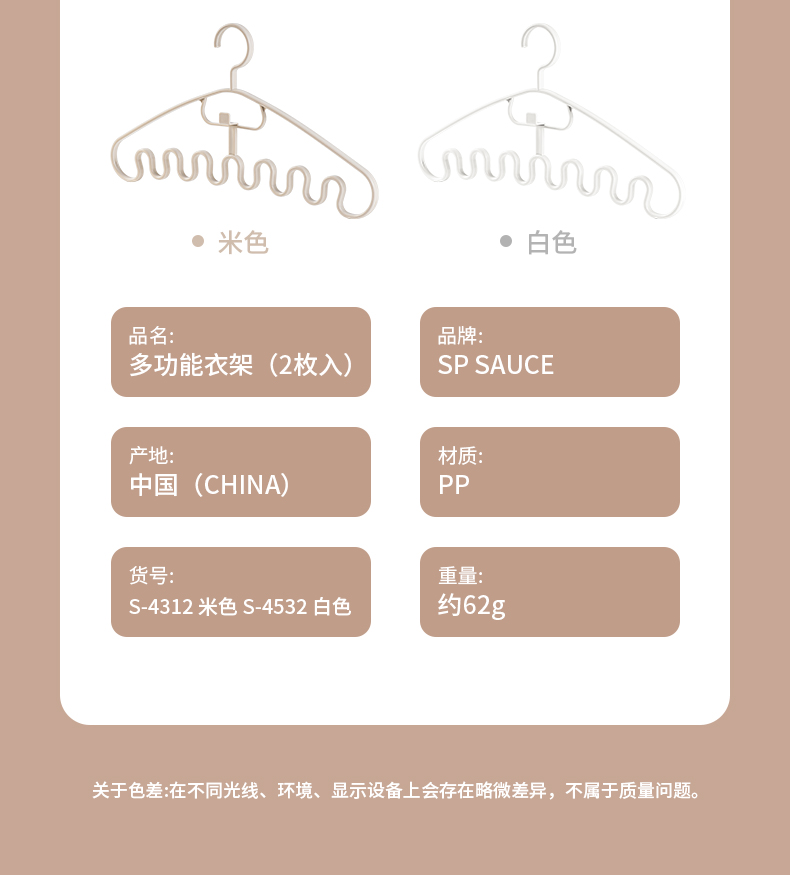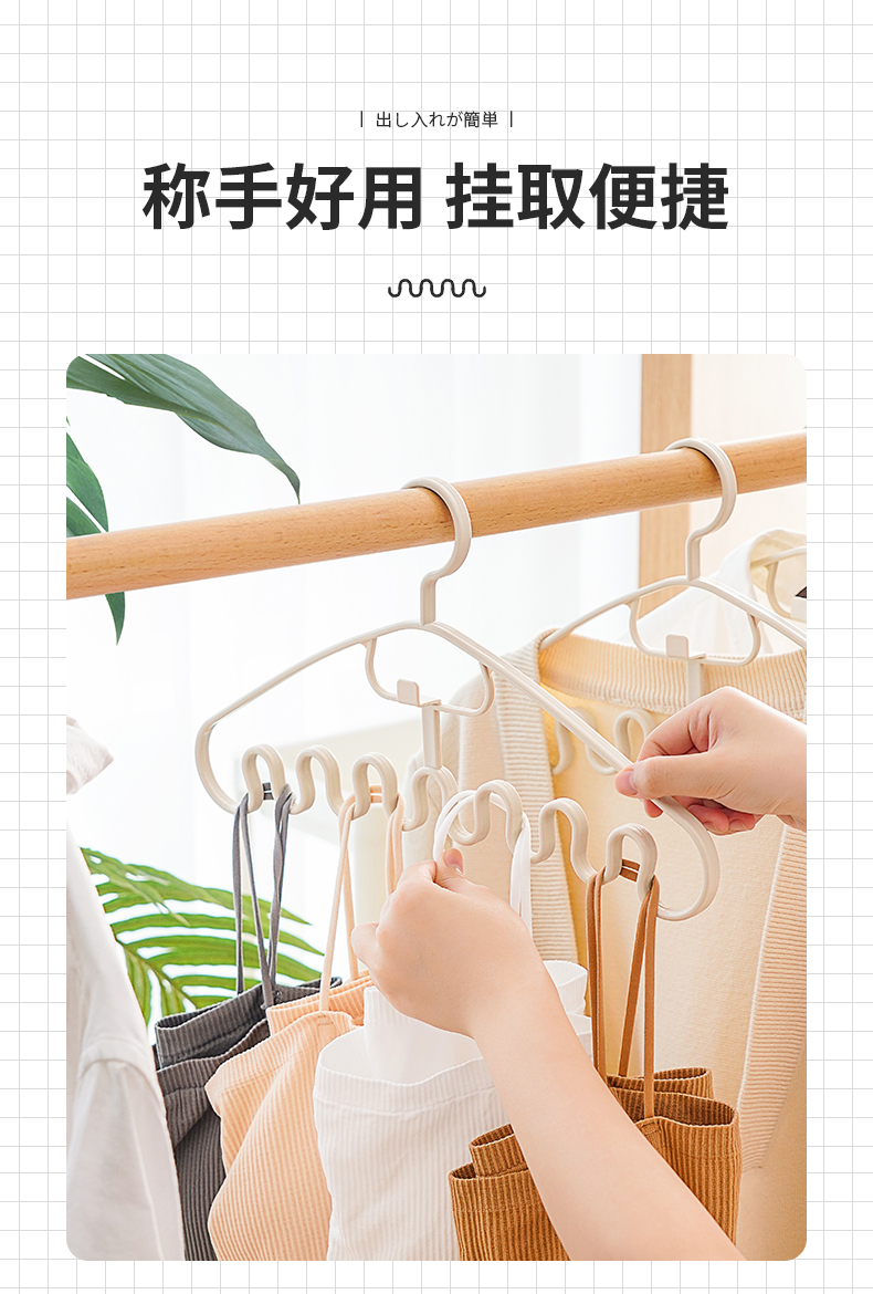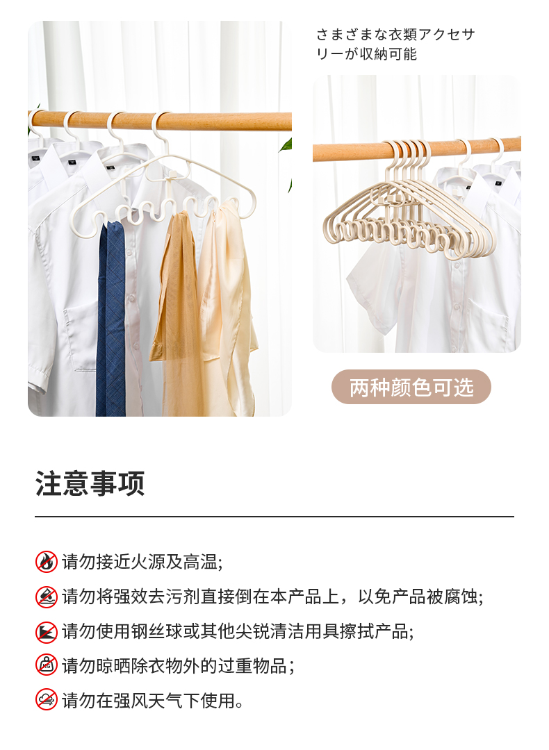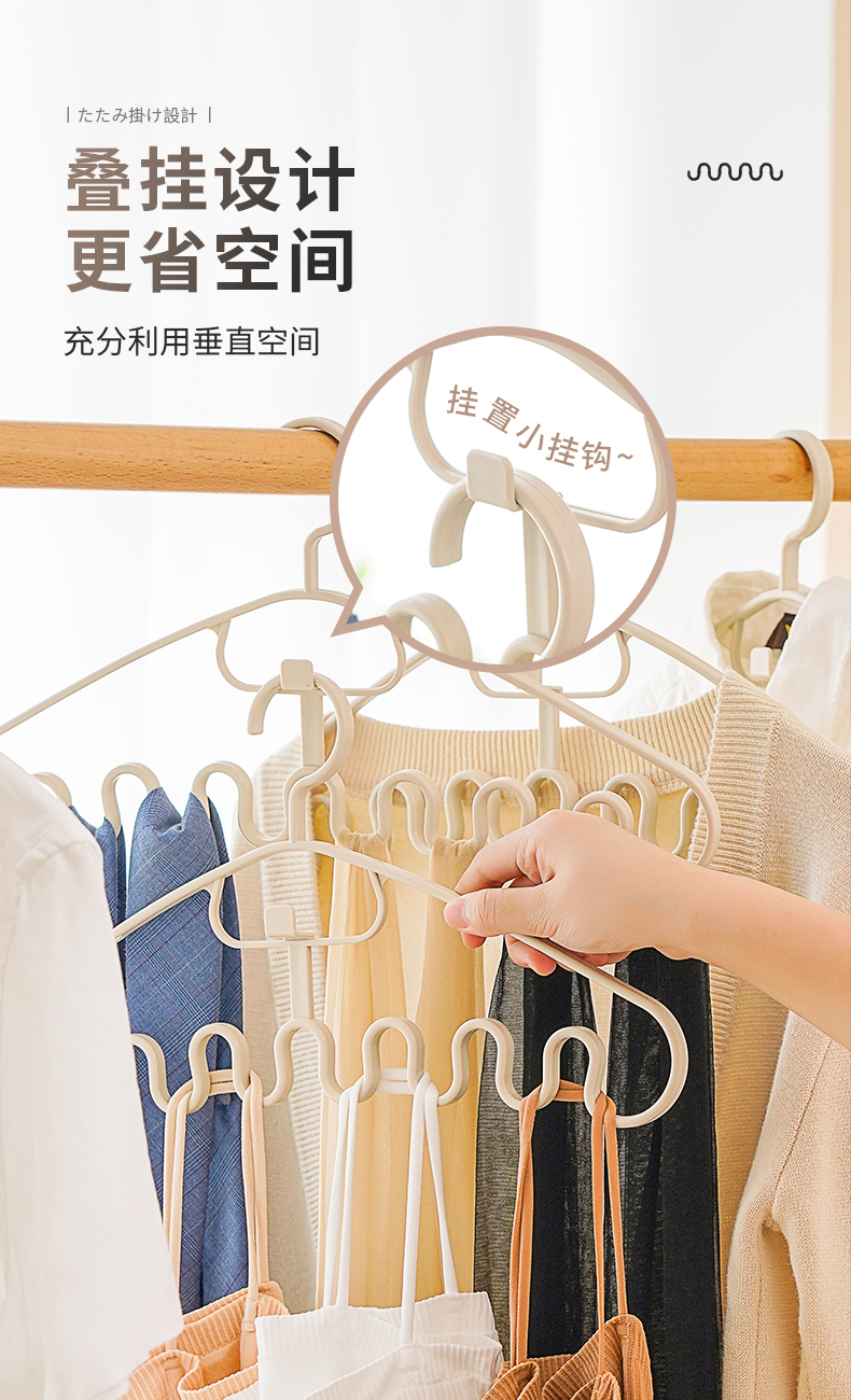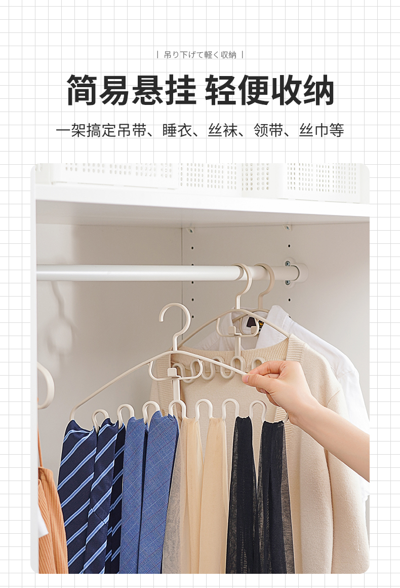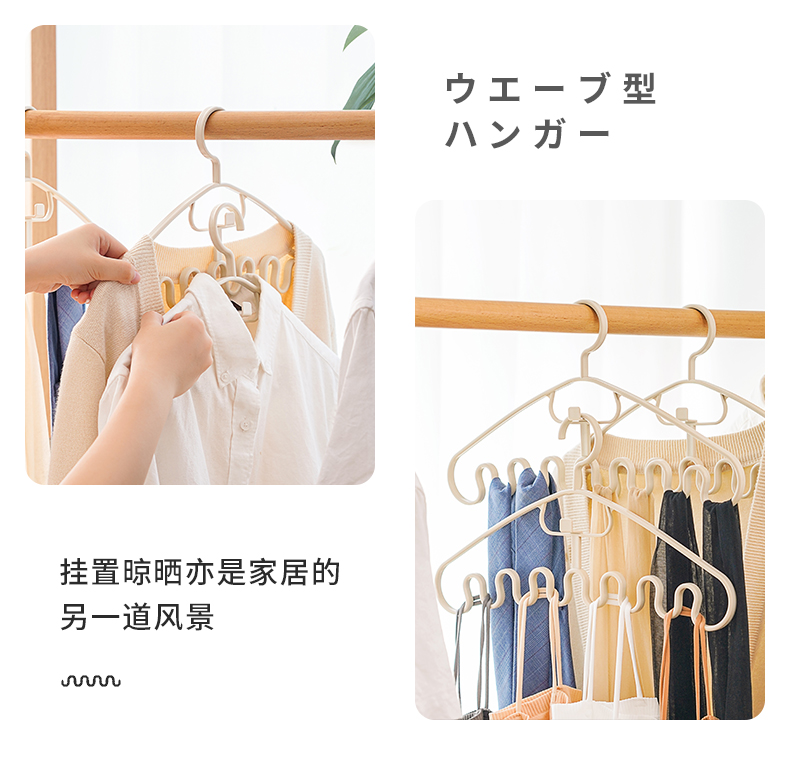 多功能衣架(2枚入) 波浪吊带衣架家用学生宿舍用无痕防滑多功能挂衣撑子领带内衣收纳