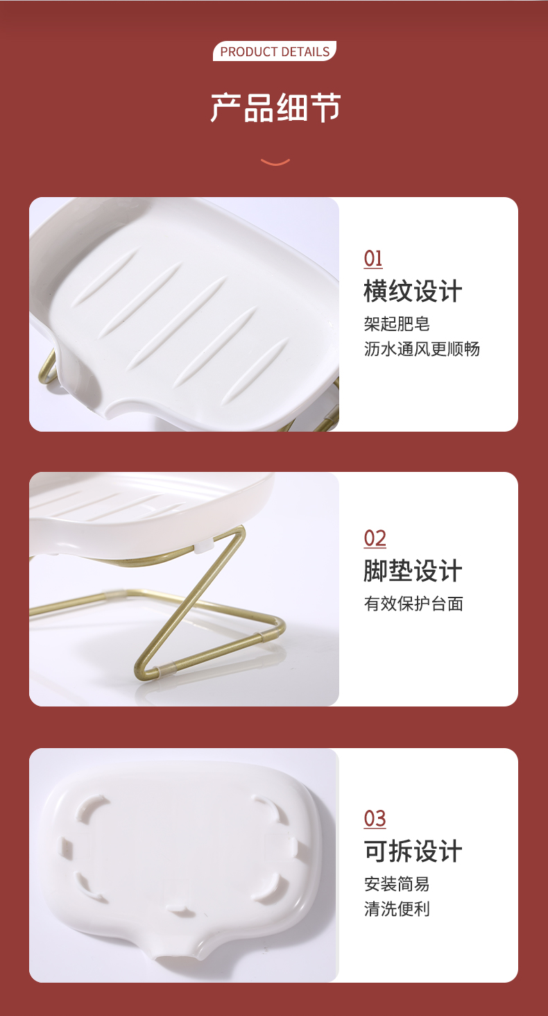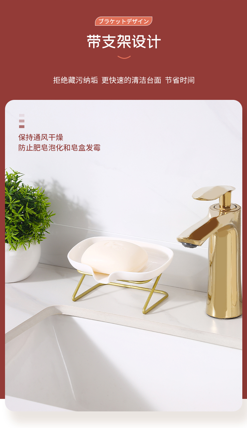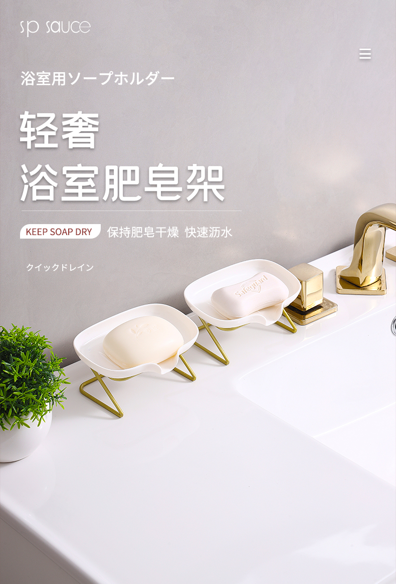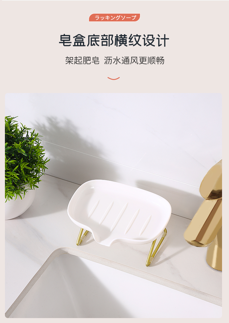 D 浴室用肥皂架 轻奢肥皂盒卫生间家用浴室壁挂免打孔香皂盒置物架子沥水神器