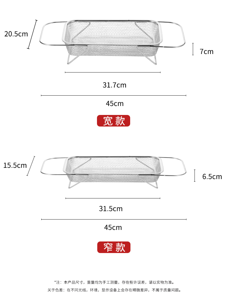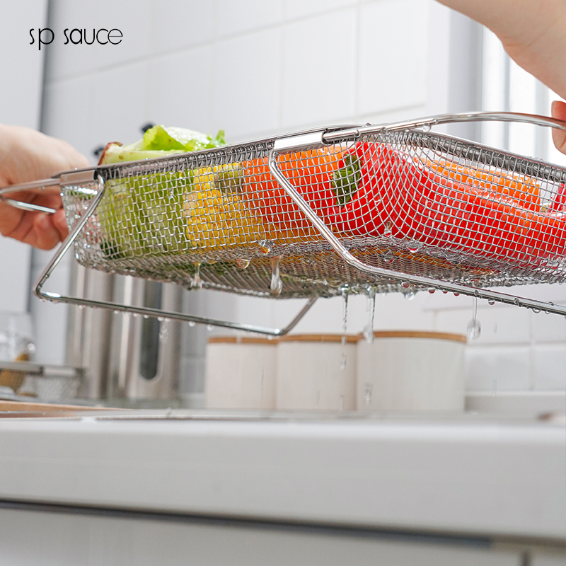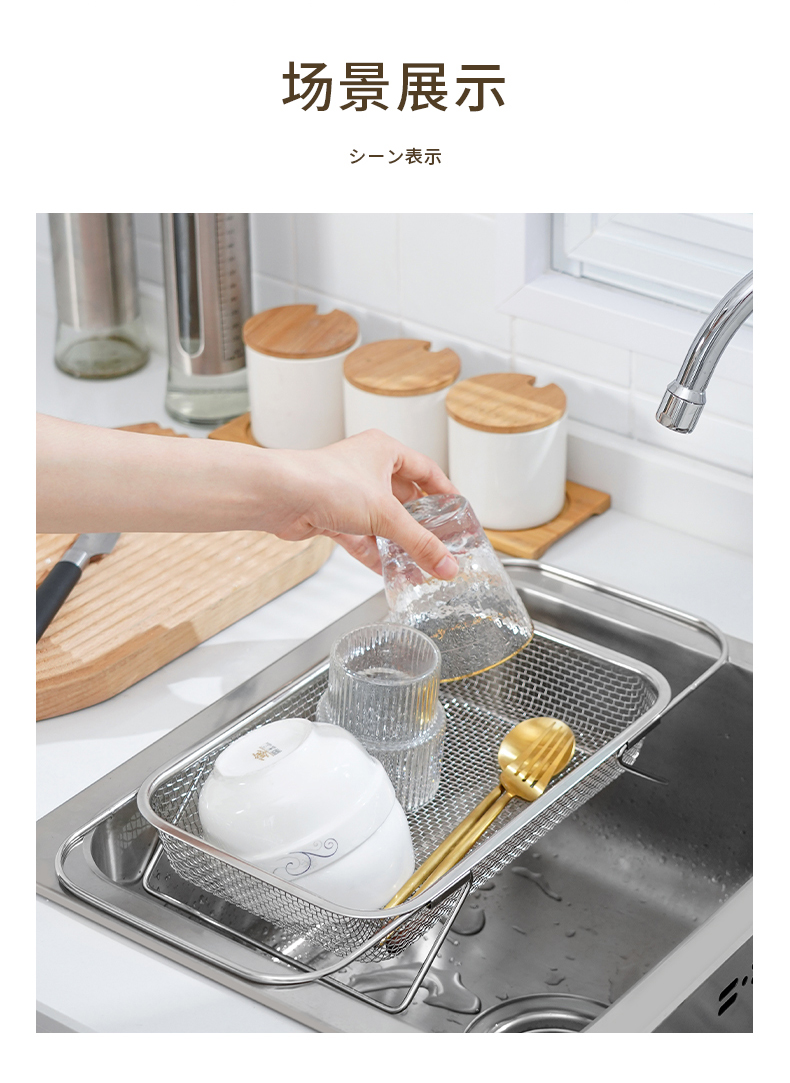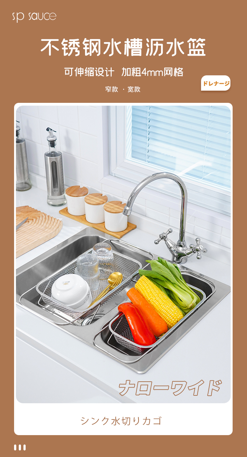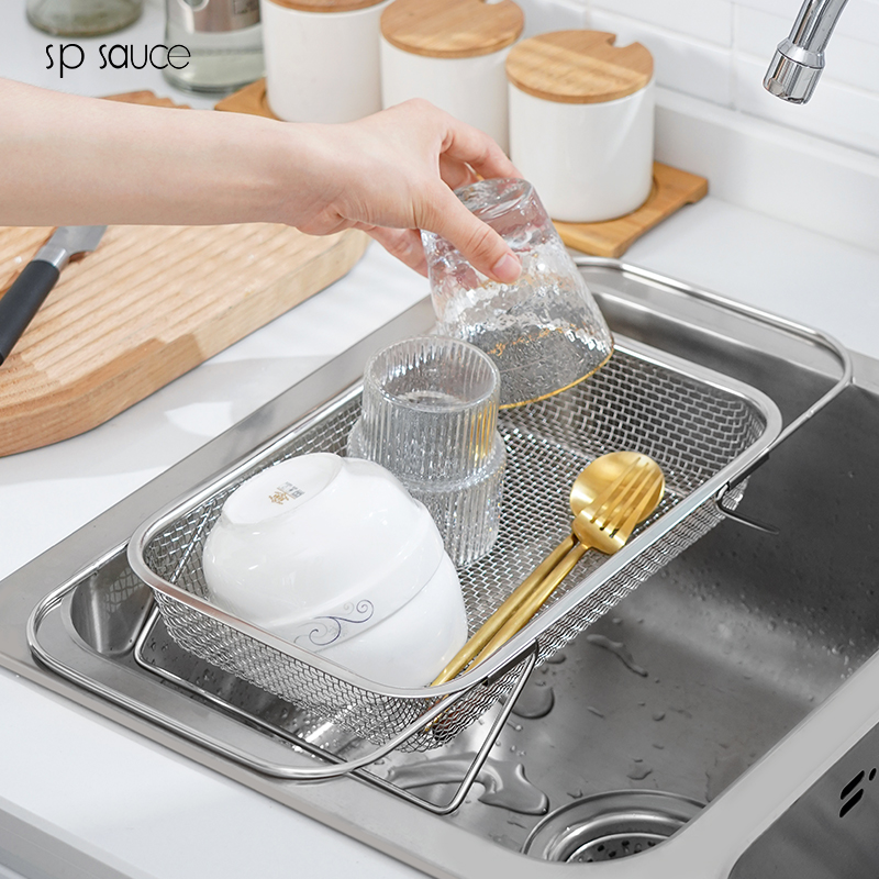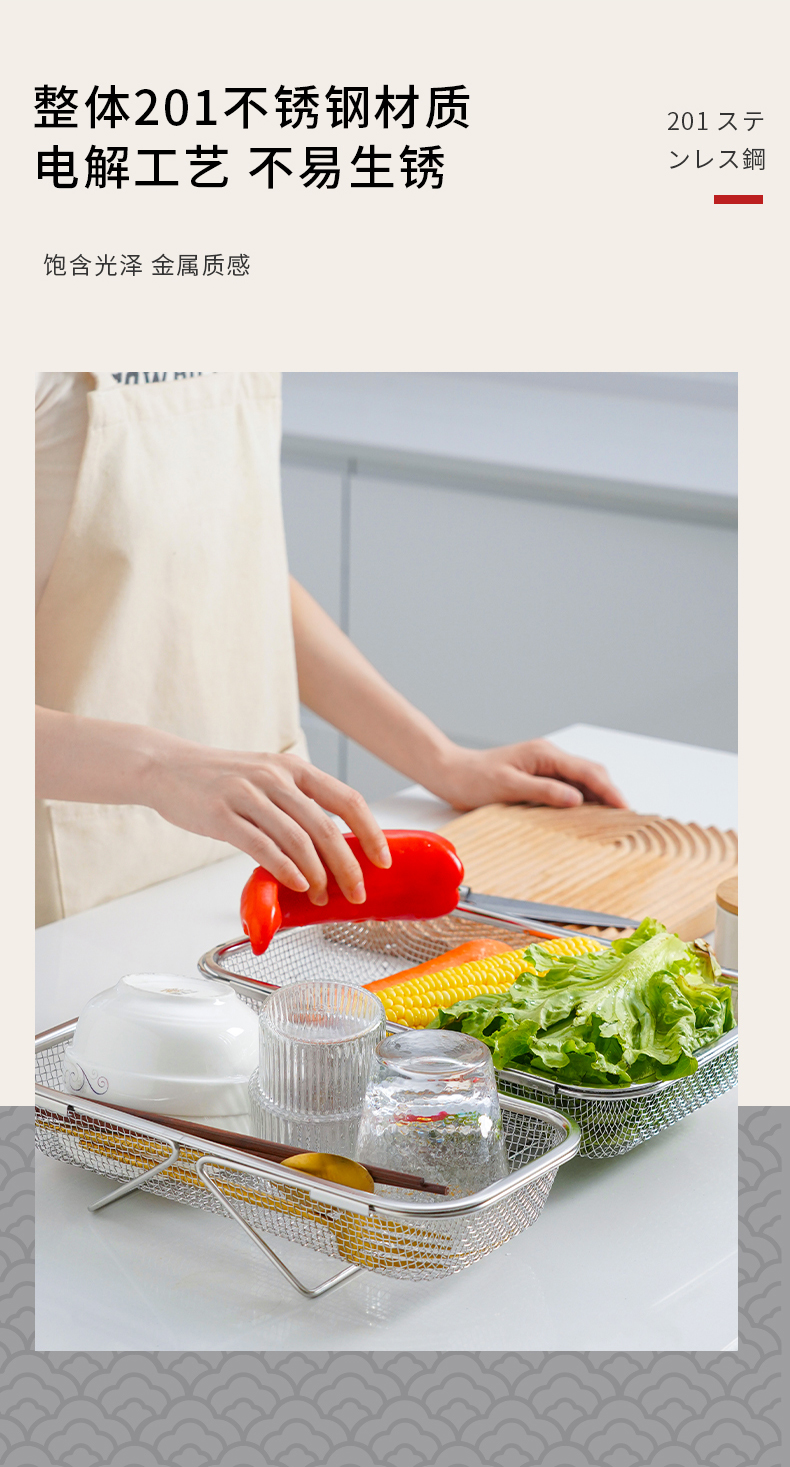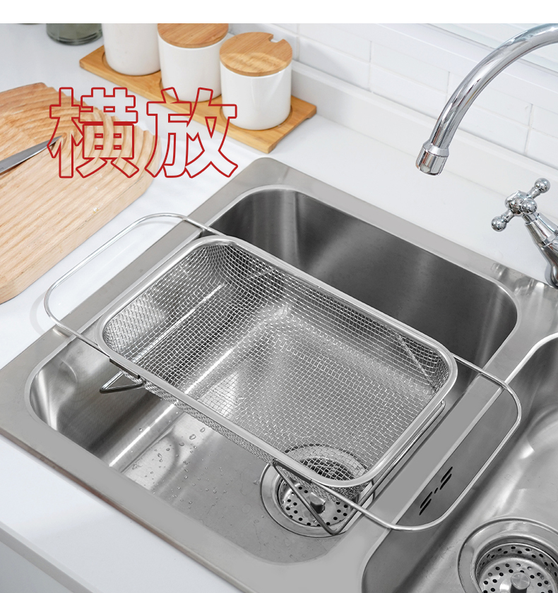 D 不锈钢水槽沥水篮(宽款) 不锈钢可伸缩厨房水槽洗菜篮沥水架蔬菜篮置物架