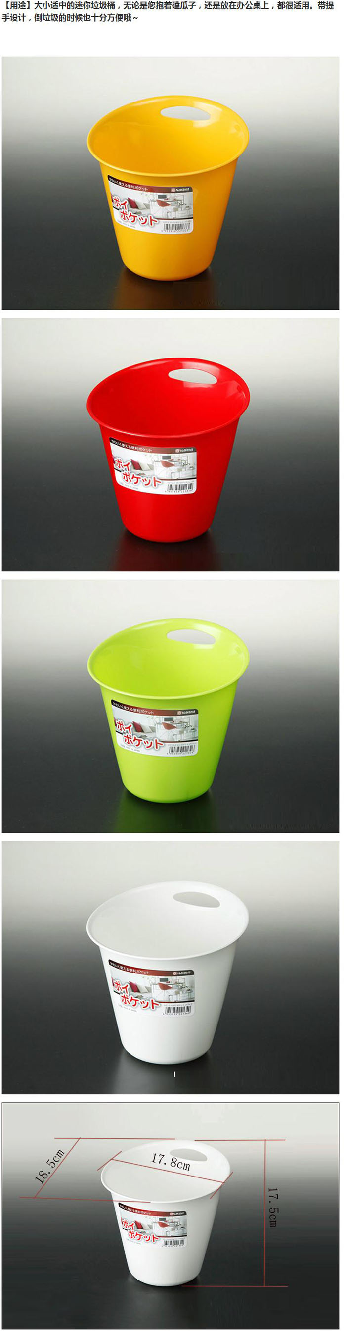 缤纷的色彩,弧状形体,可用于收纳垃圾,单耳朵可轻松提起,可收纳杂物,可当作花盆使用,也可当作花瓶,放置干花作为装饰品,甚至可以作为冰桶用来制作冰镇啤酒等,使用多样化。5L的容积满足您的需求。!