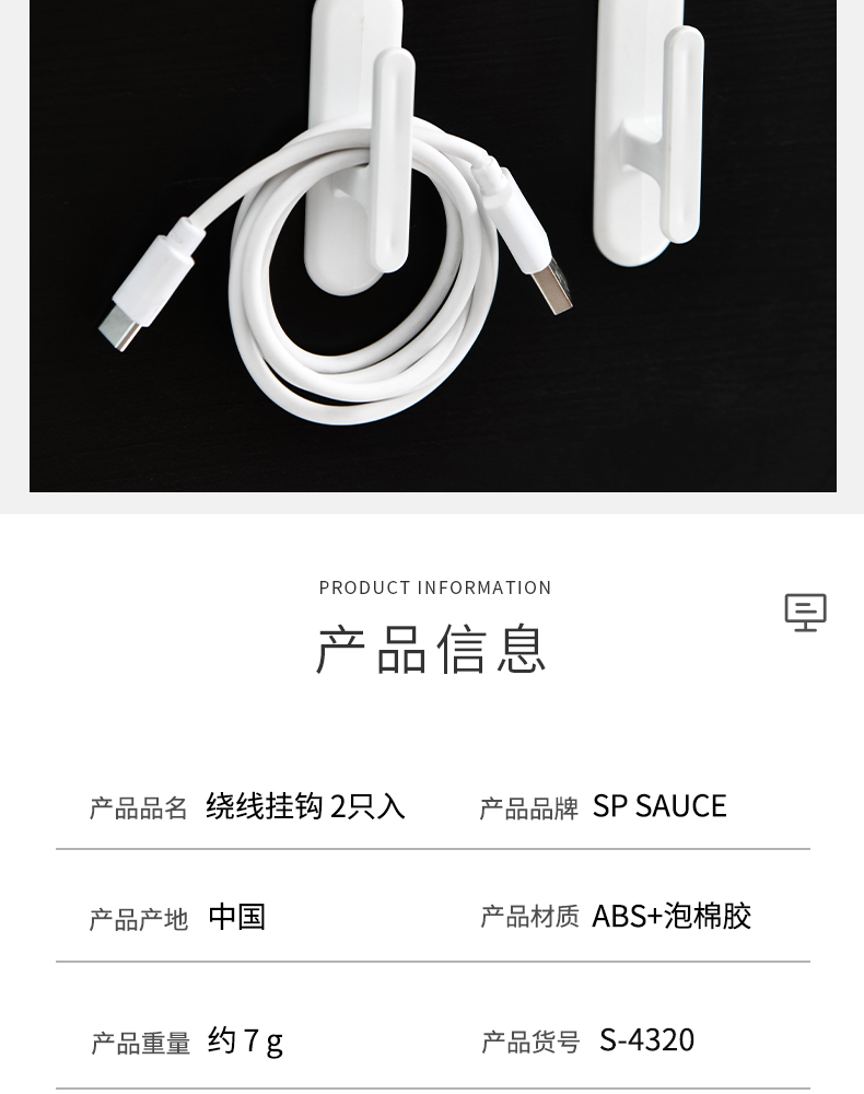 绕线挂钩 2只入 电线固定器理线器收纳集线器绕线器走线神器捆线挂钩