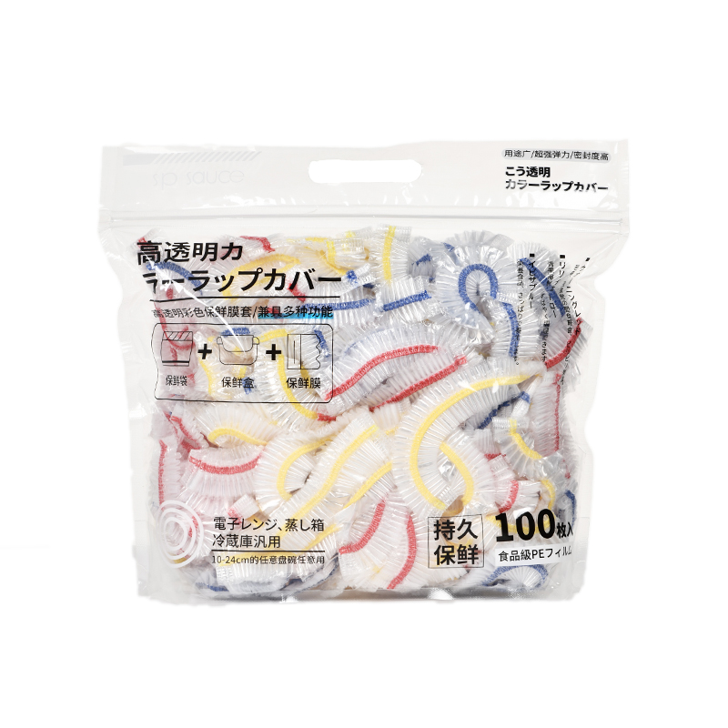 高透明彩色保鲜膜套 100支 一次性保鲜膜套罩食品级家用保鲜袋专用带松紧口pe膜套