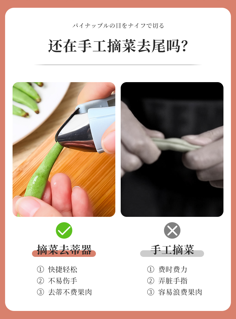 摘菜去蒂器 果蔬去蒂器菠萝取眼夹多用西红柿水果挖眼夹工具