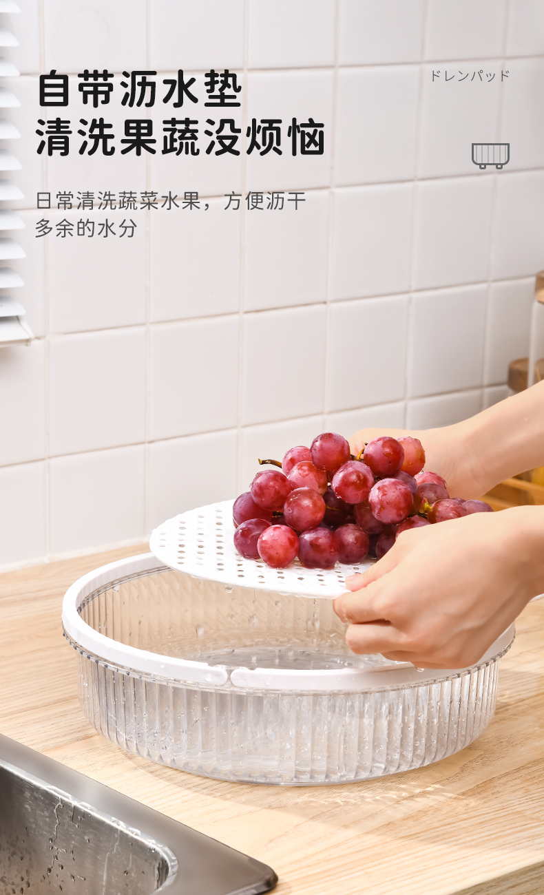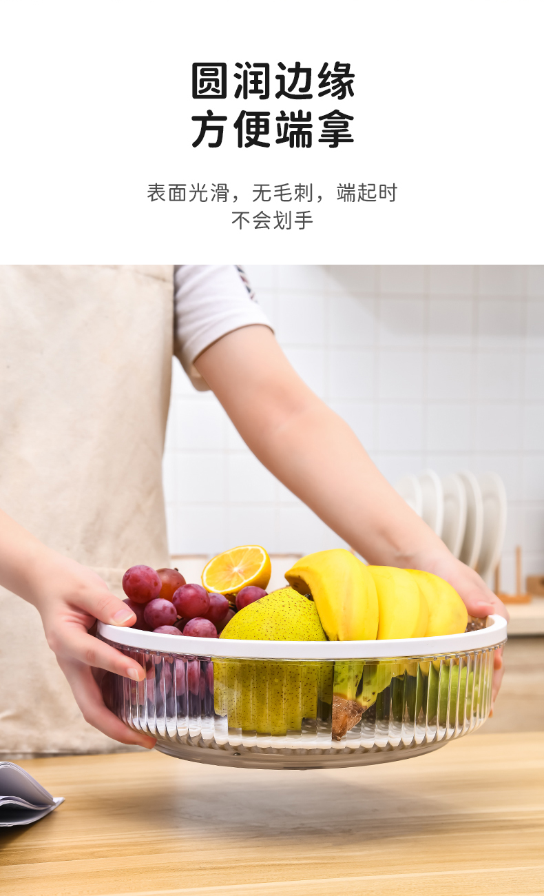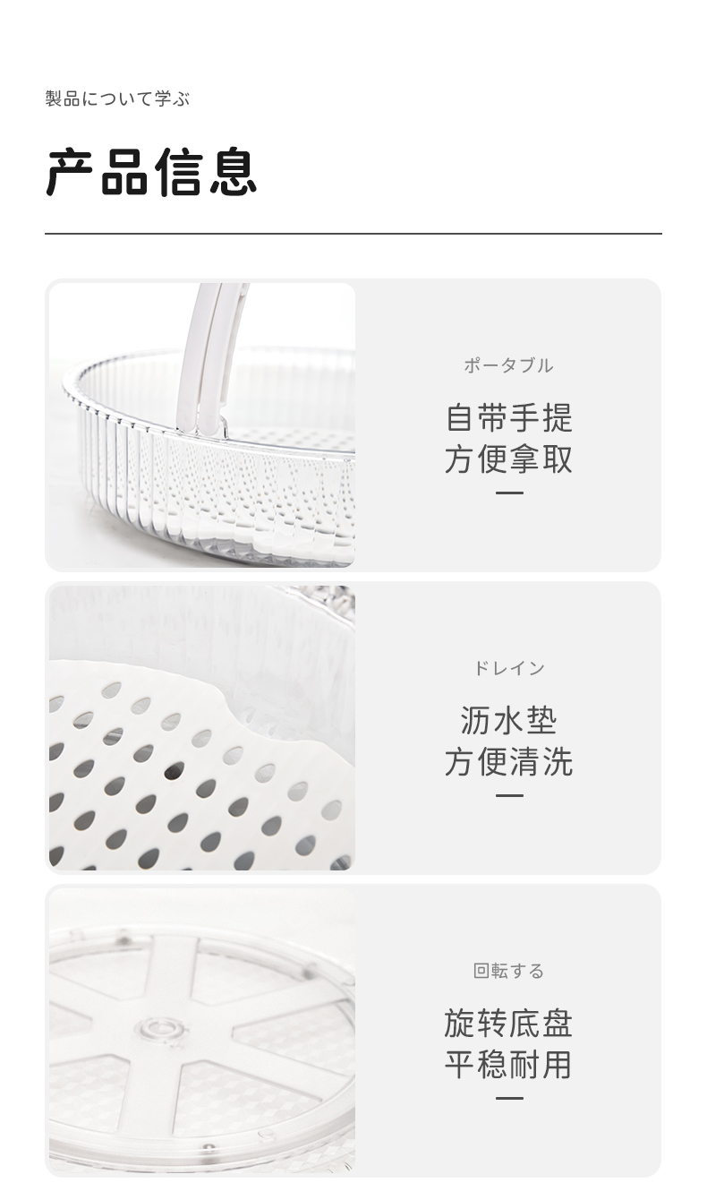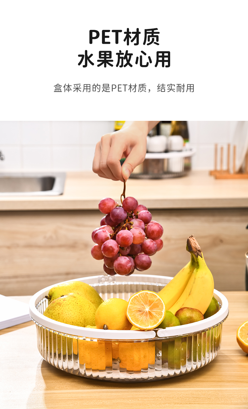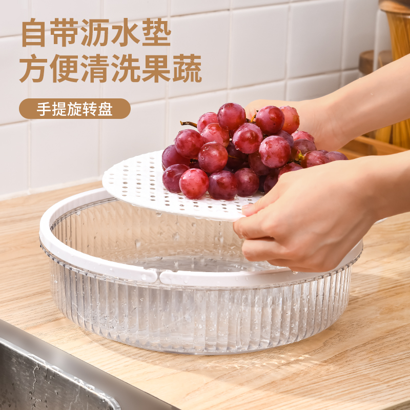 D手提旋转盘(带沥水板) 旋转调料架置物架厨房调味品调味料瓶收纳盘带沥水板水果盘带手提