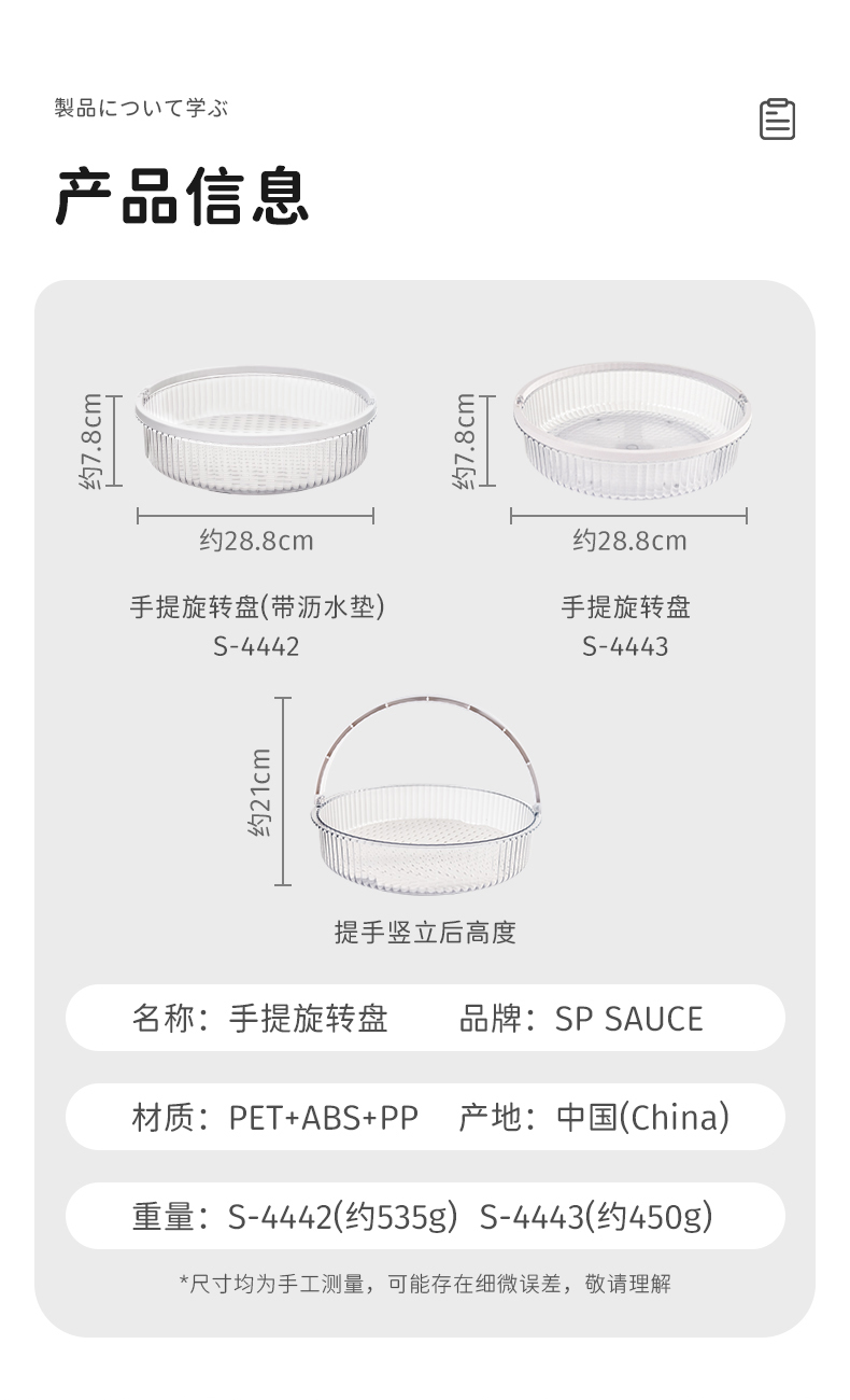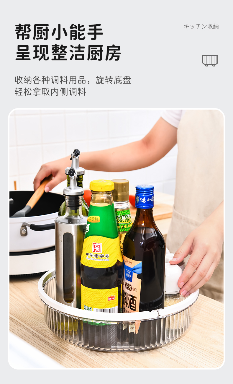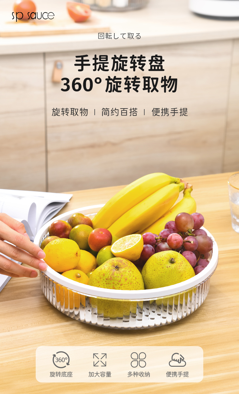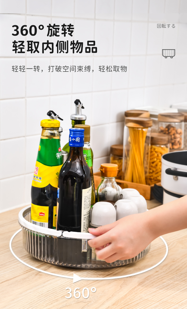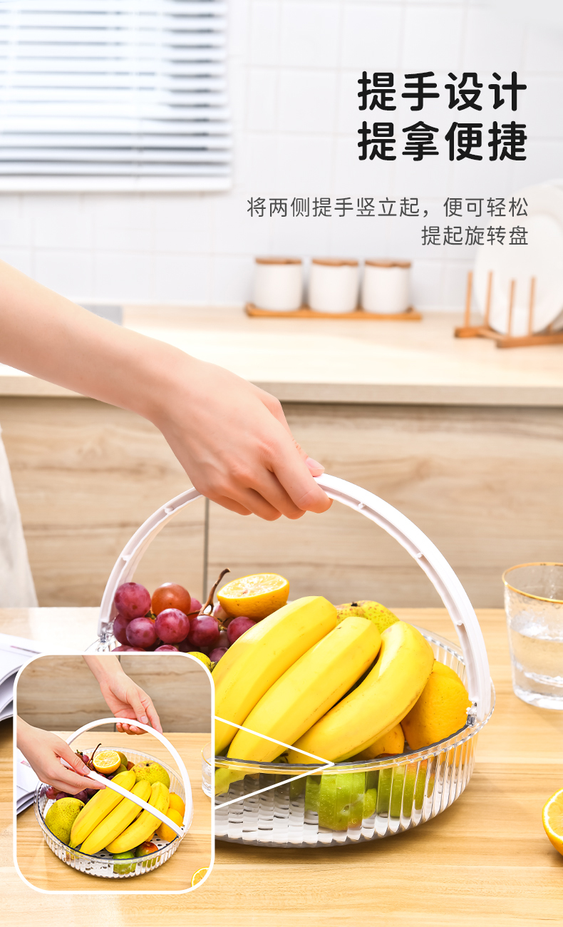 手提旋转盘 无沥水板 旋转调料架置物架化妆品收纳盘带手提