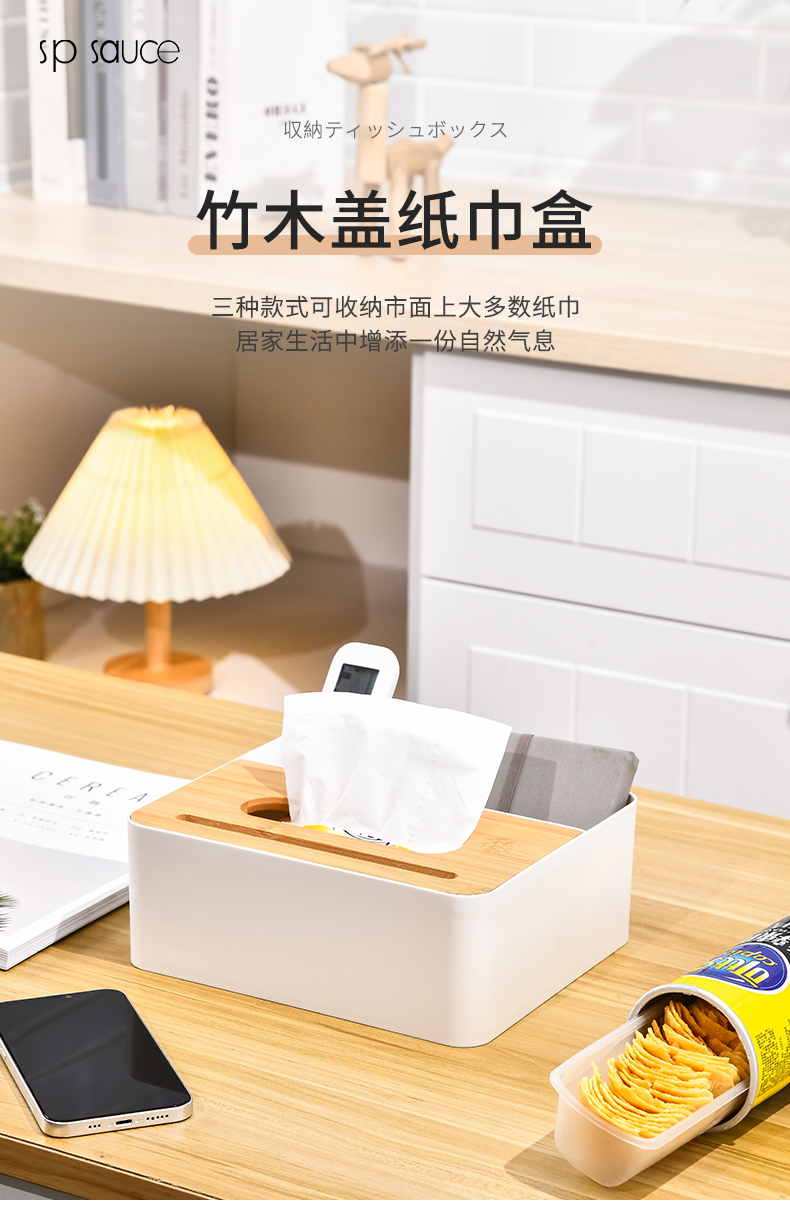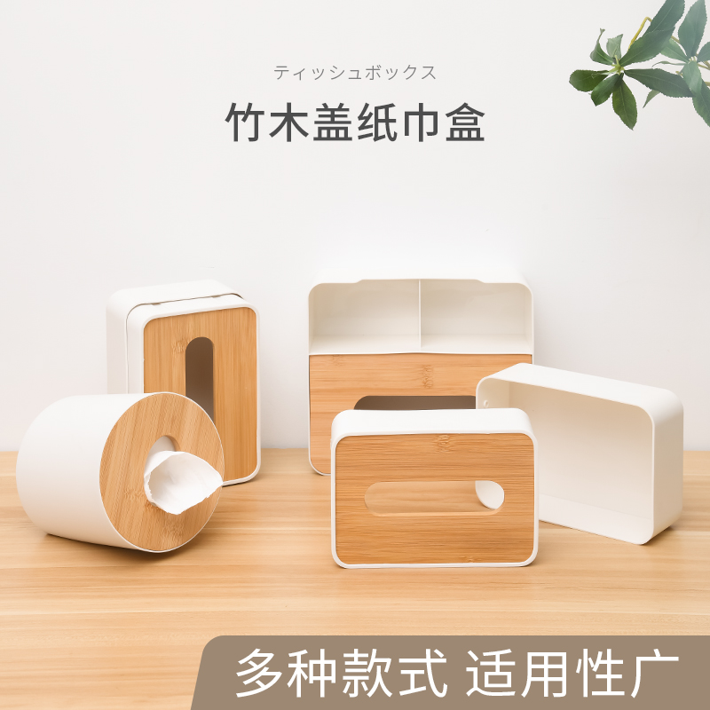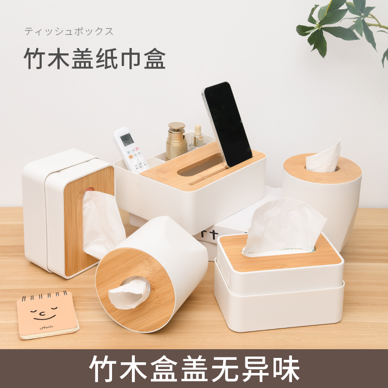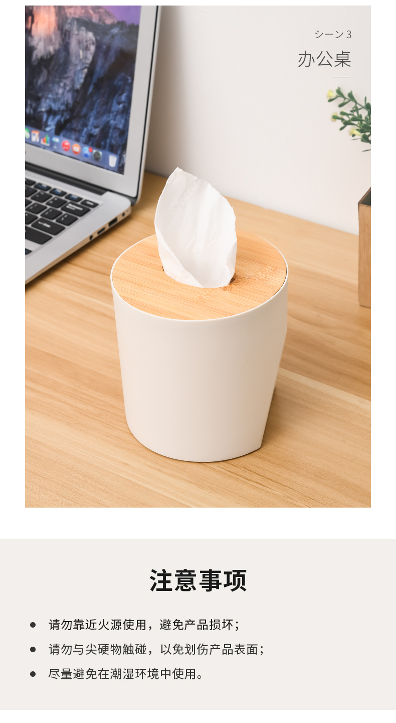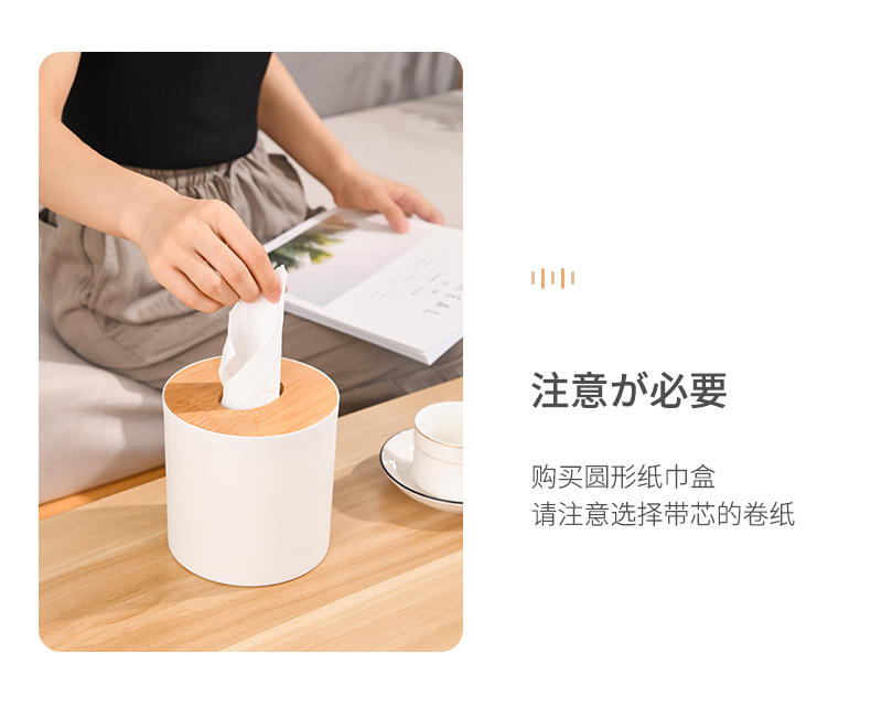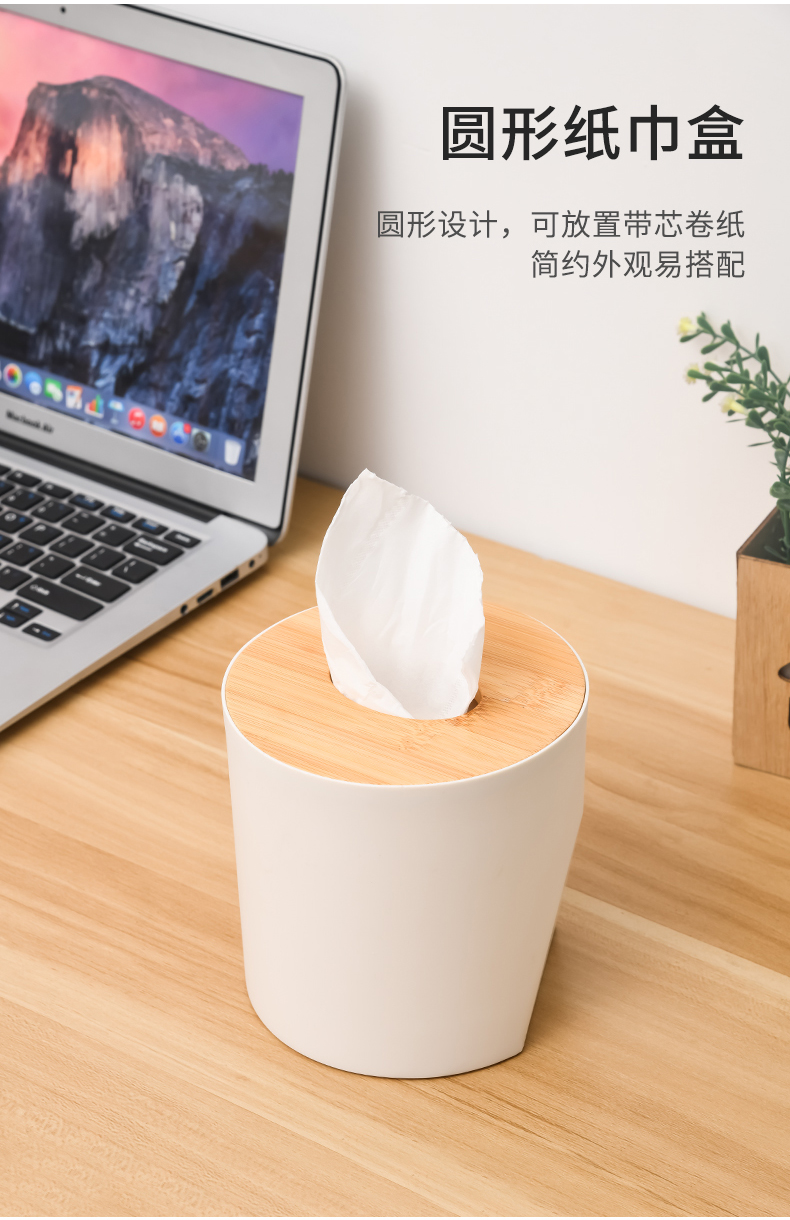 D 圆形纸巾盒(竹木盖) 客厅茶几竹木盖圆桶纸巾盒餐桌办公室桌面抽纸盒子