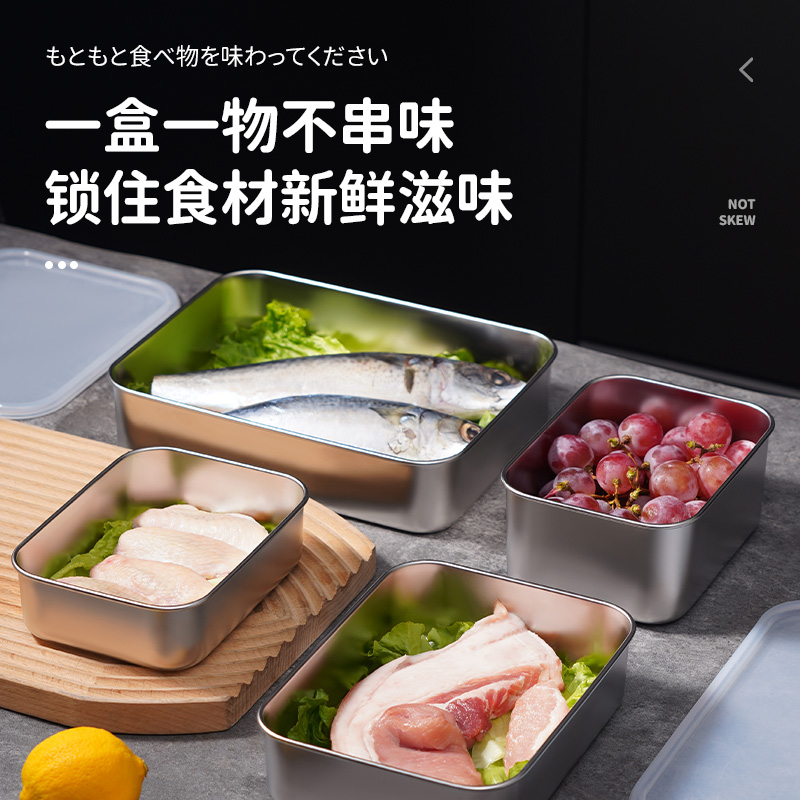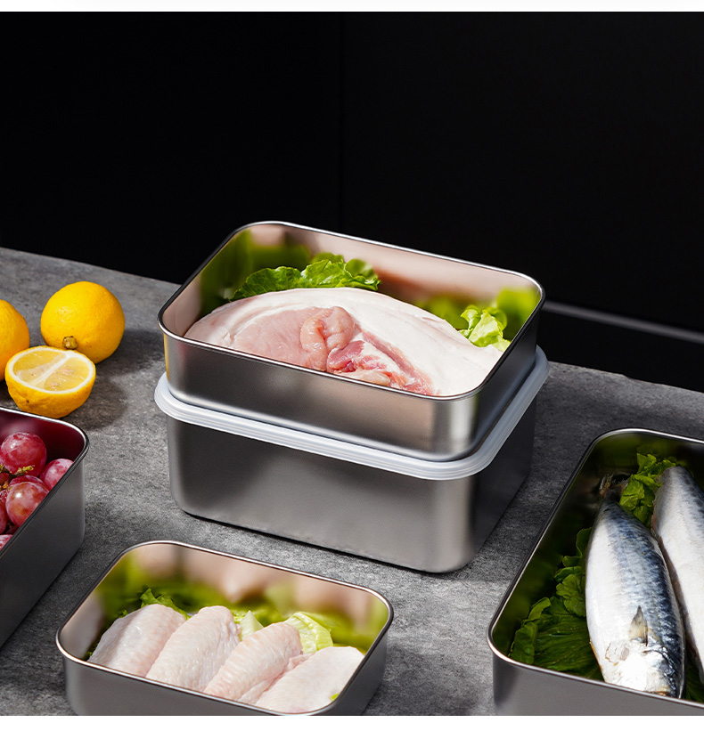 304不锈钢保鲜盒(浅型S) 304不锈钢保鲜盒冰箱收纳盒鱼肉冰冻盒大容量保鲜盒速冻保鲜盒冰冻保存盒,解冻冷冻盒