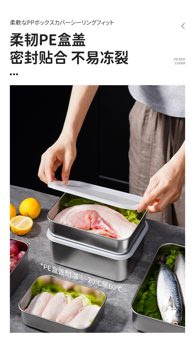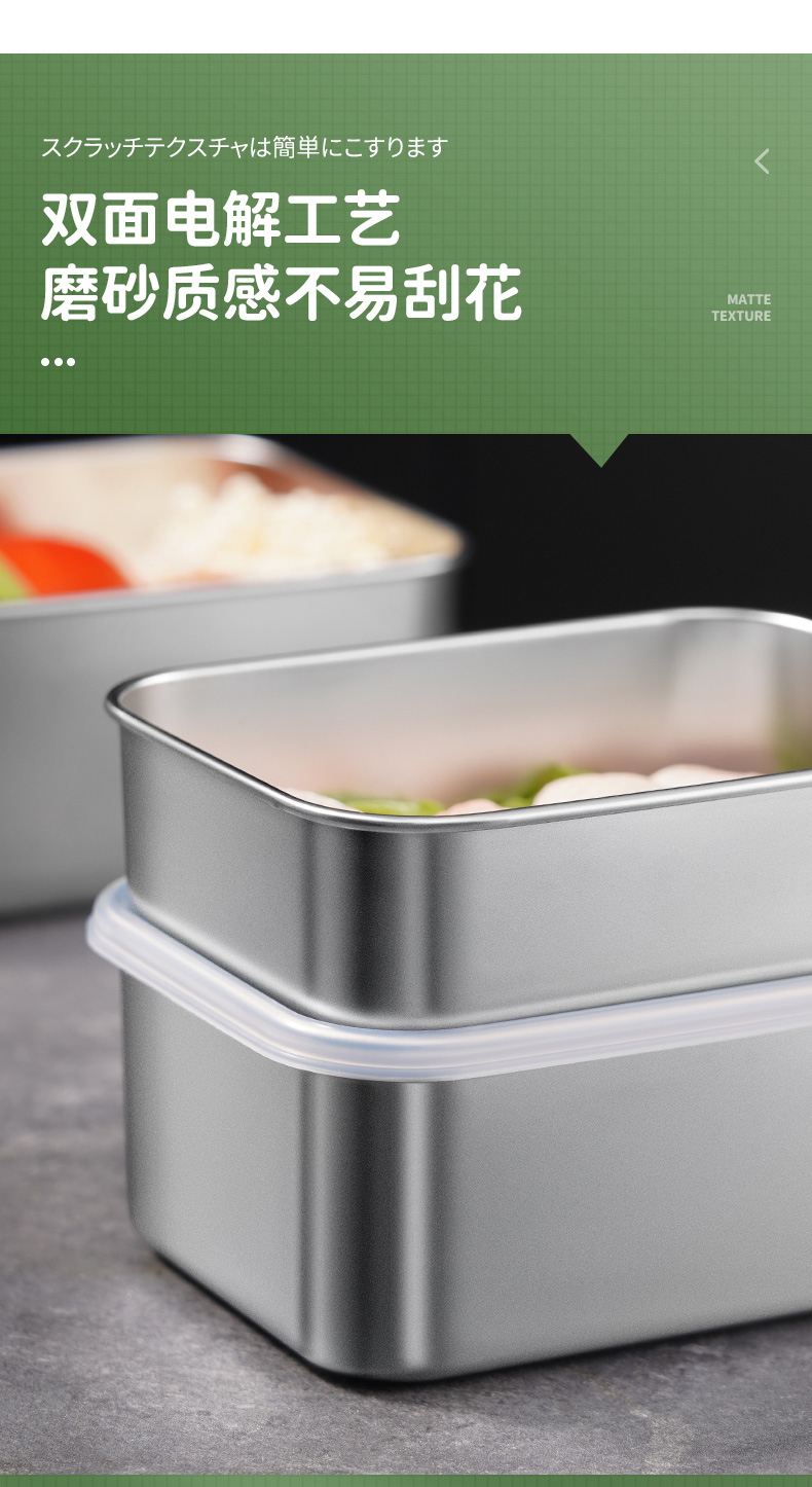 304不锈钢保鲜盒(浅型M) 304不锈钢保鲜盒冰箱收纳盒鱼肉冰冻盒大容量保鲜盒速冻保鲜盒冰冻保存盒,解冻冷冻盒