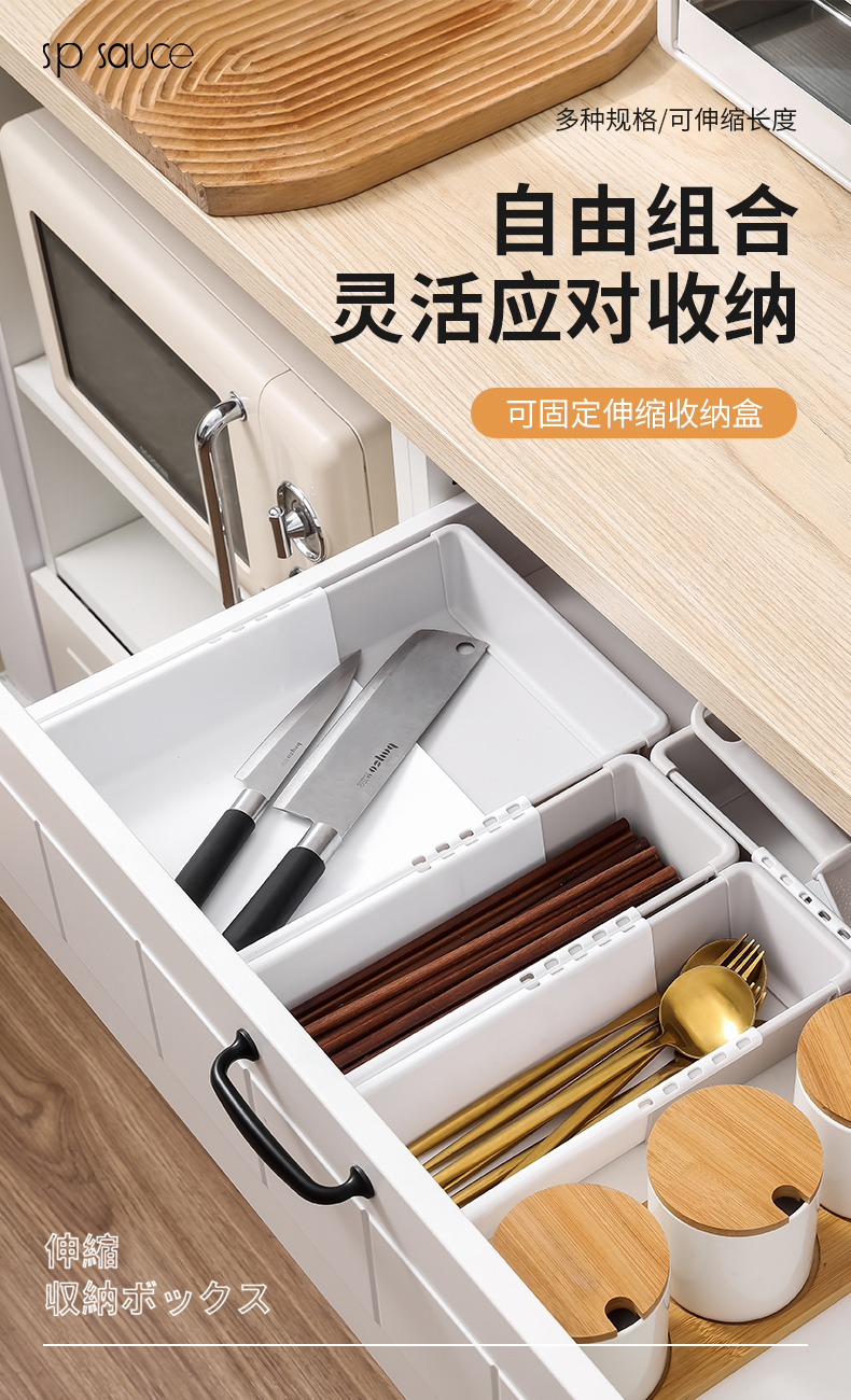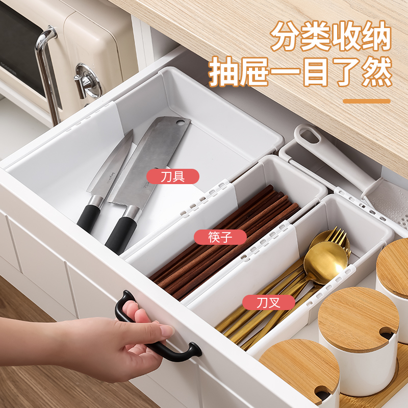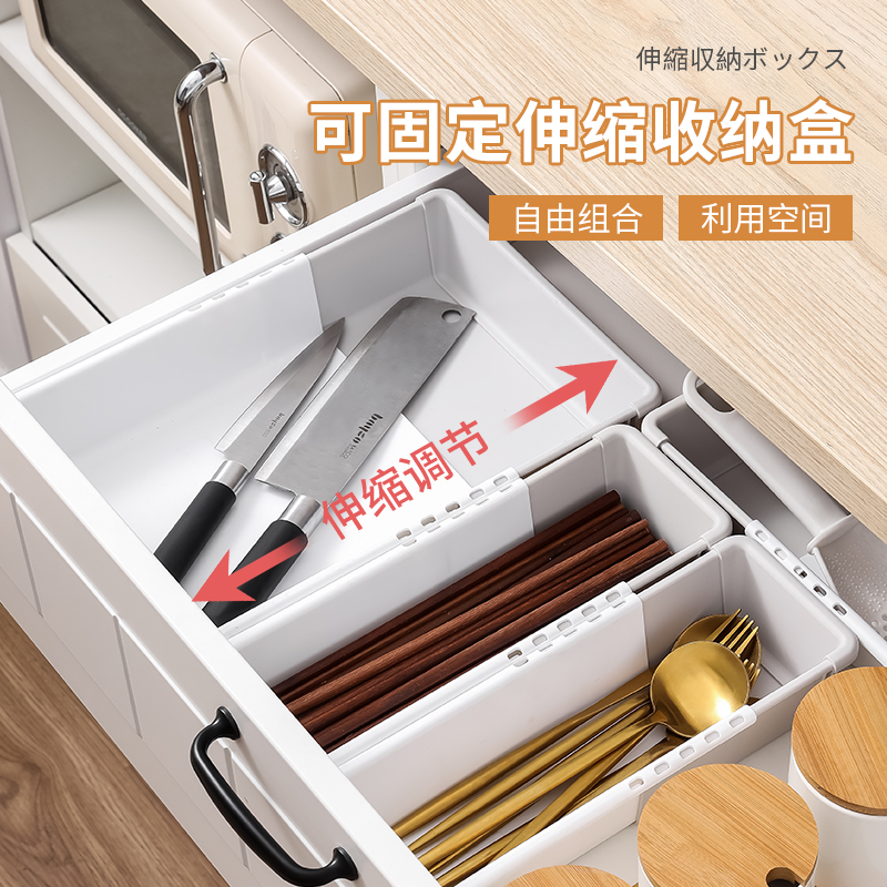 可固定伸缩收纳盒中号 抽屉整理盒抽屉收纳盒抽屉分类整理盒分类收纳盒
