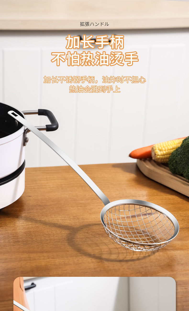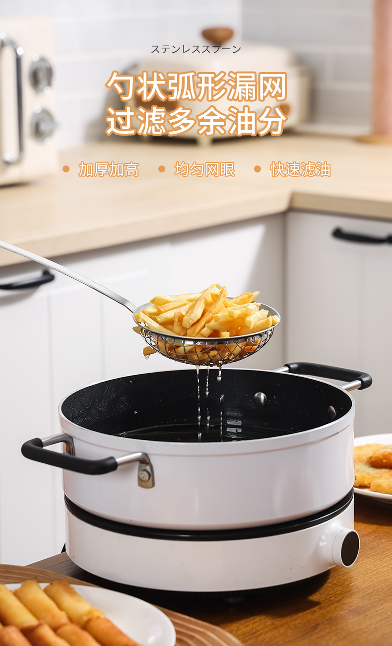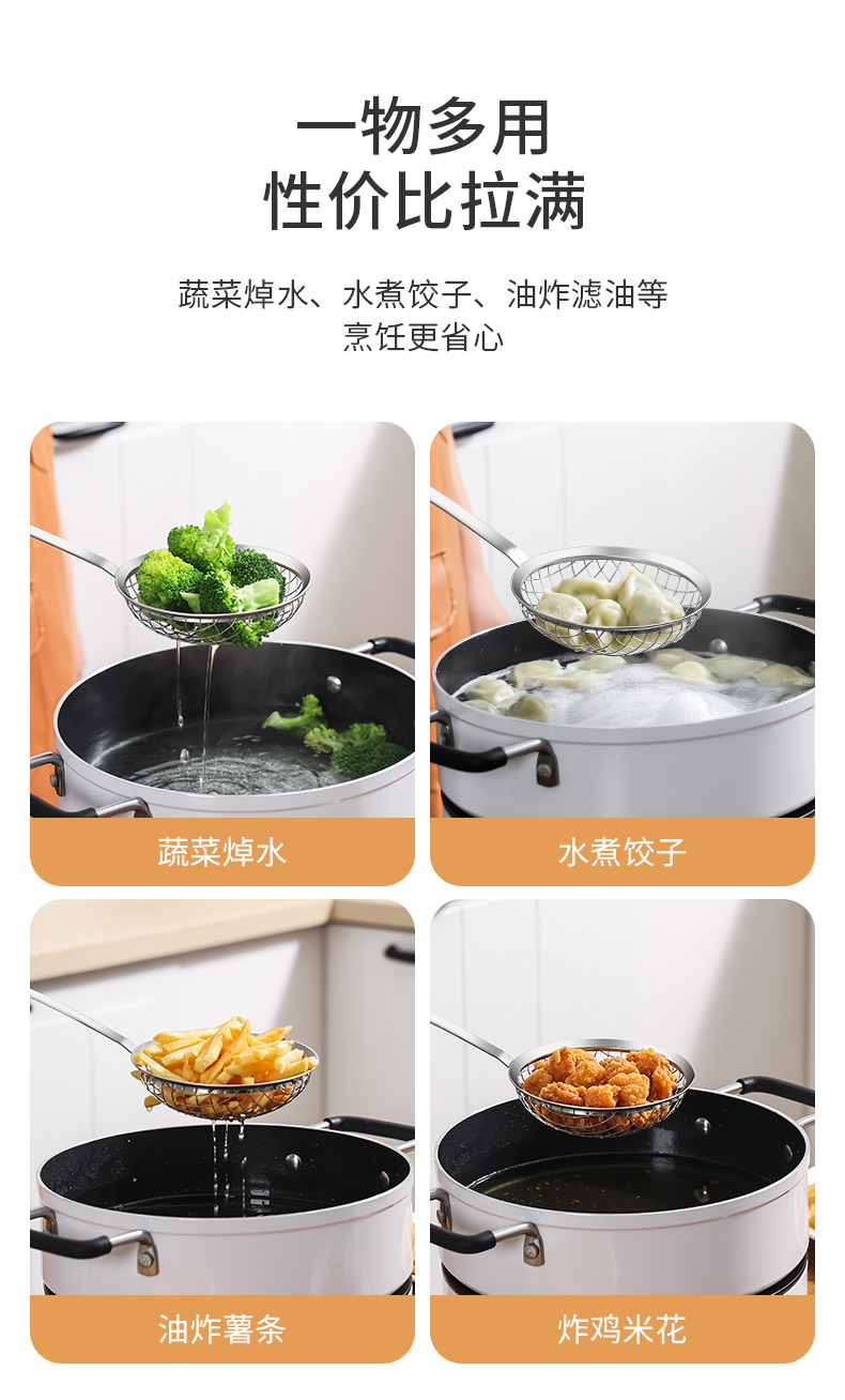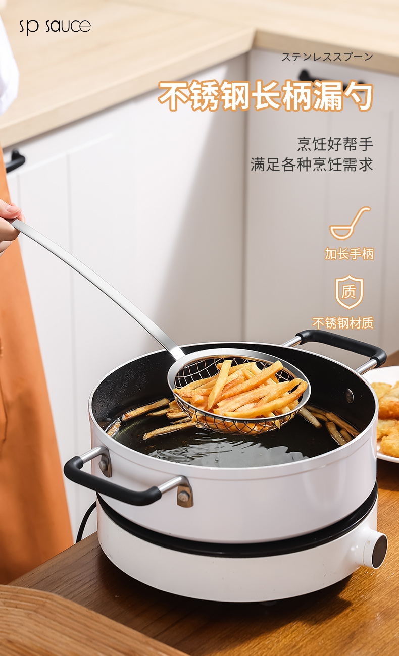 D 不锈钢长柄漏勺 不锈钢漏勺家用厨房油炸捞面焯菜捞勺