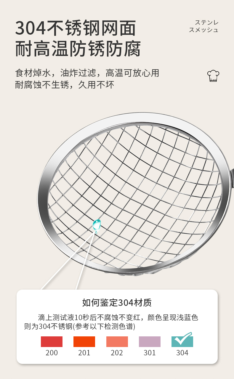 产品材质304不锈钢(滤网)+201不锈钢