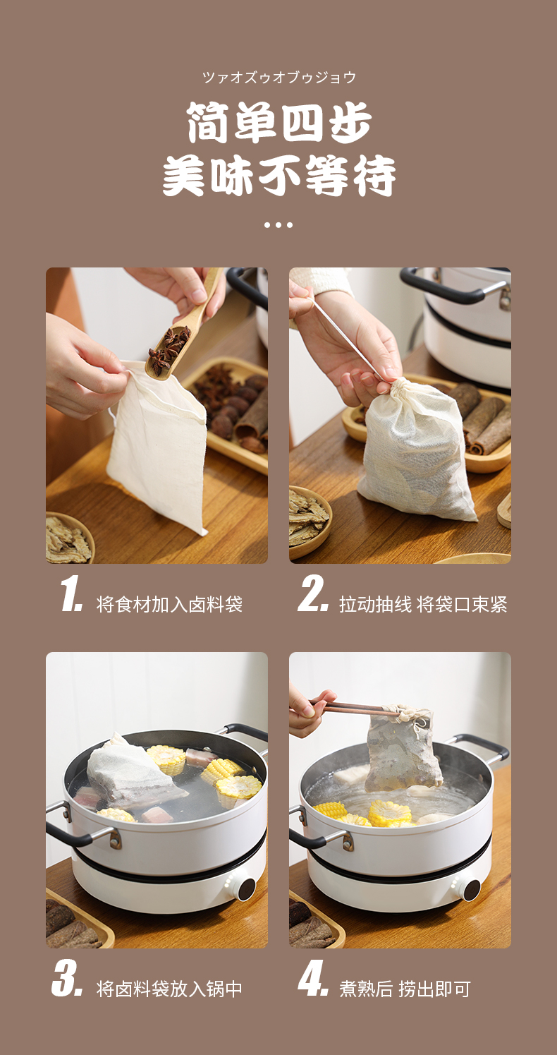 D 纯棉卤料袋10枚入(8*10) 纯棉卤料袋天然棉布卤料袋炖肉袋煲汤袋熬中药布袋厨房多用途布袋佐料收纳袋