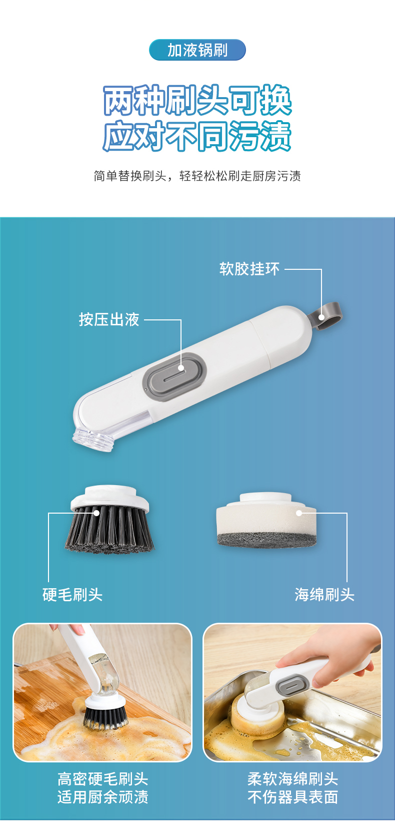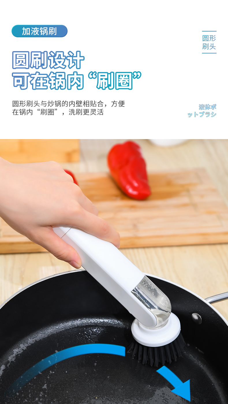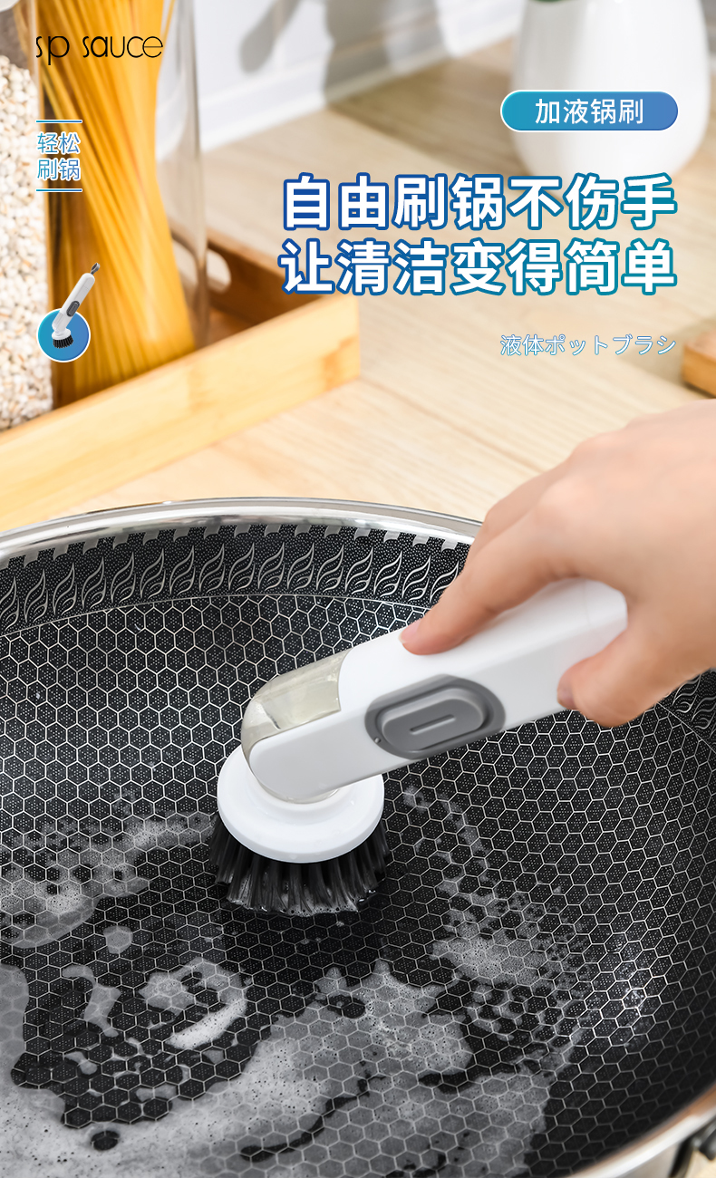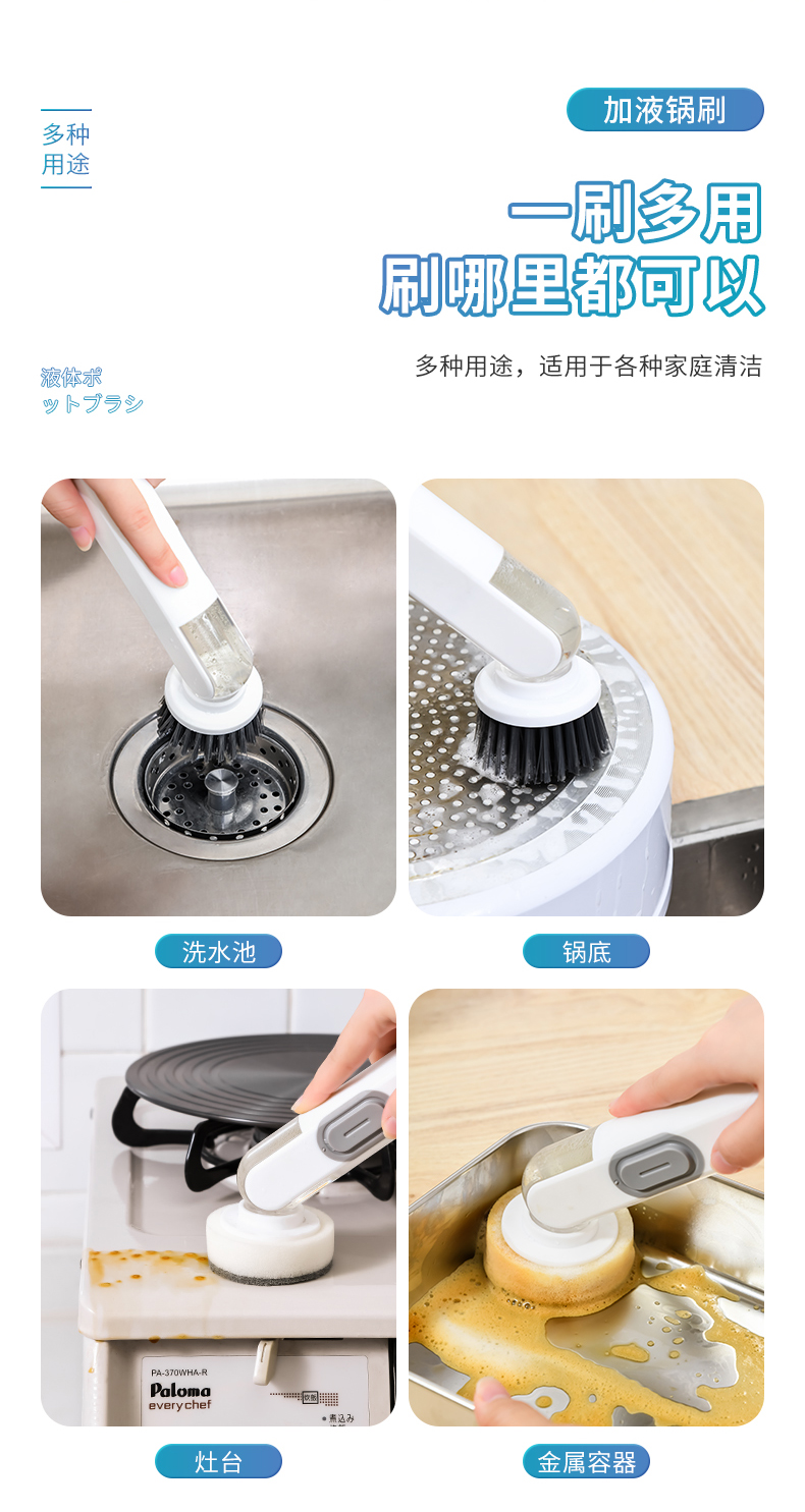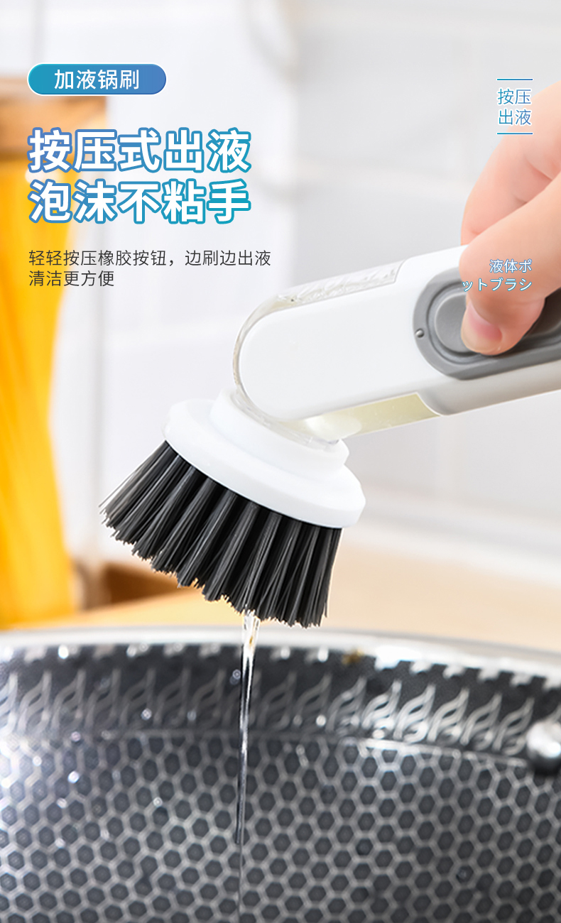 D 加液锅刷 自动出液锅刷多用途清洁刷自动出液刷子按压出液刷刷锅神器洗碗刷子
