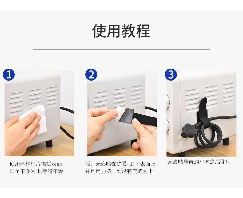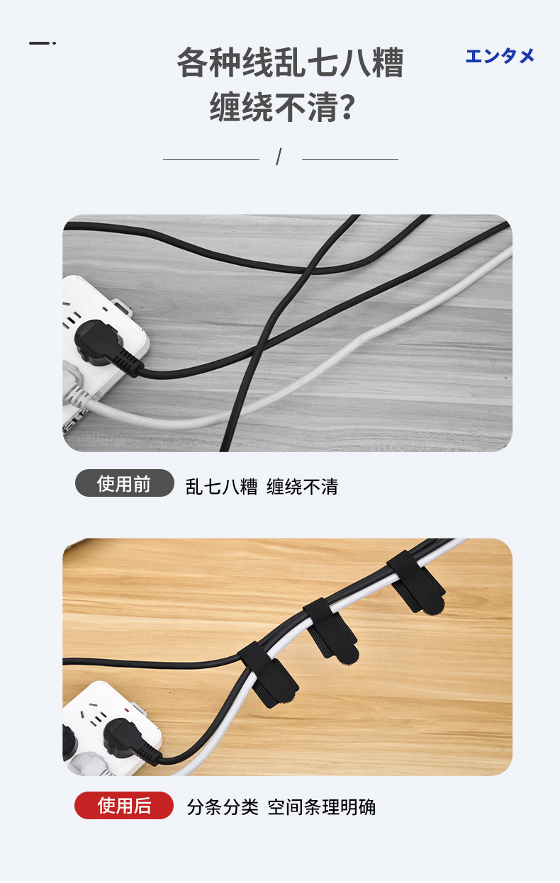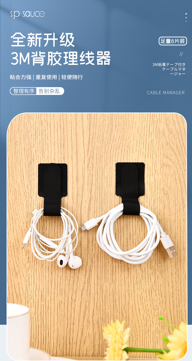 D 3M背胶理线器(8片装) 背胶理线器数据线收纳神器魔术贴扎带自粘电线固定器