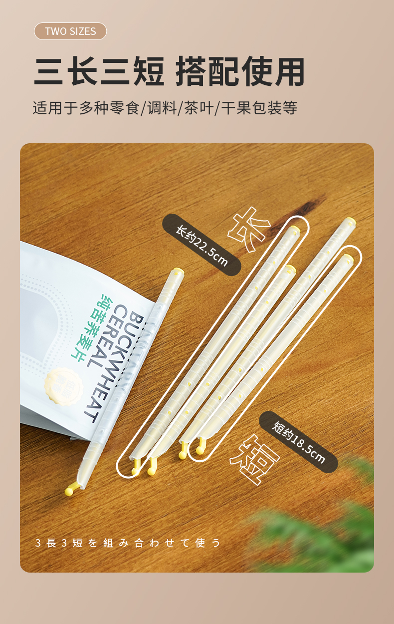 D 食品密封棒(3长+3短) 密封棒强力保鲜封口棒塑料袋零食茶叶封口夹子防潮密封夹